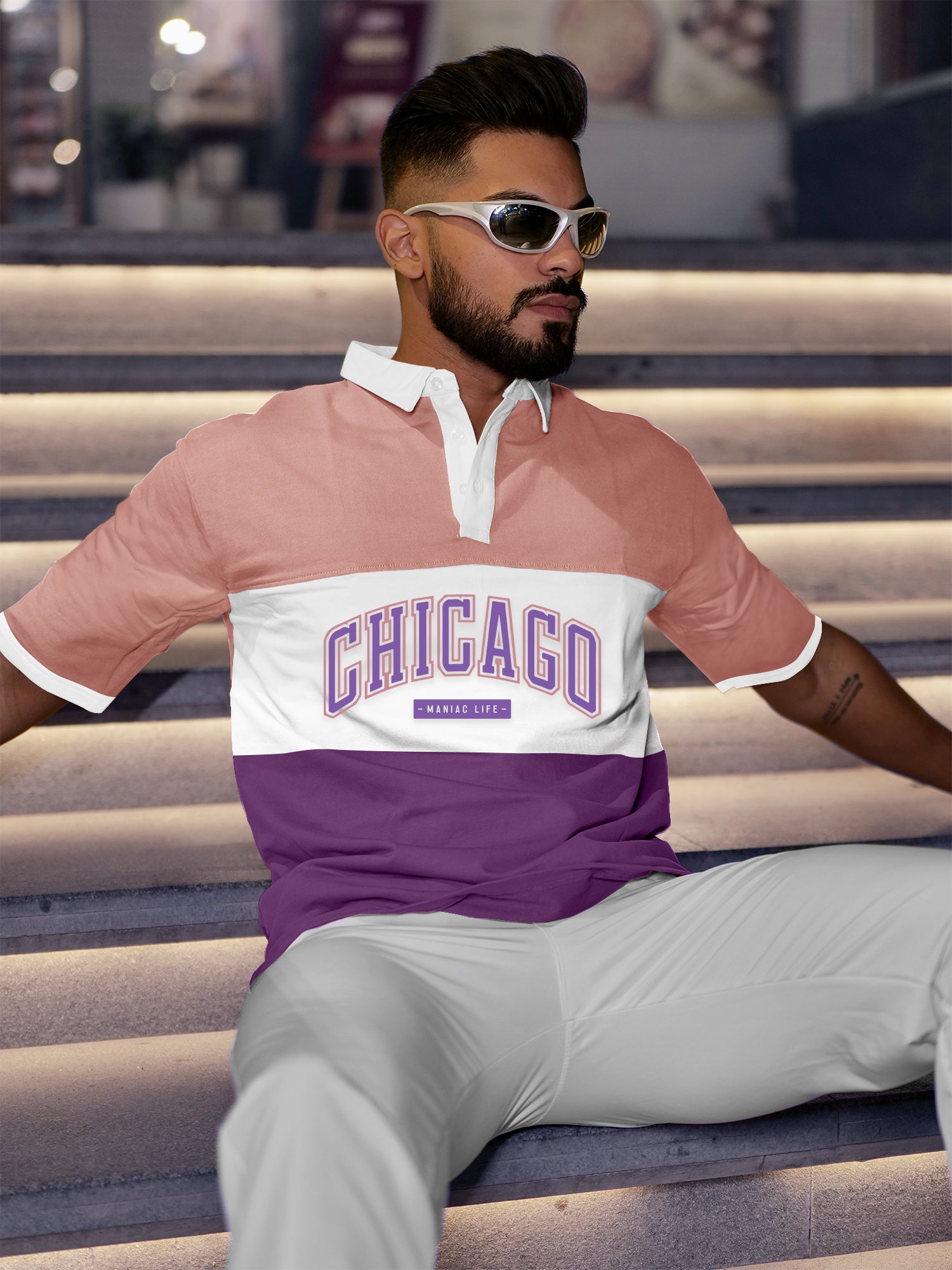Chicago Pink & White Oversized Half Sleeve Polo T-Shirt