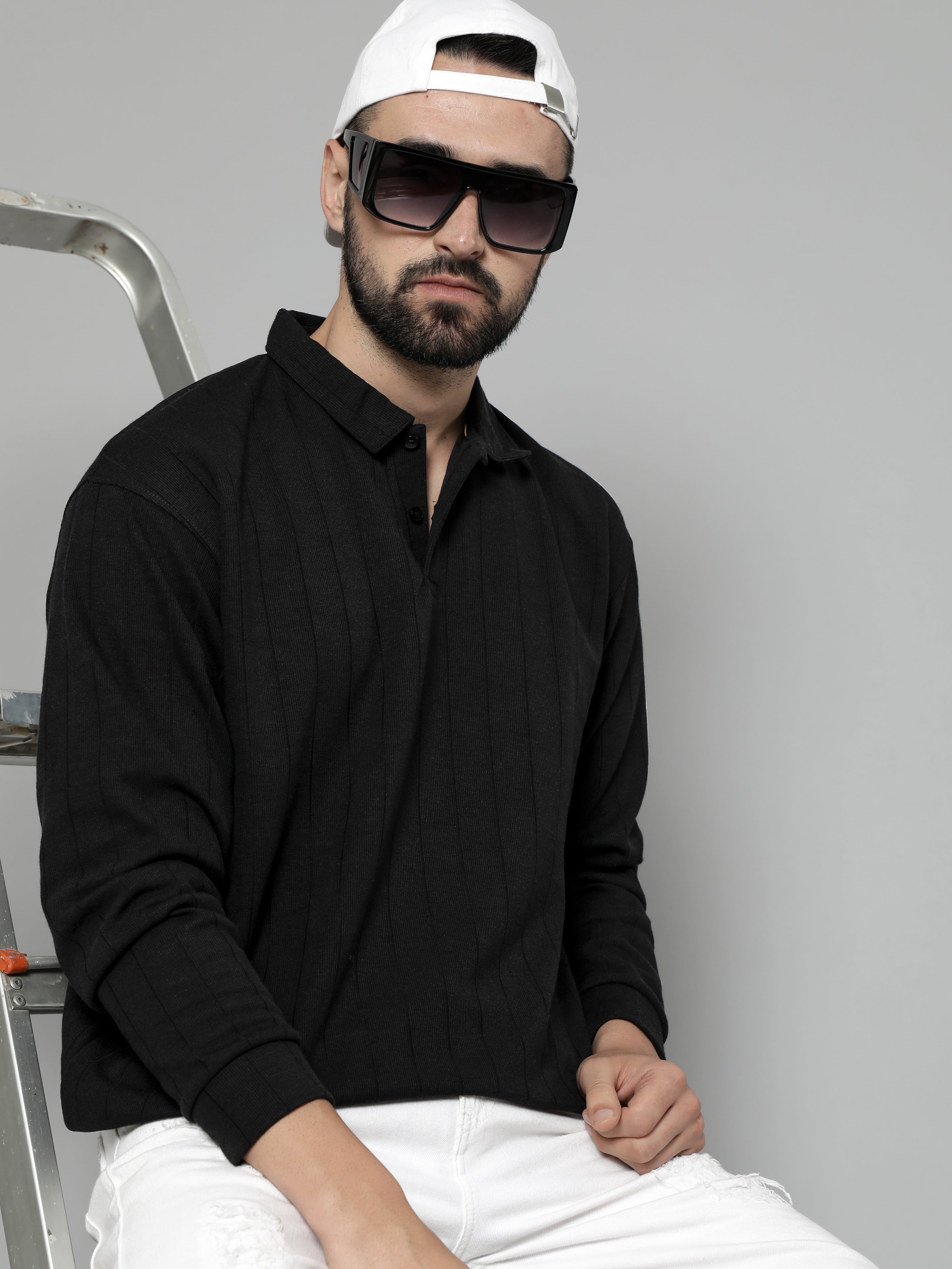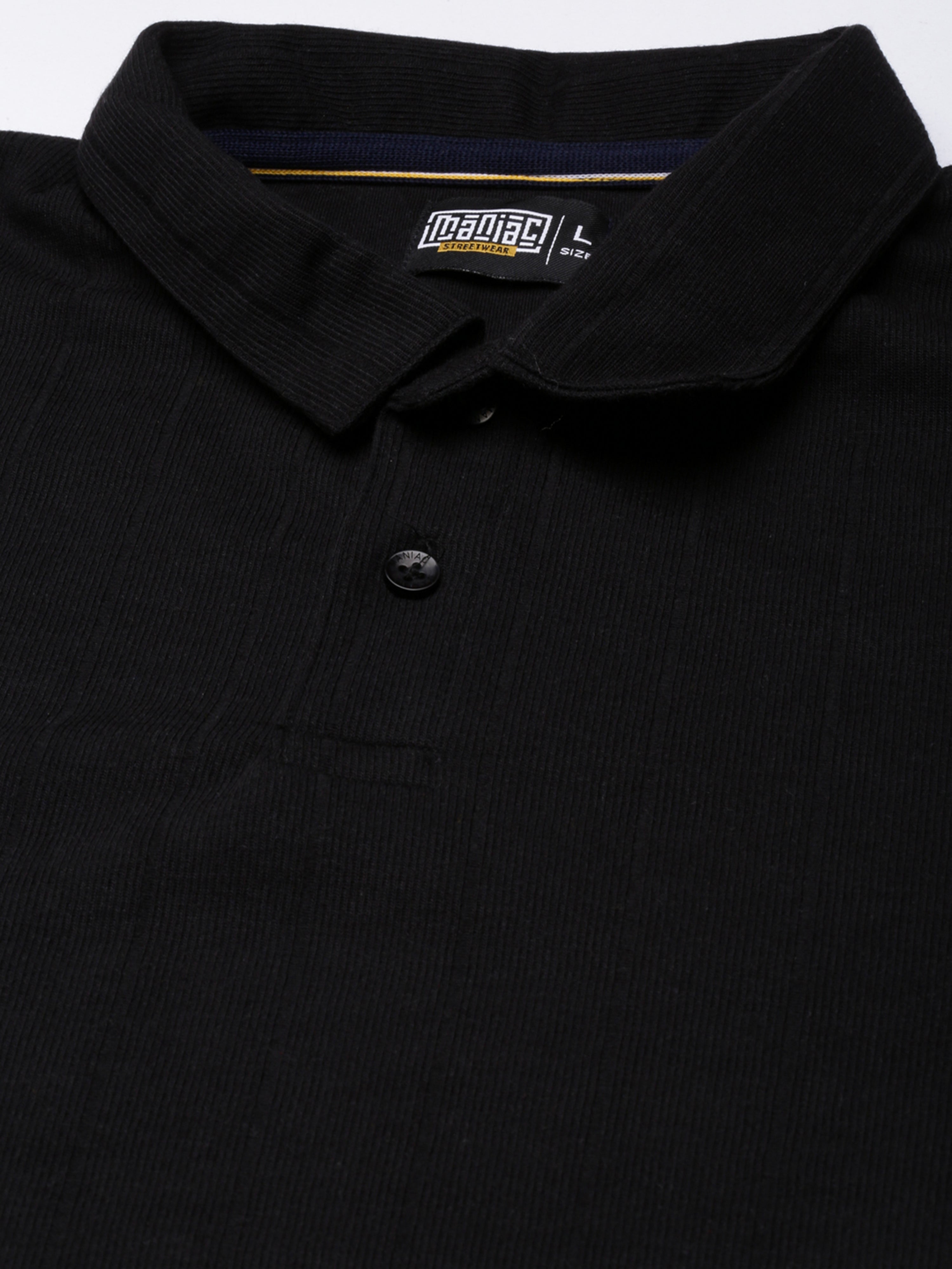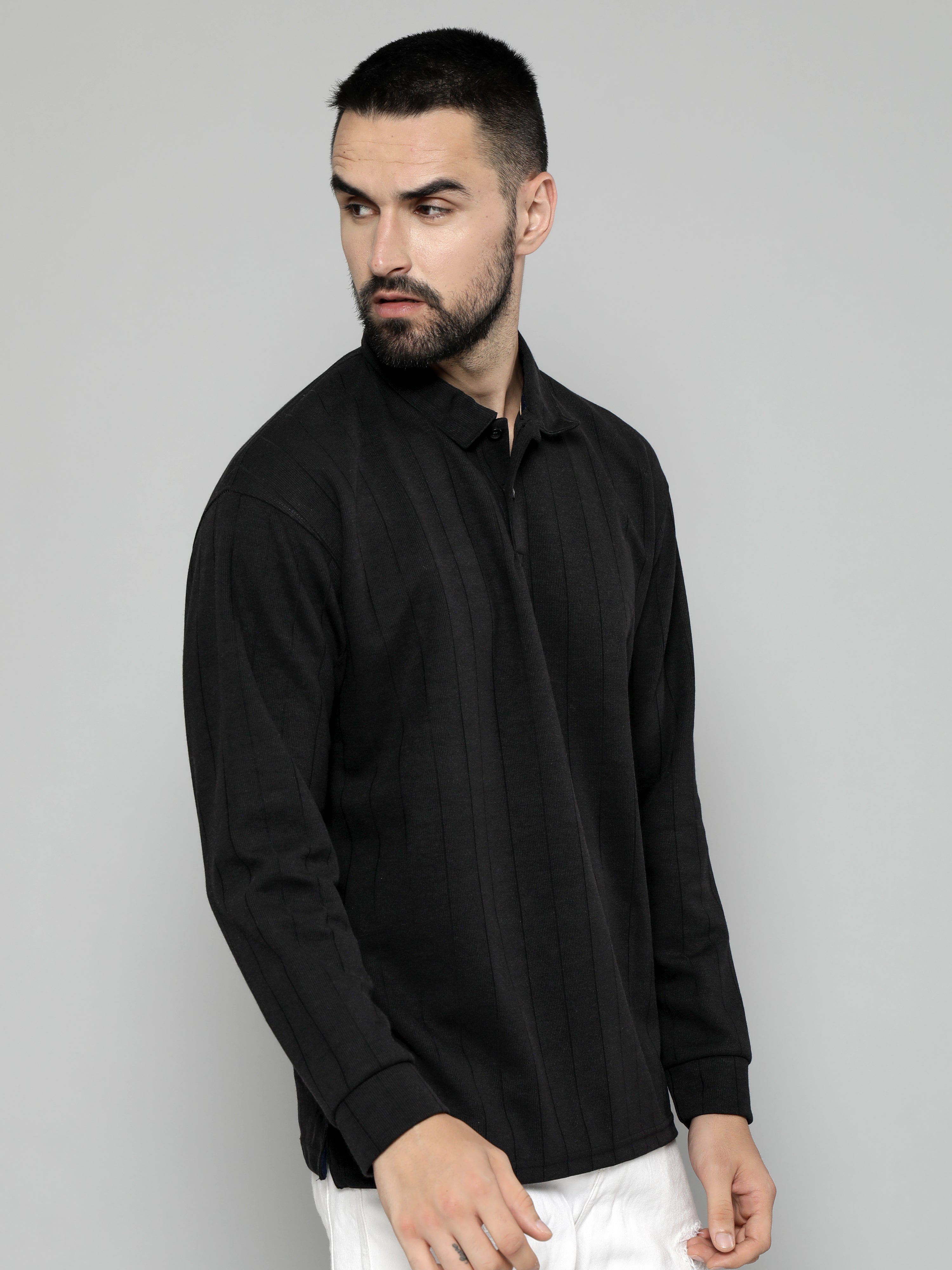 Brooklyn Black Solid Full Sleeve Polo T-Shirt