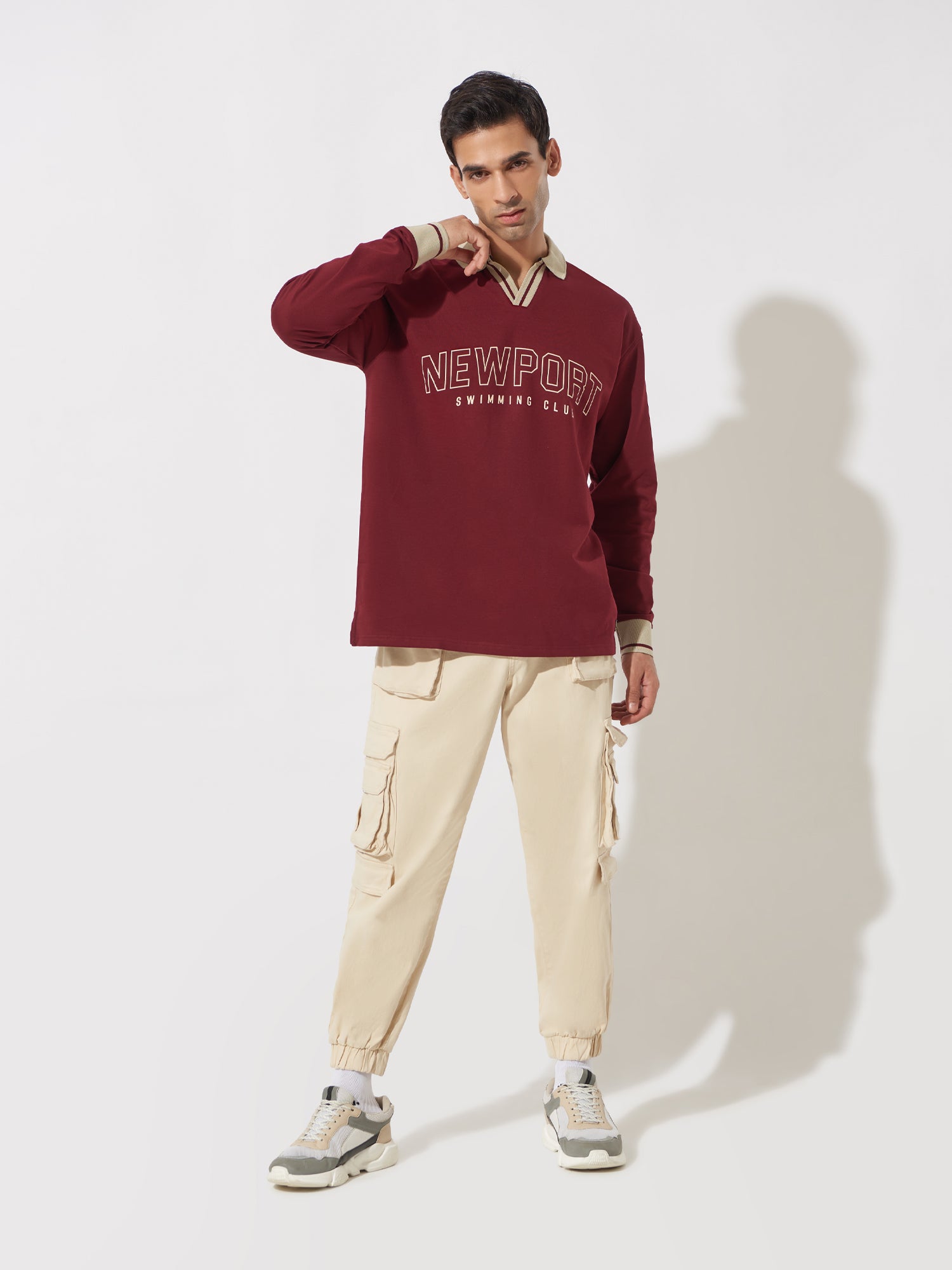 Newport Burgundy Oversized Full Sleeve Polo T-Shirt