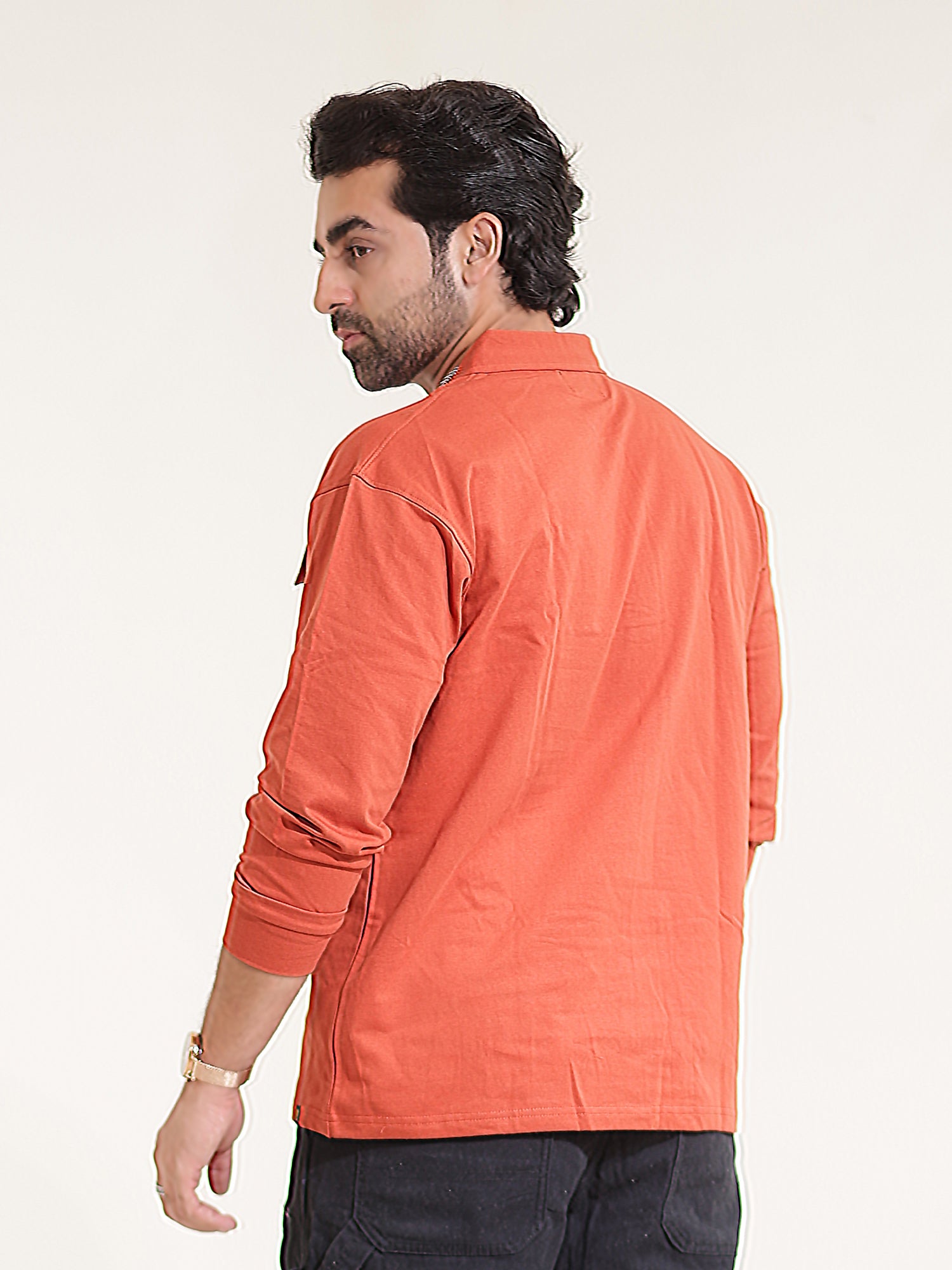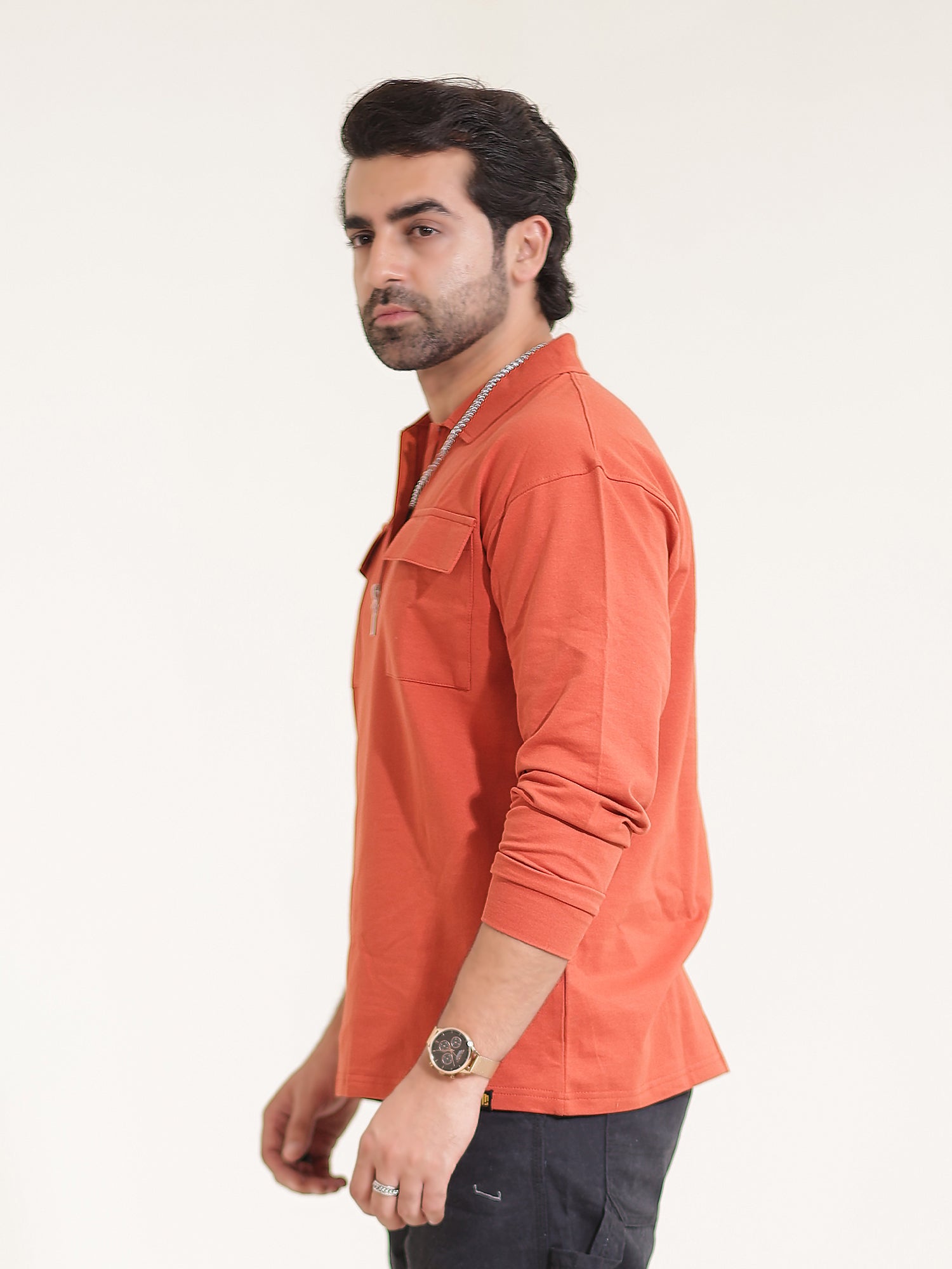 Cargo Pocket Rust Full Sleeve Polo T-Shirt