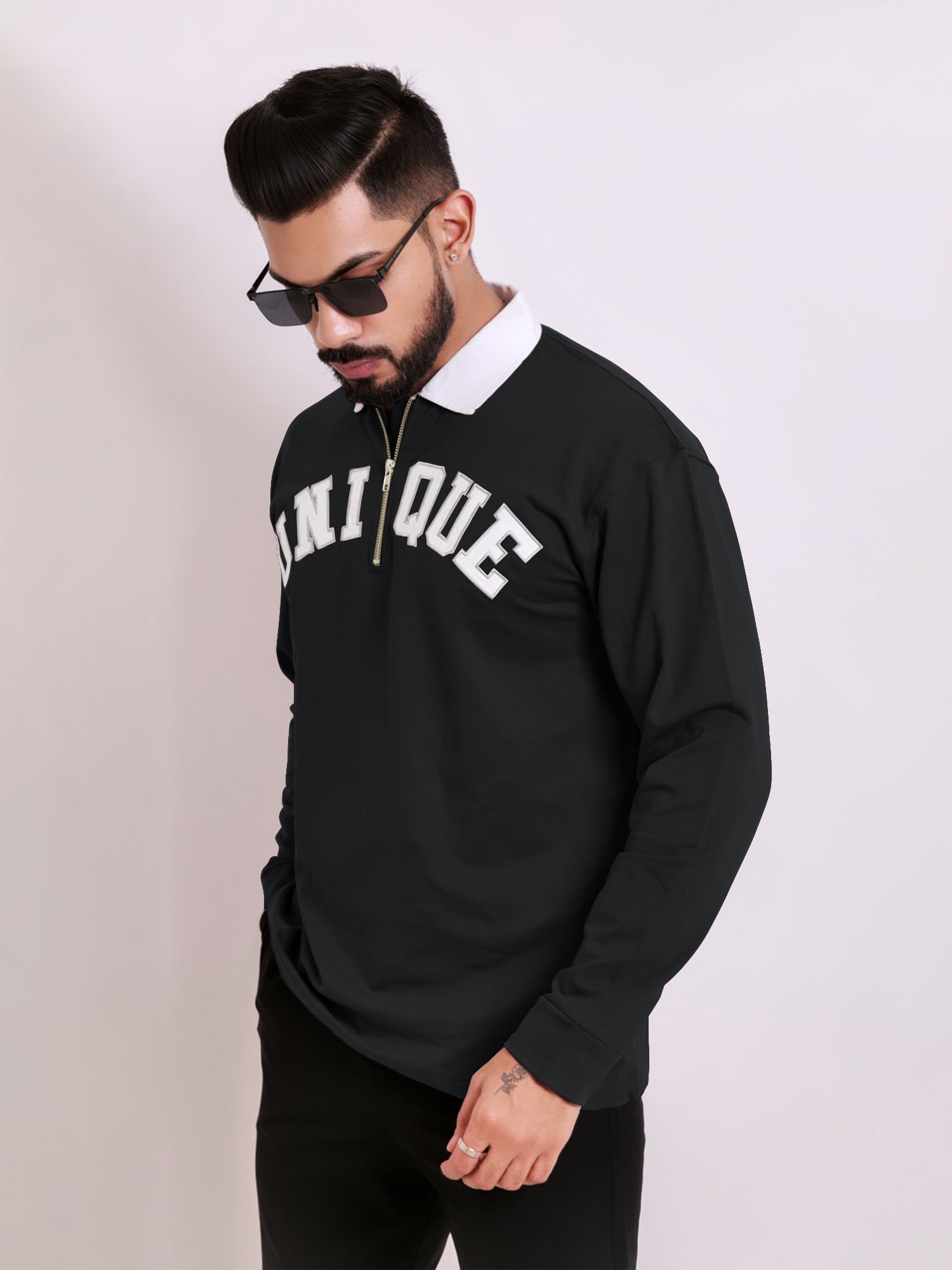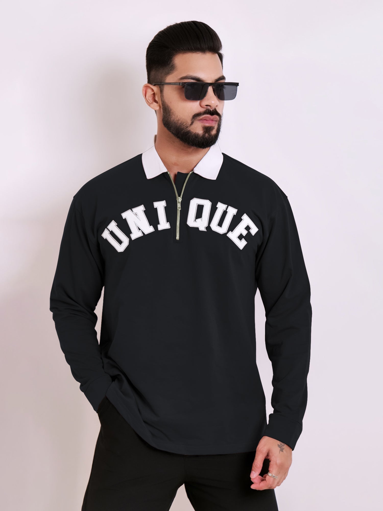 Half Zip Unique Black Fullsleeve Polo Tshirt