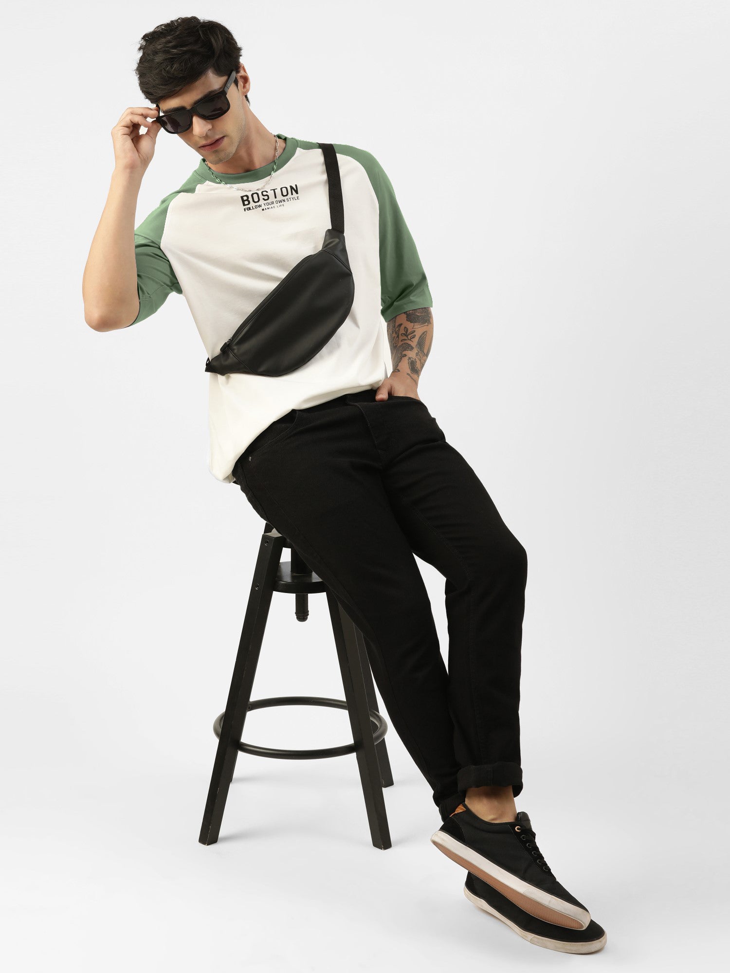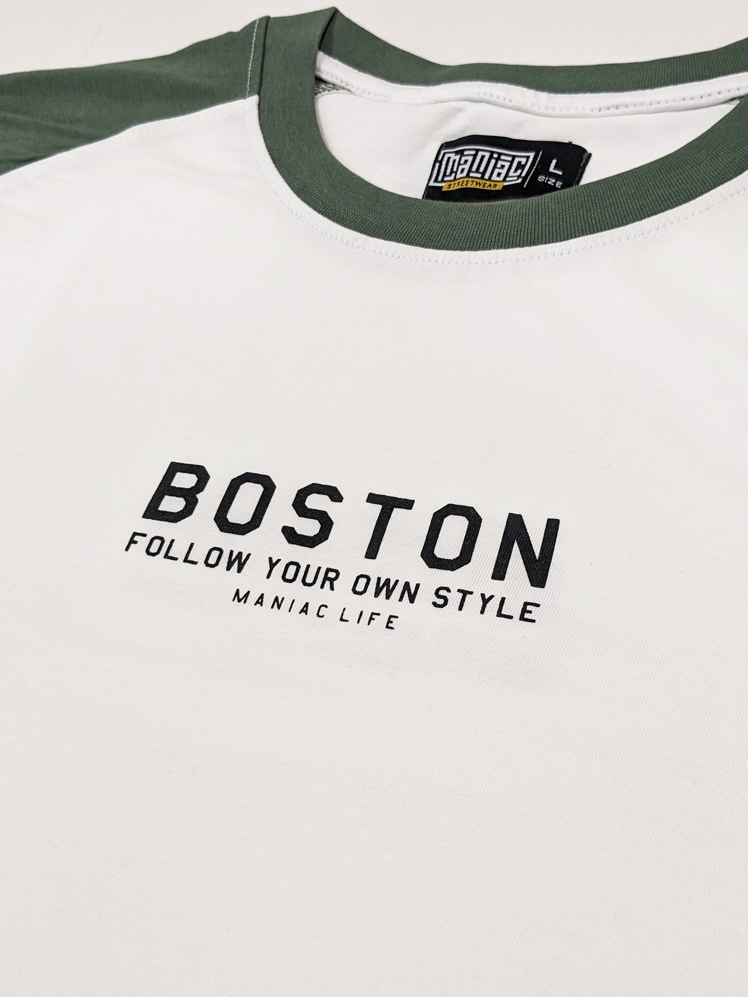 Boston White, Hunter Green Oversized Half Sleeve T-Shirt
