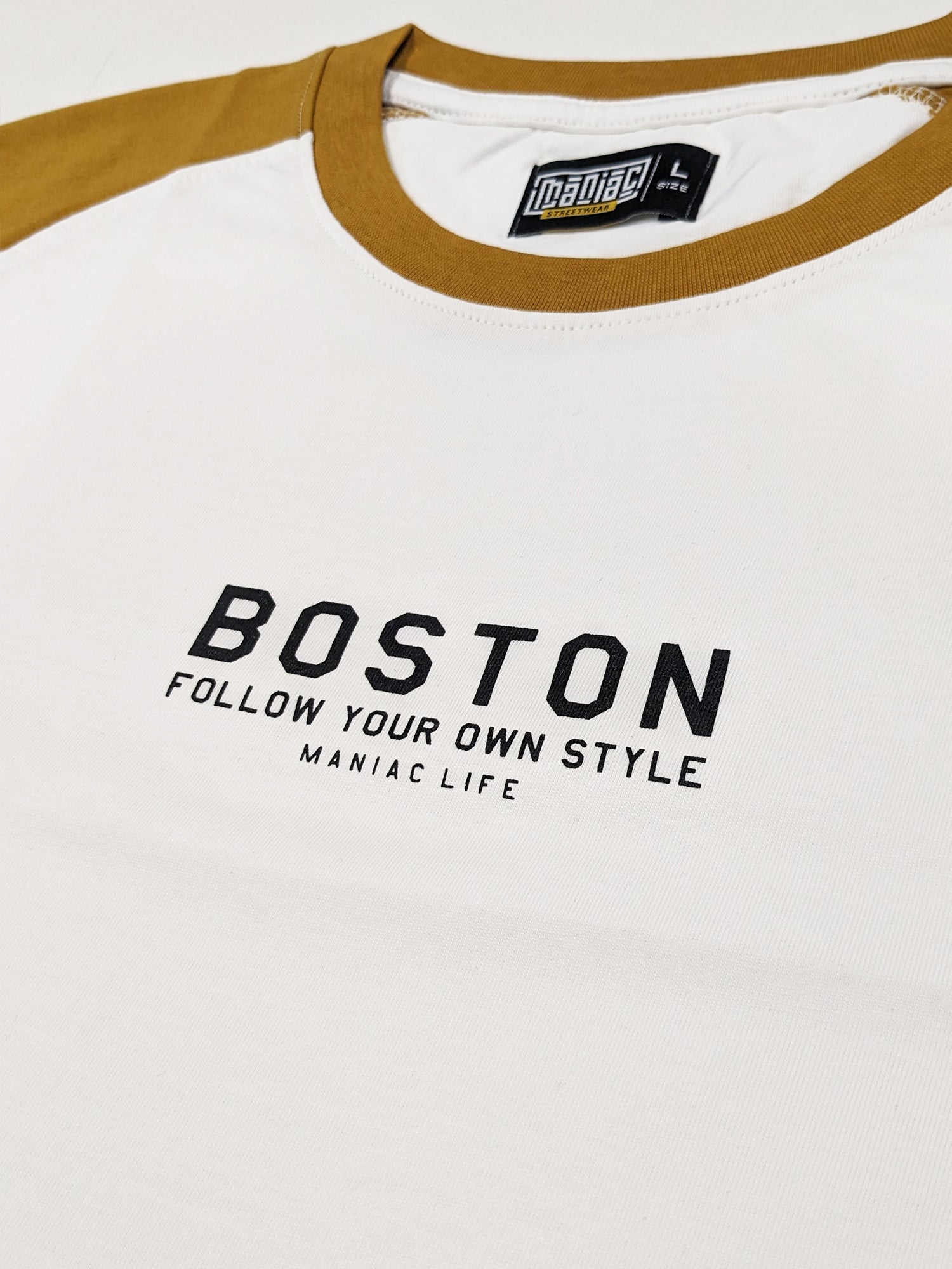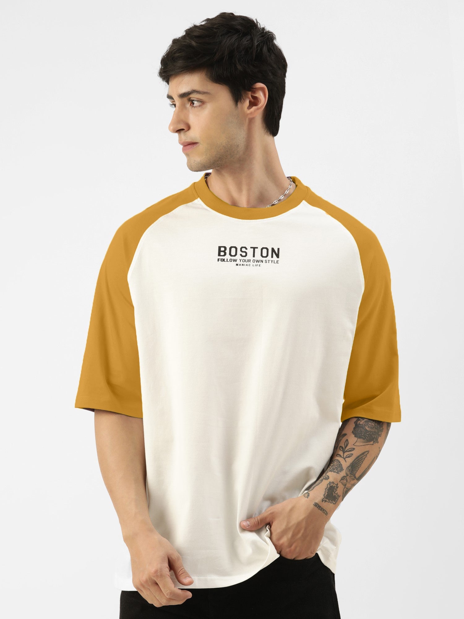 Boston White, Mustard Oversized Half Sleeve T-Shirt