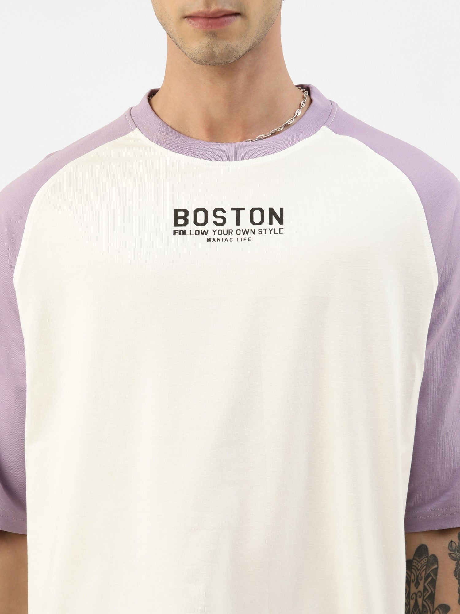 Boston Lavender White Oversized Half Sleeve T-Shirt