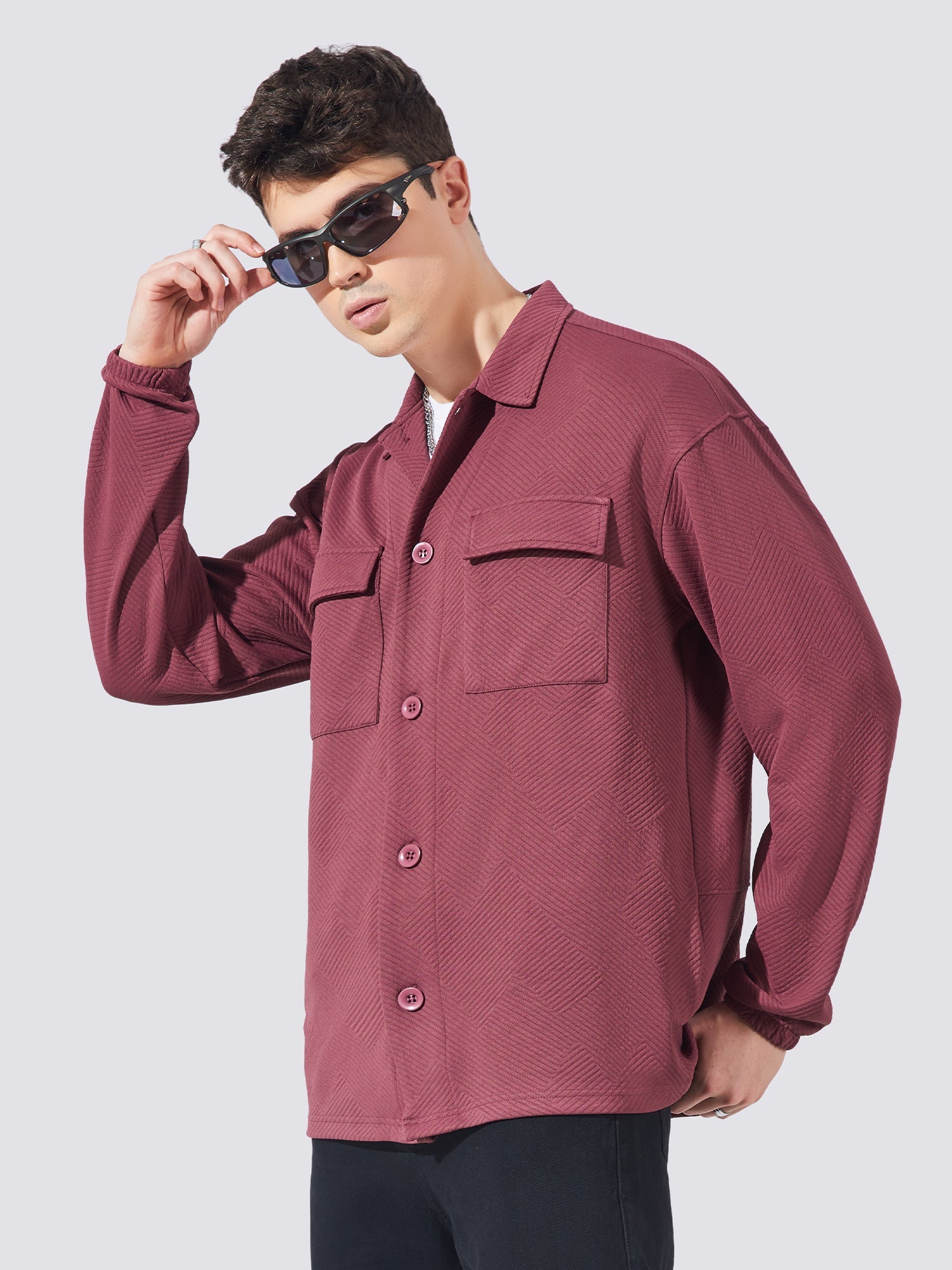 Double Pocket Solid Burgundy Full Sleeve Shacket