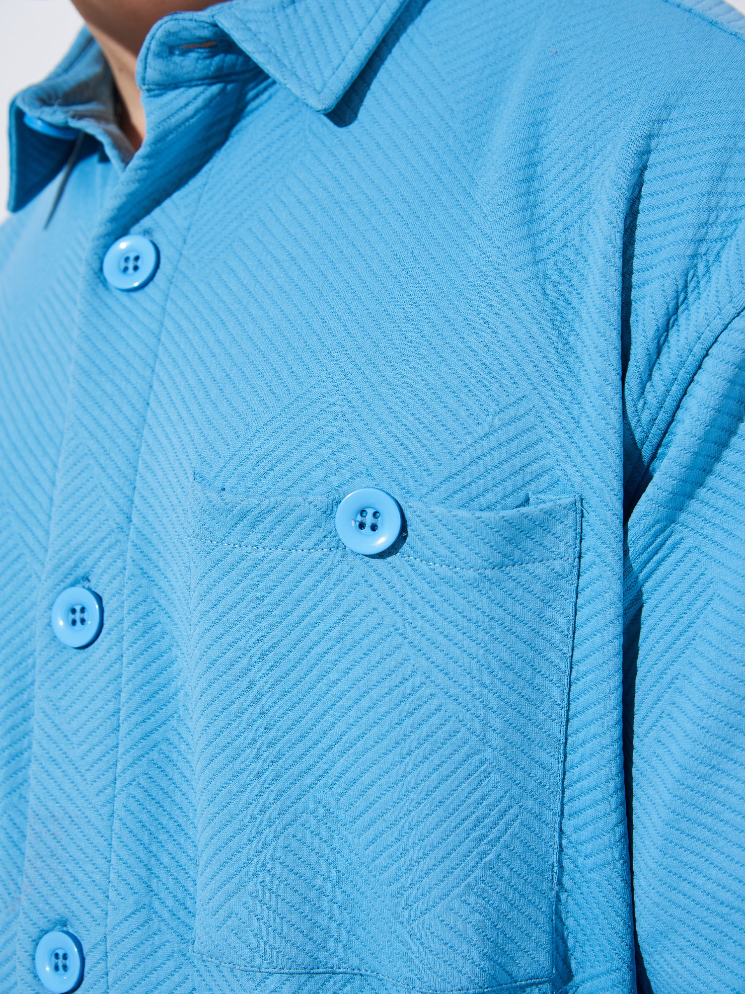 Double Pocket Solid Denim Blue Full Sleeve Shacket