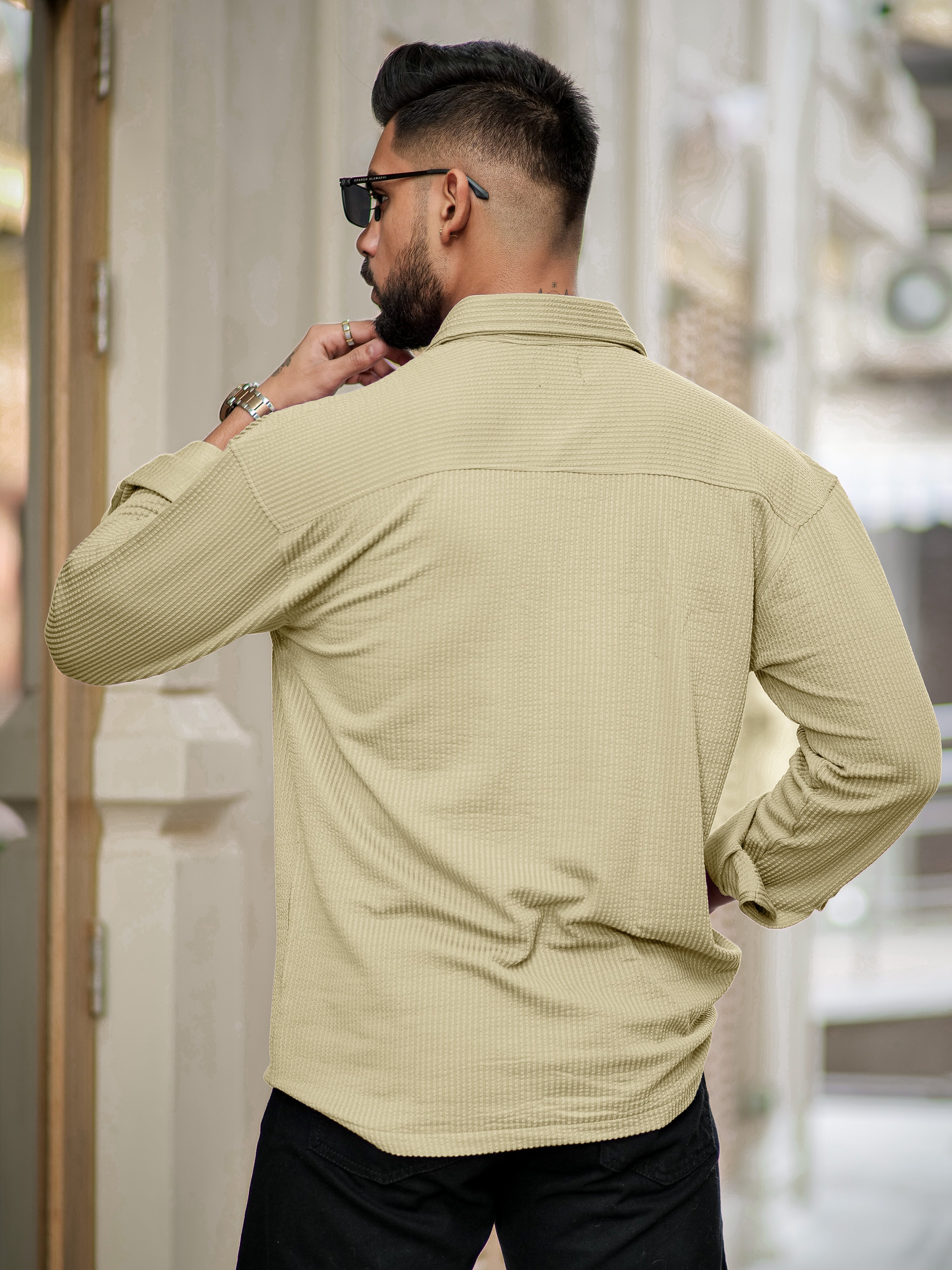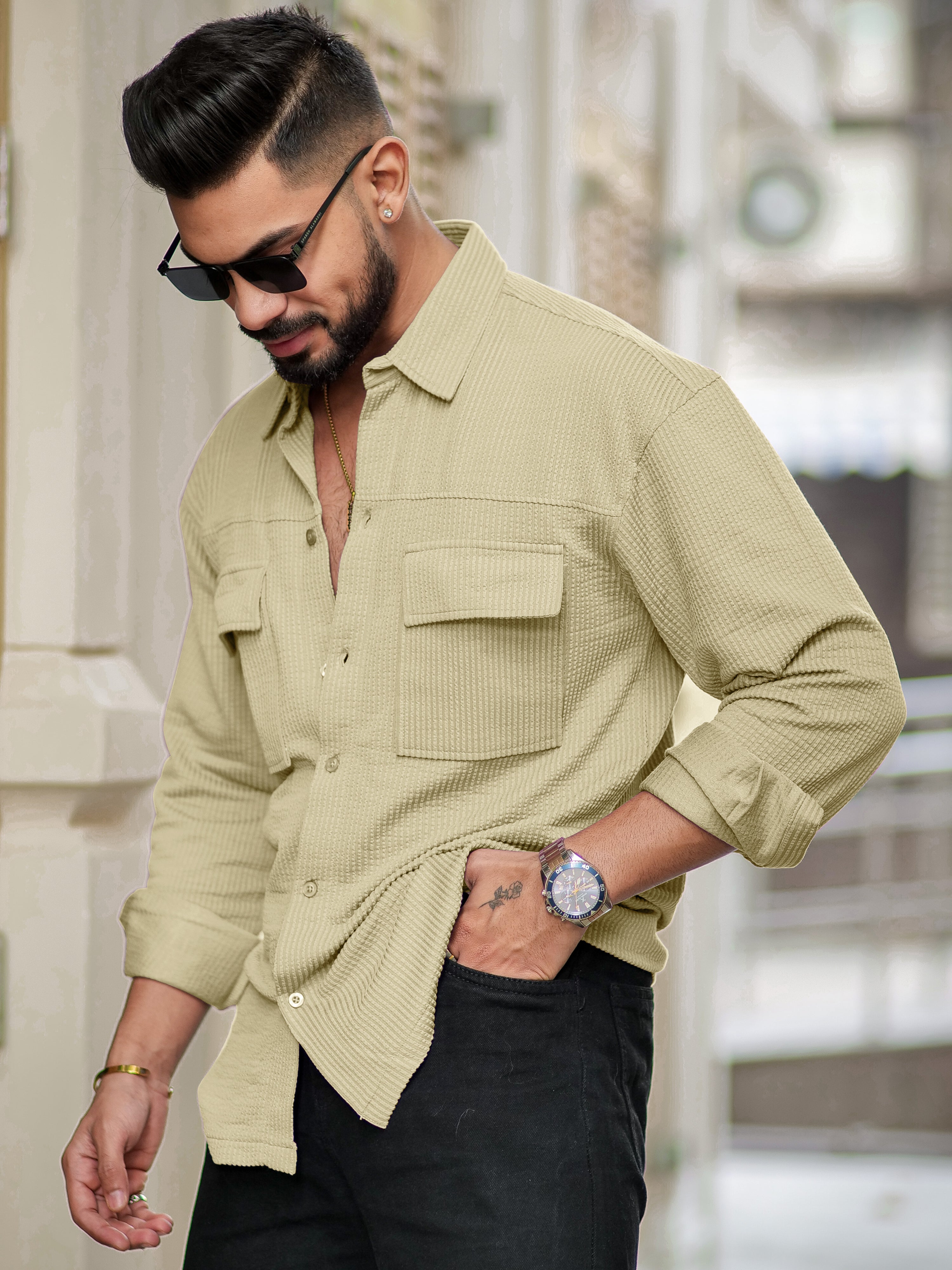 Elliot Cargo Knit Beige Lycra Full Sleeve Shirt