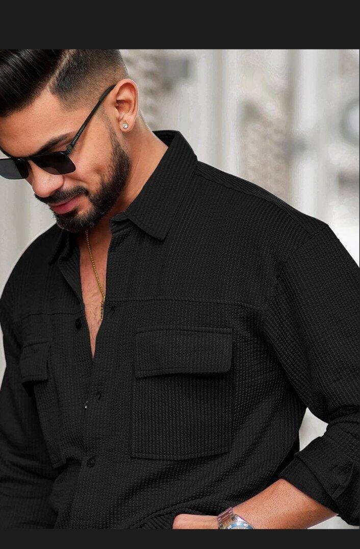Elliot Cargo Knit Black Lycra Full Sleeve Shirt