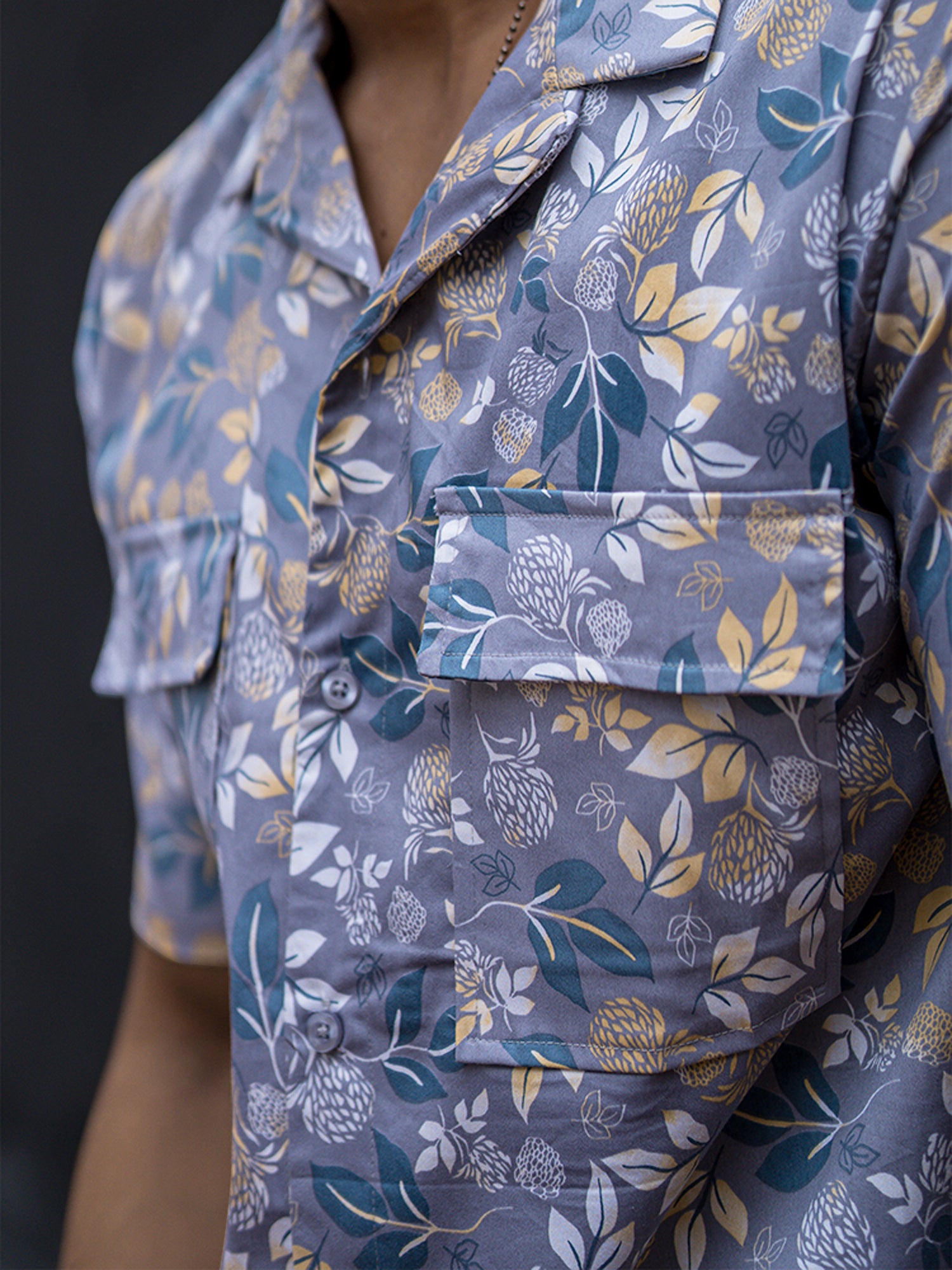 Double Pocket Multicolor Flower Printed Half Sleeve Shirt