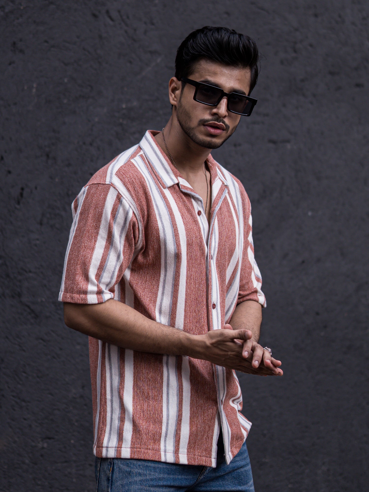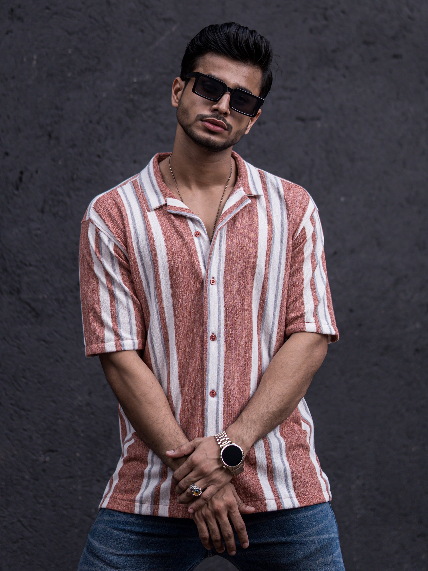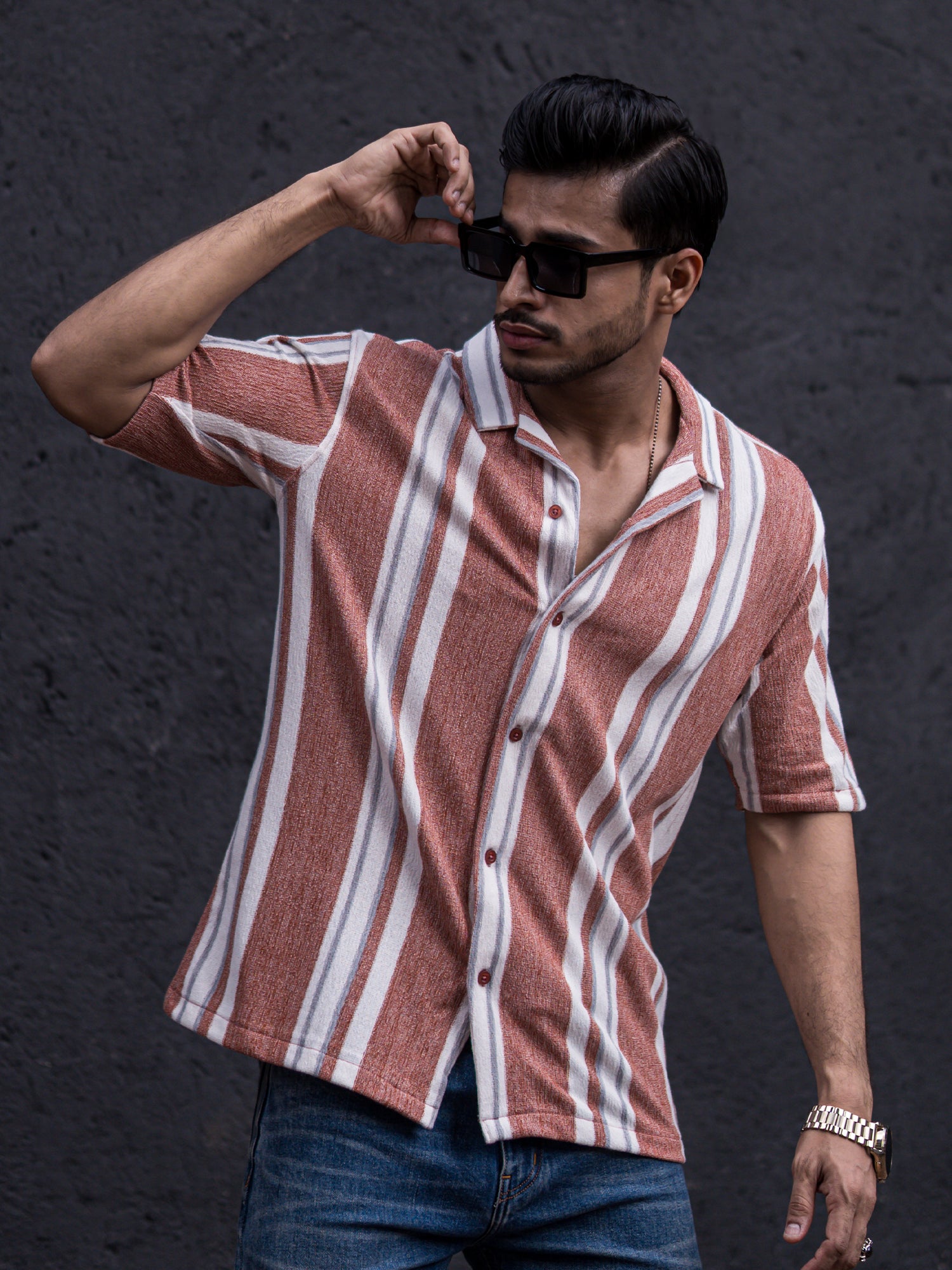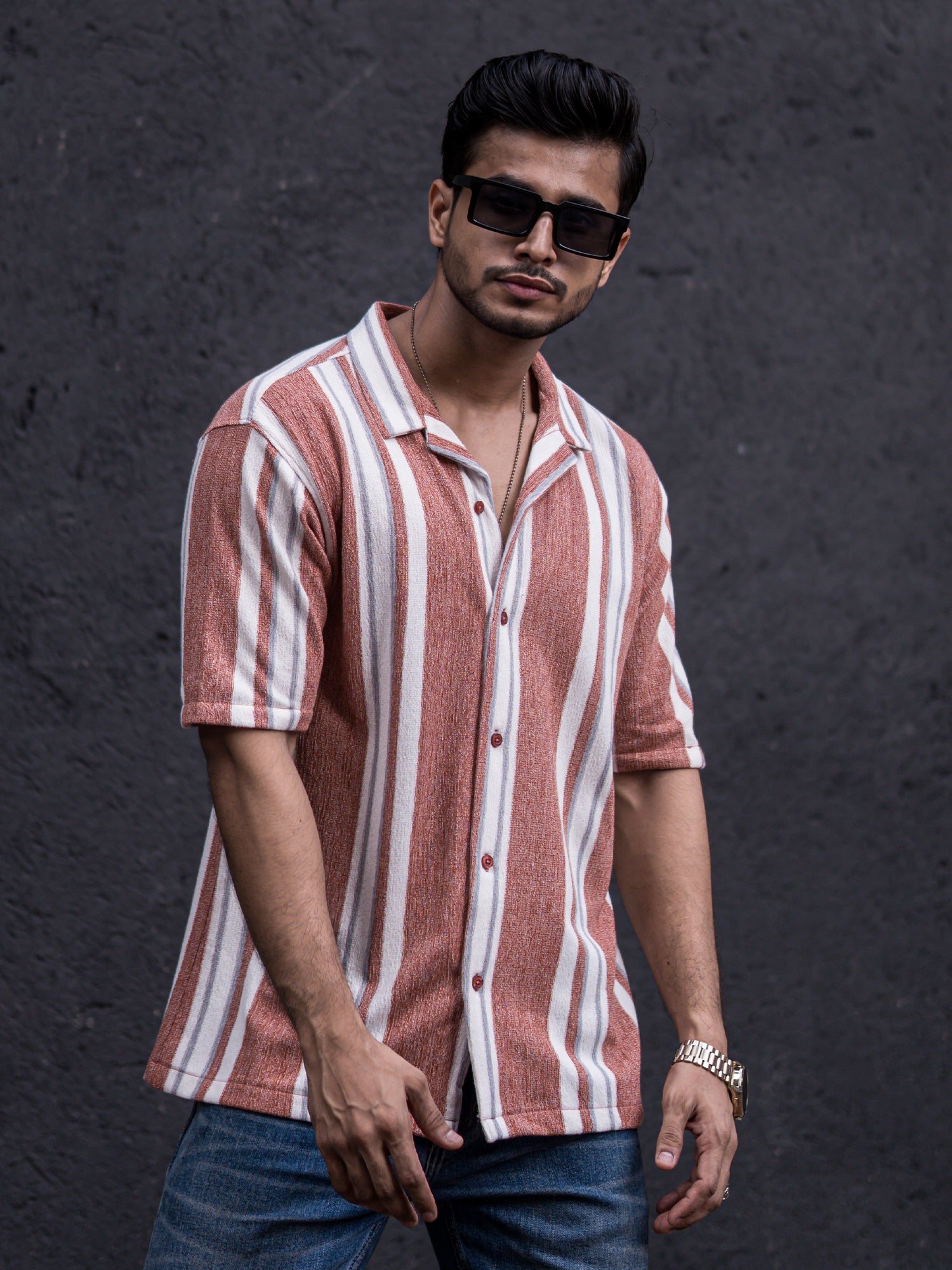 Striped Dark Onion Half Sleeve Shirt