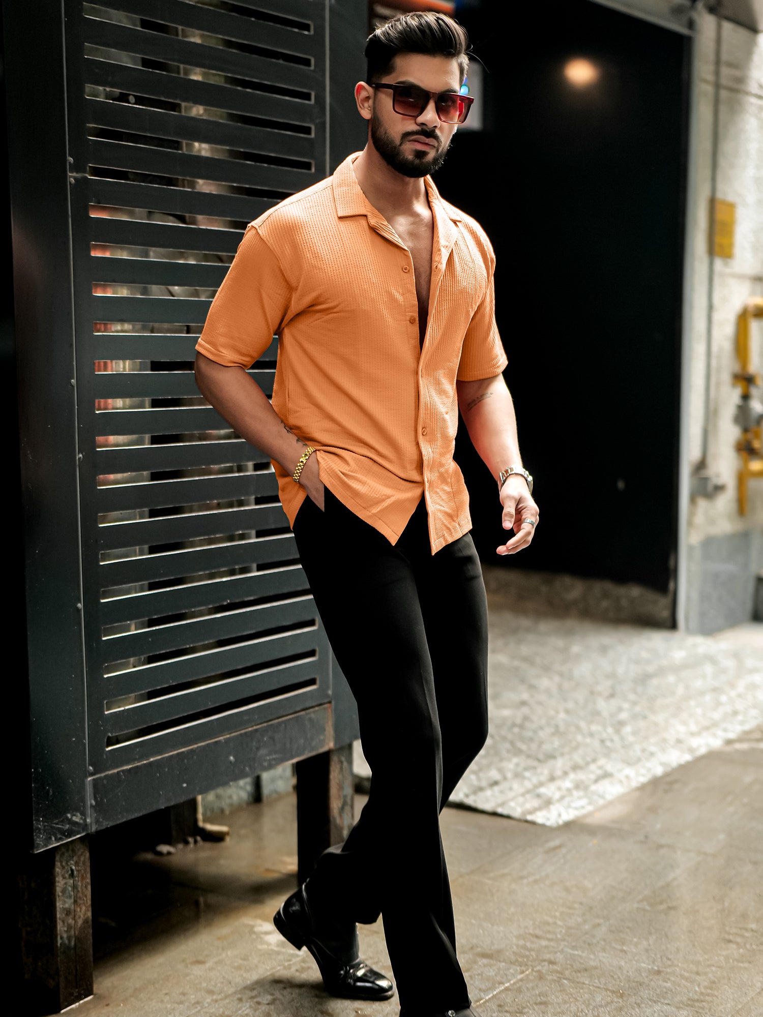 Elliot Knit Orange Lycra Half Sleeve Shirt