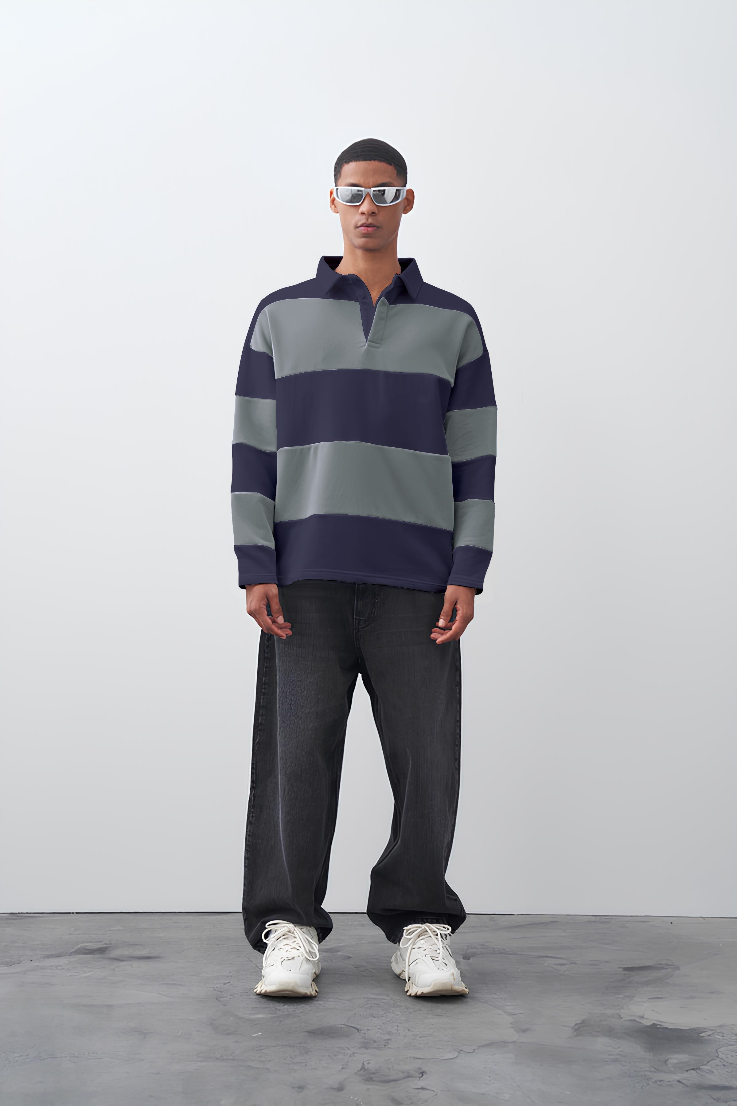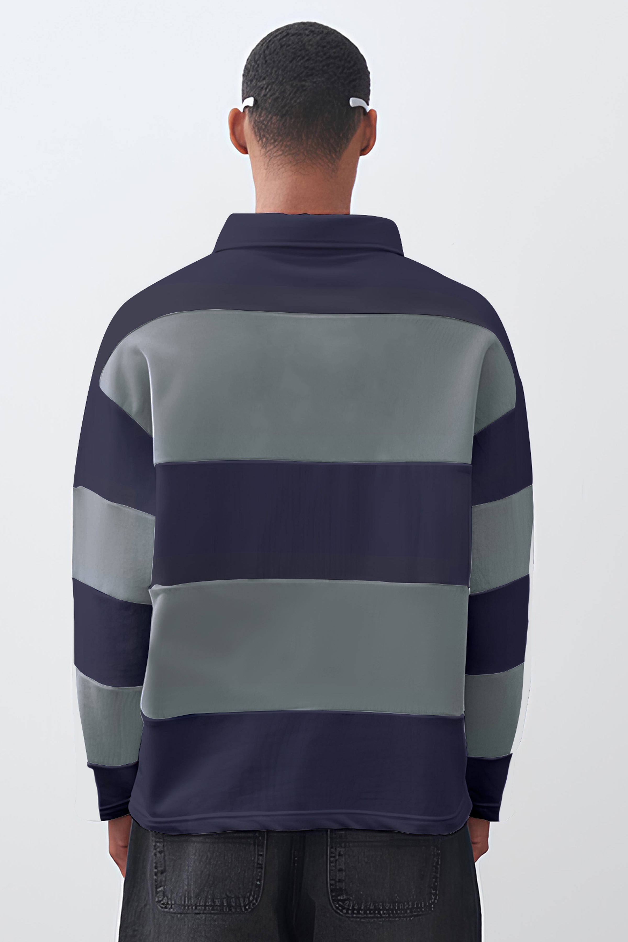ColorBlock Navy Grey Full Sleeve Polo T-Shirt