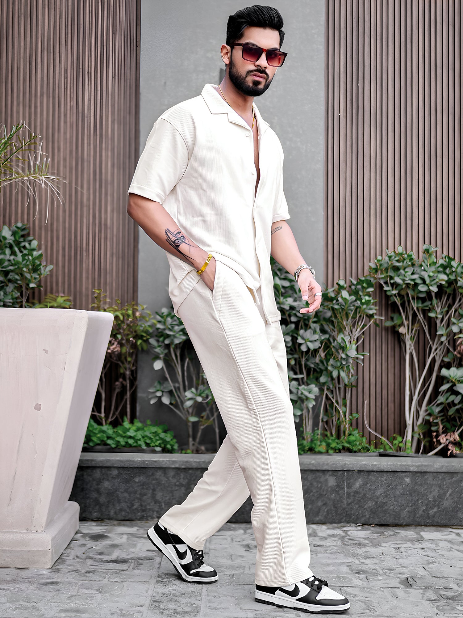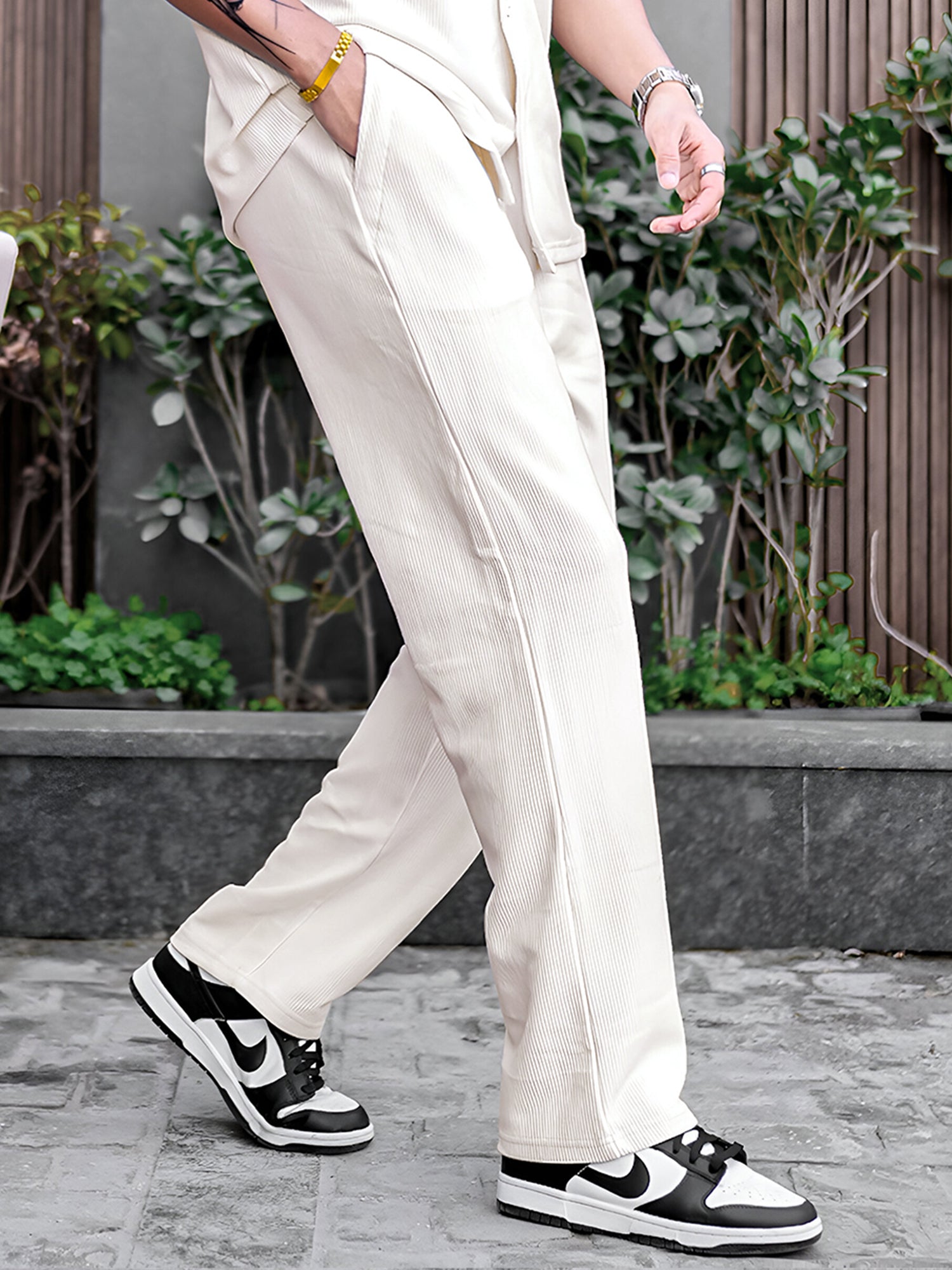 Cord Knit Textured Cream White Baggy Fit Trackpant