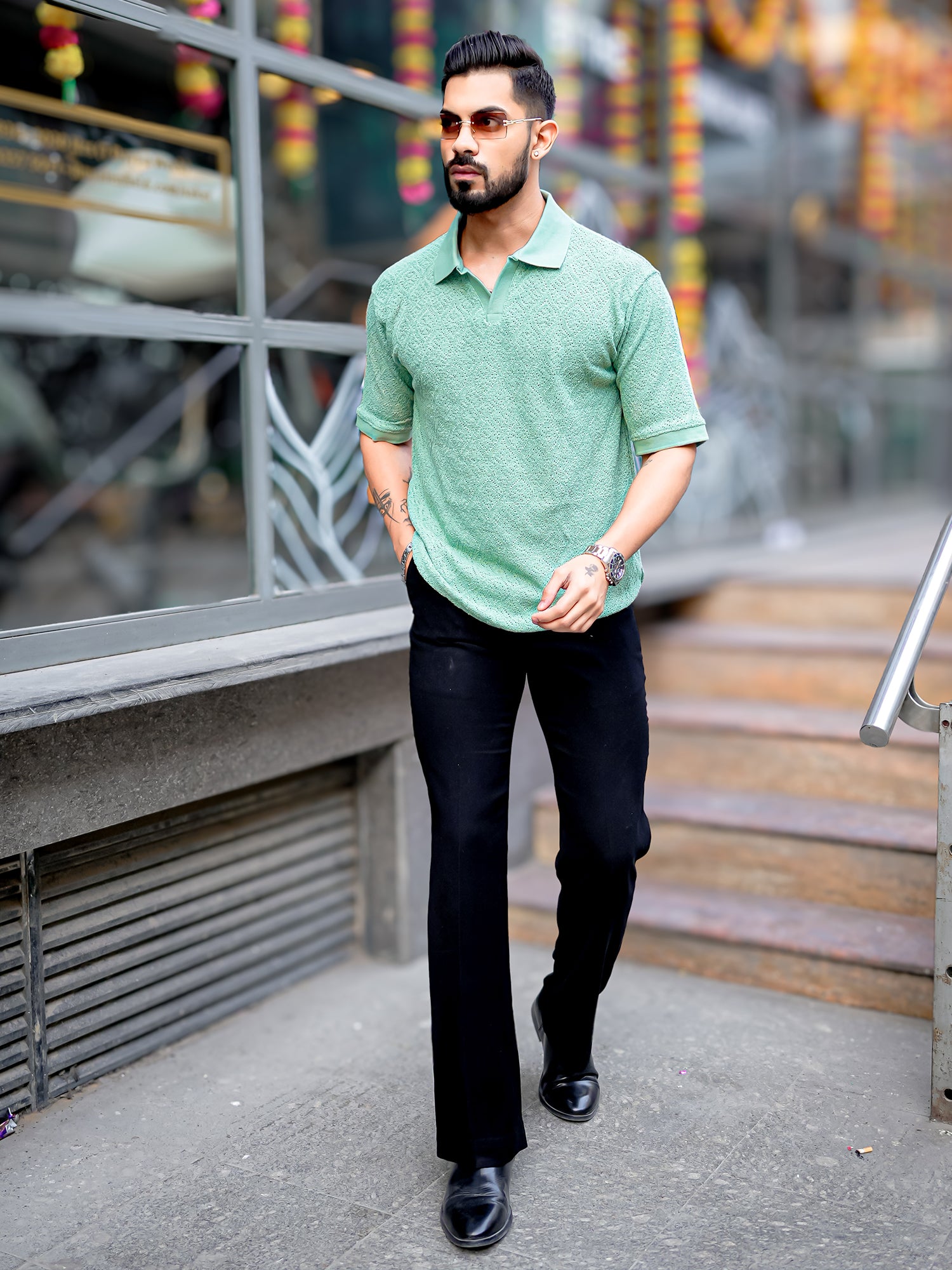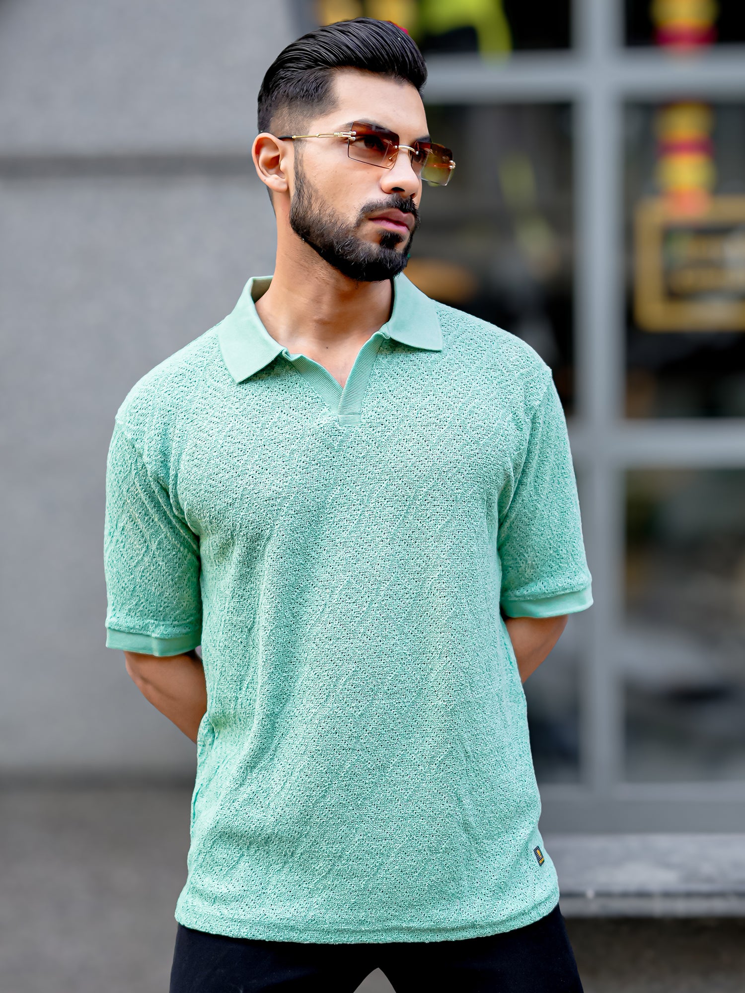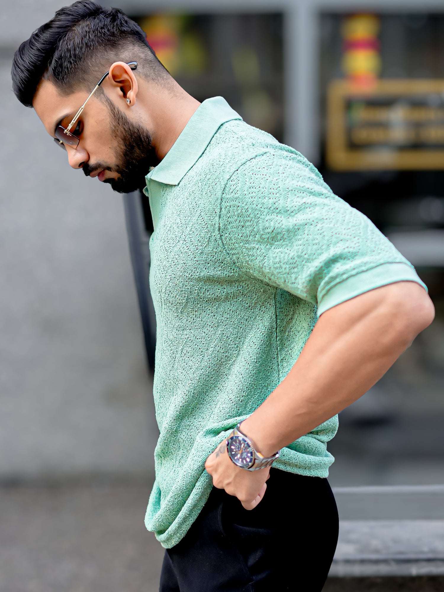 Croshia Knit Berly Green Half Sleeve Polo T-Shirt