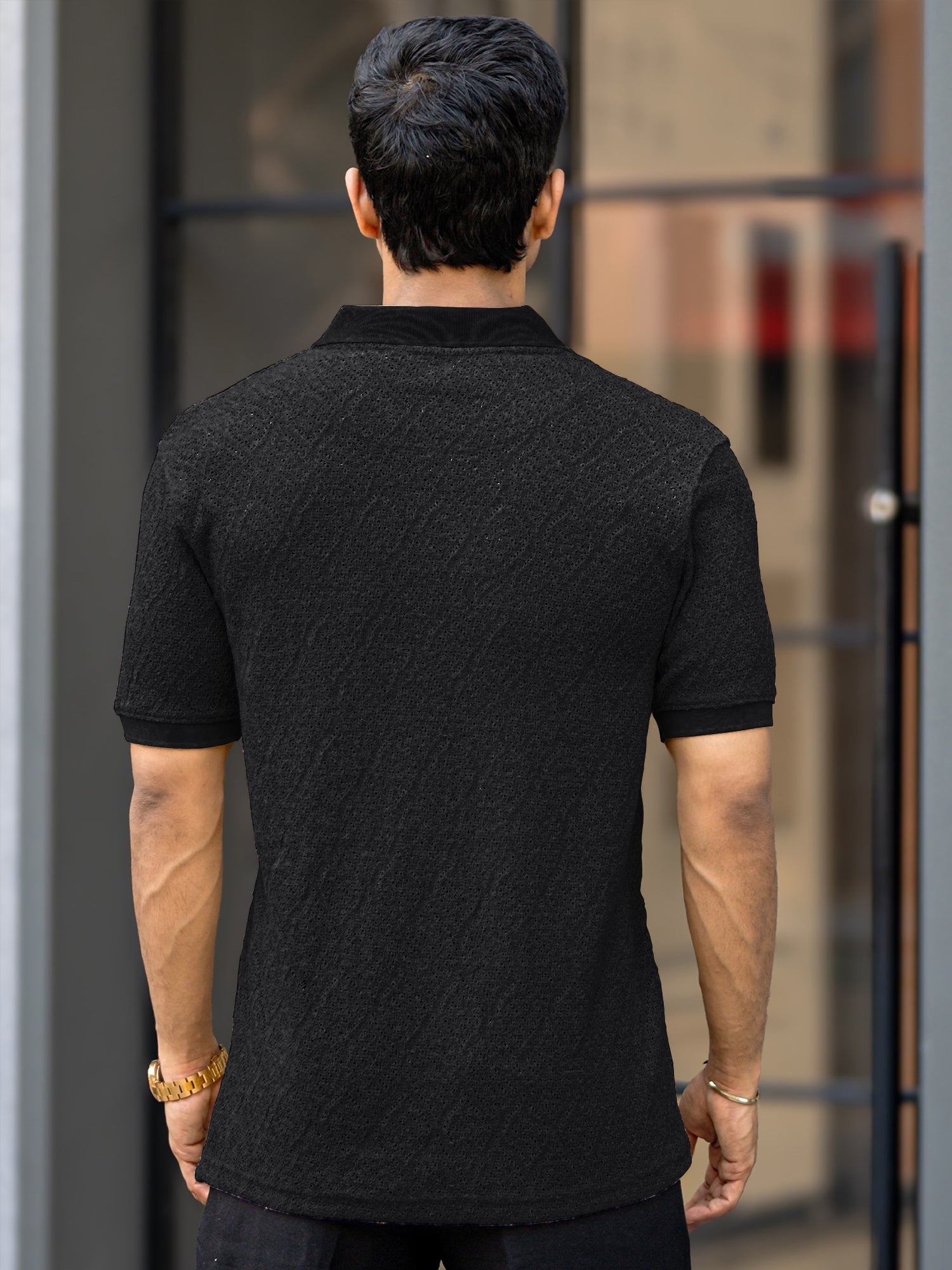 Croshia knit Beige Half Zip Half Sleeve Polo T-Shirt