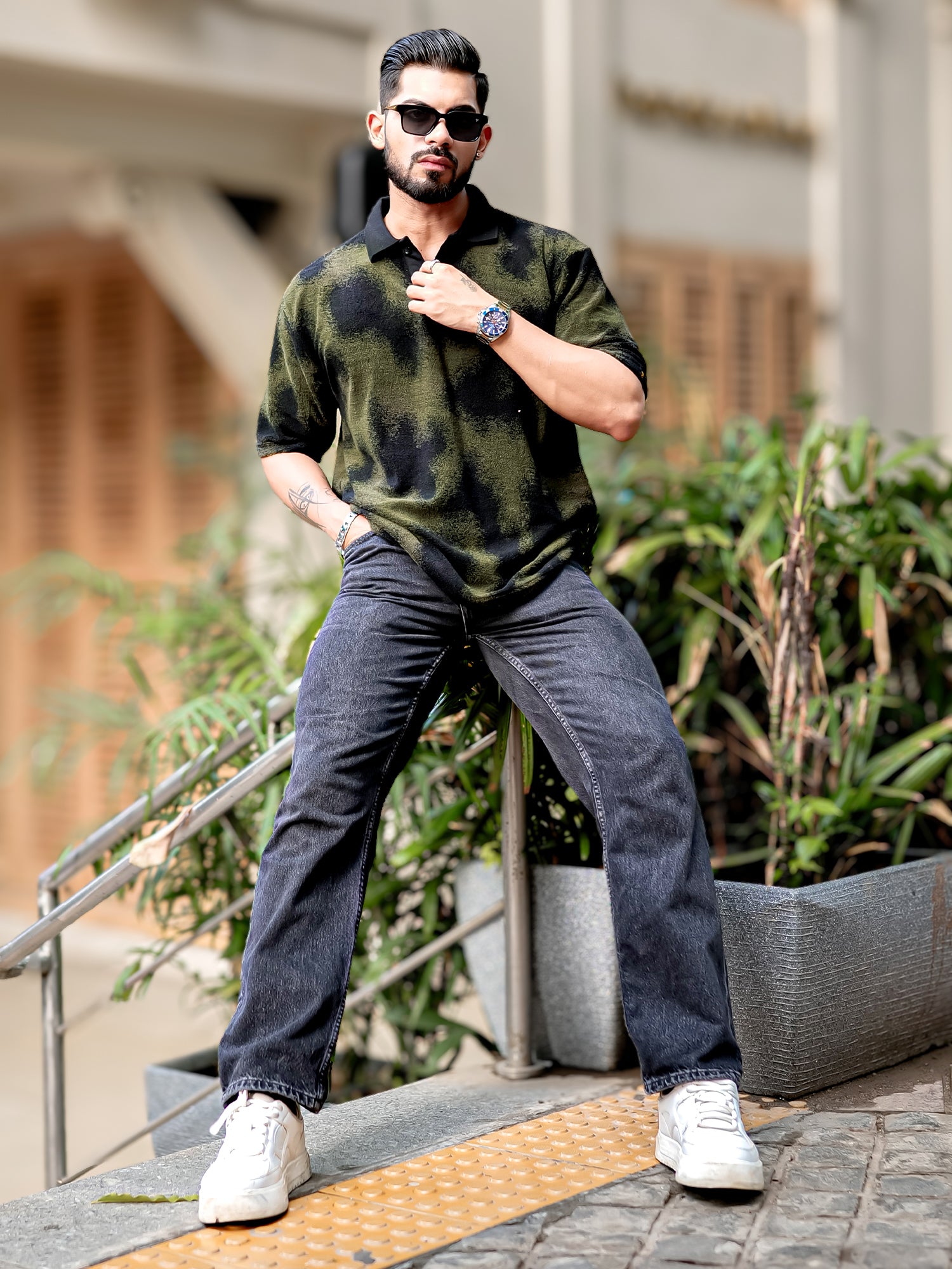 Spray Art Olive Half Sleeve Polo T-Shirt