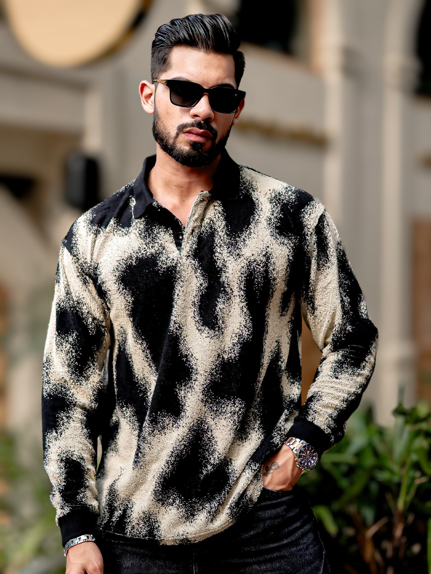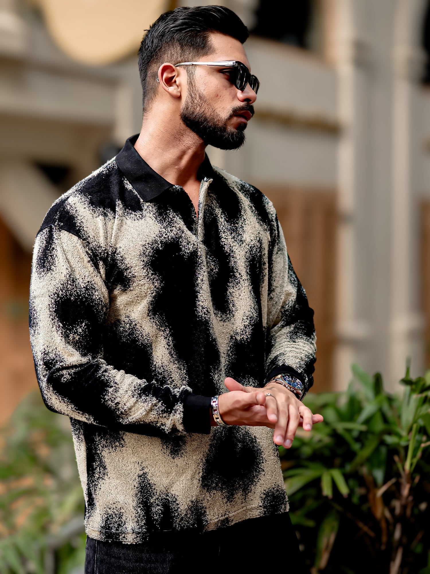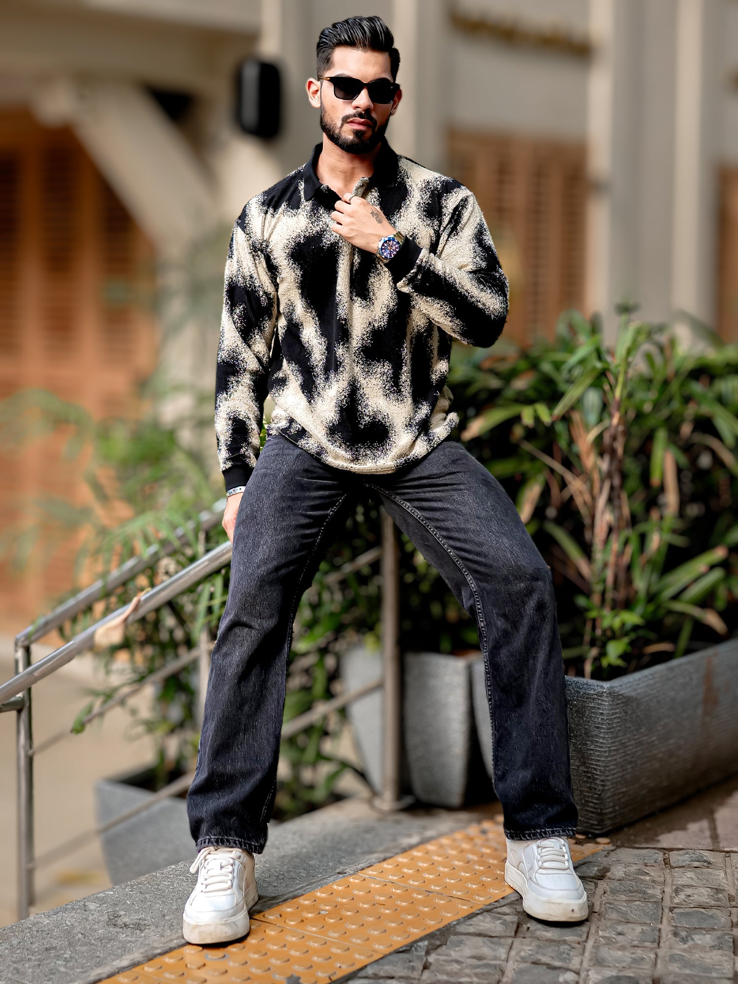 Spray Art Full Sleeve HalfWhite Half Sleeve Polo T-Shirt