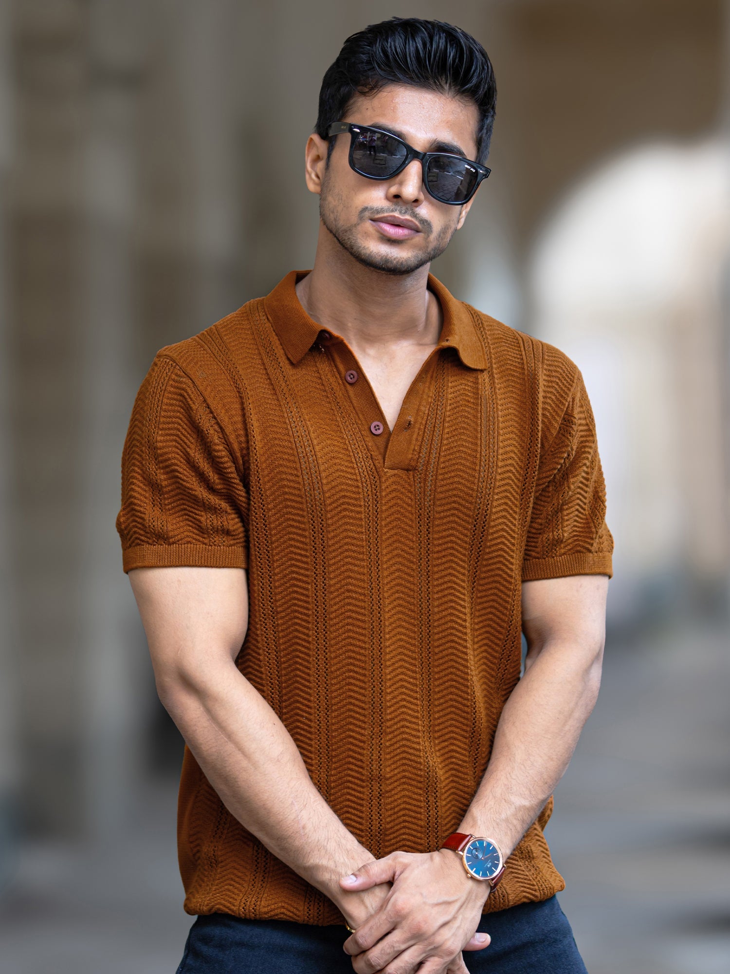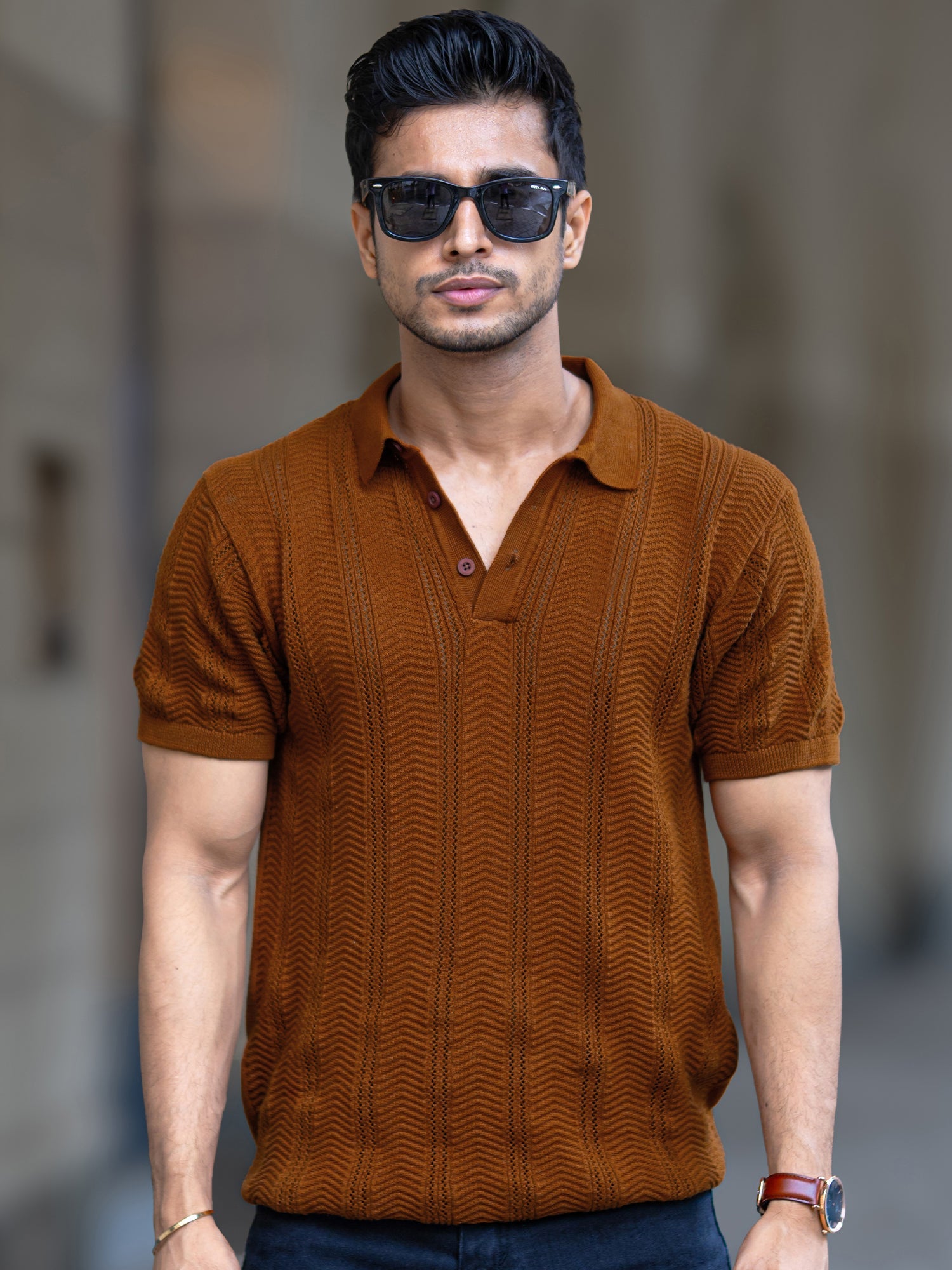 Bohemian Crochet Brown Half Sleeve T-Shirt