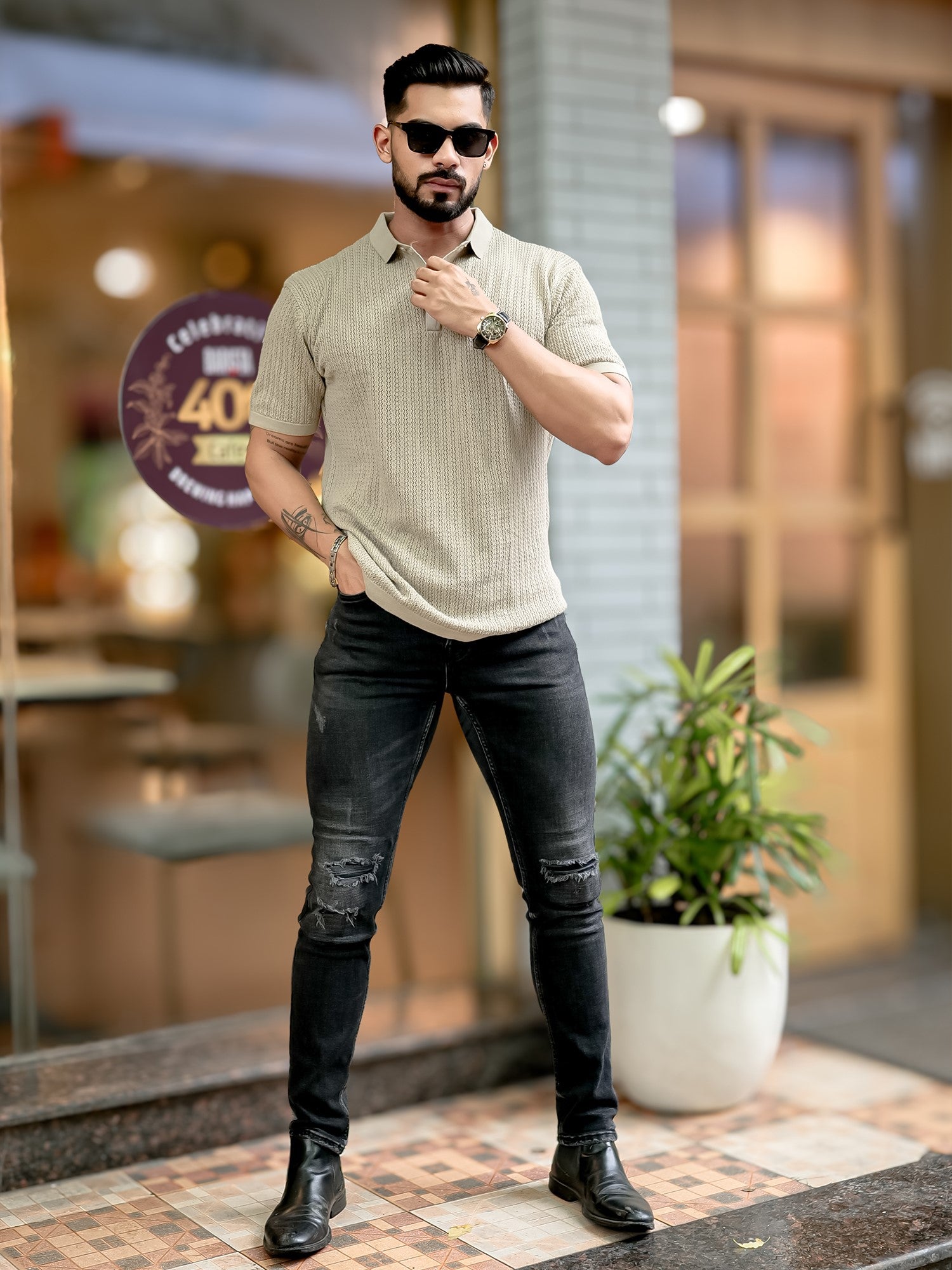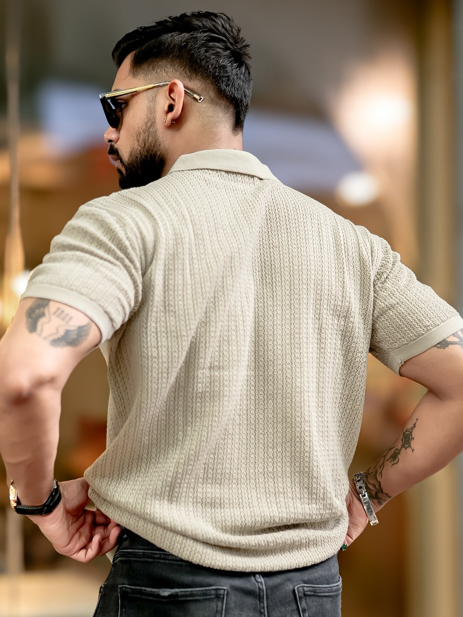 Classic Rib Knit Beige Polo Half Sleeve T-Shirt