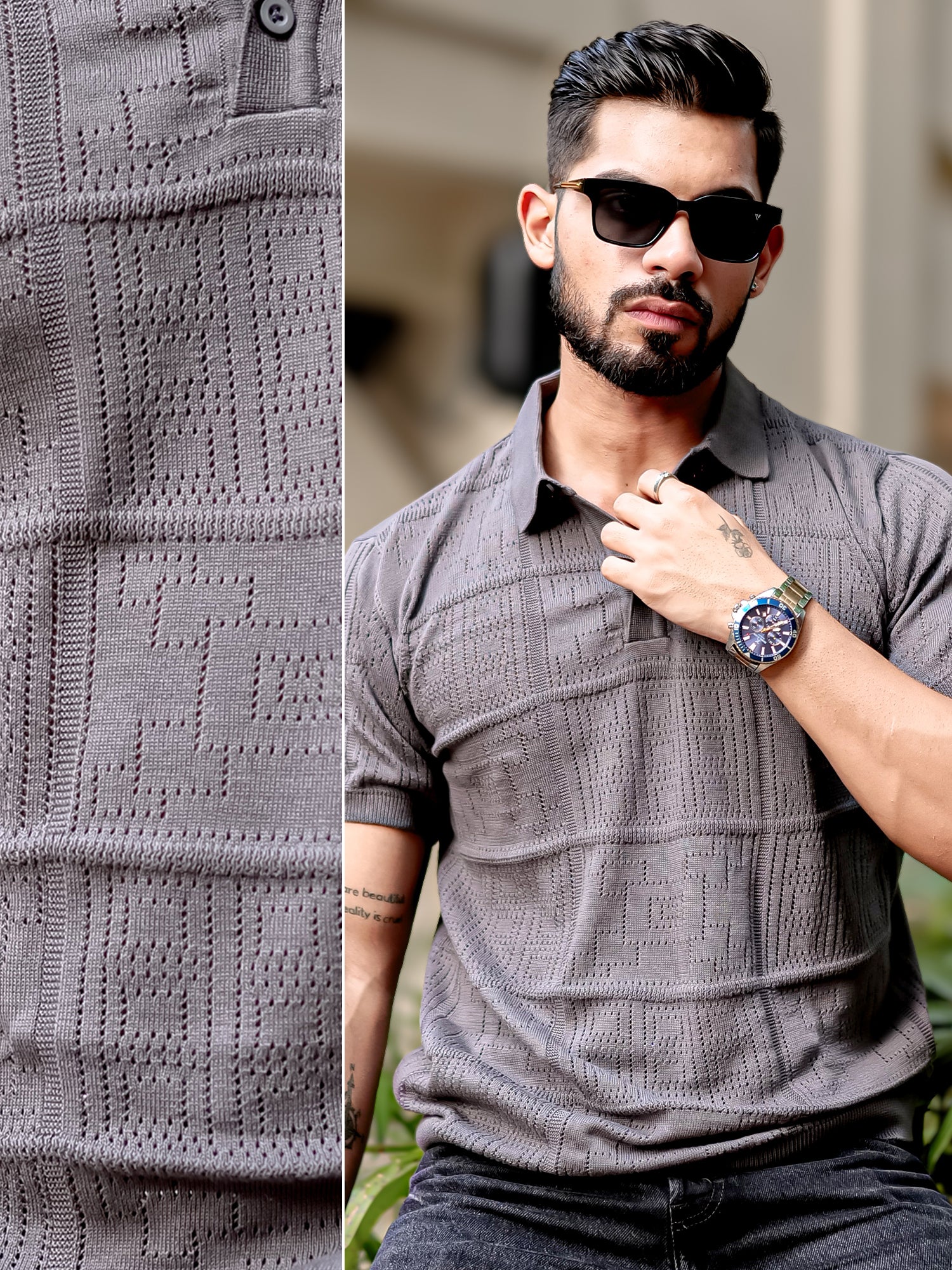 Pointel FlatKnit Cotton Dark Grey Half Sleeve T-Shirt