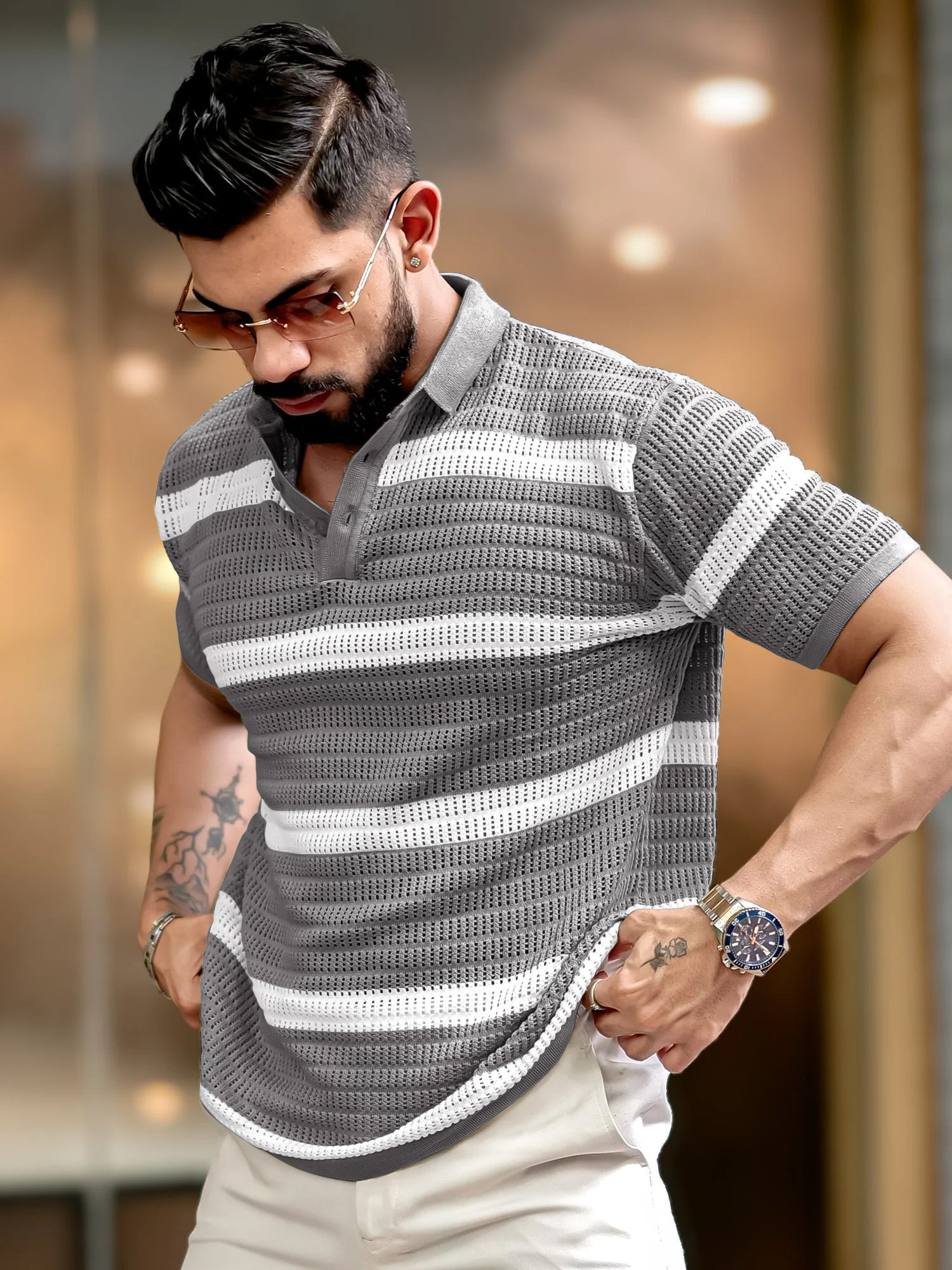 Sheer FlatKnit Cotton Beige Half Sleeve Polo T-Shirt