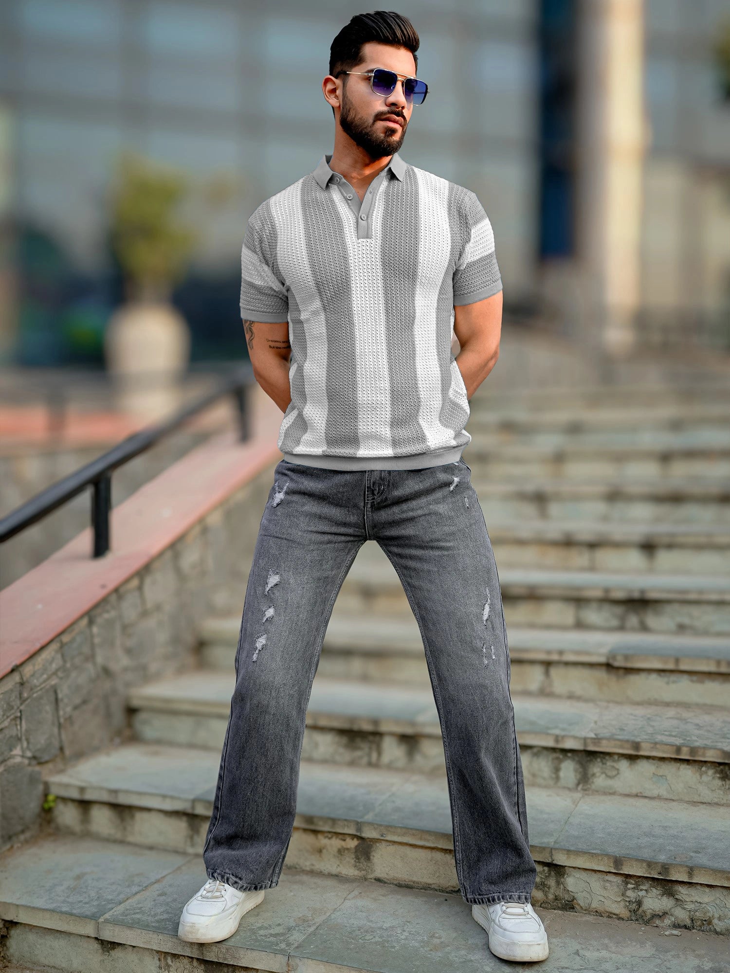 Airstripe Grey Half Sleeve Grey Polo T-Shirt