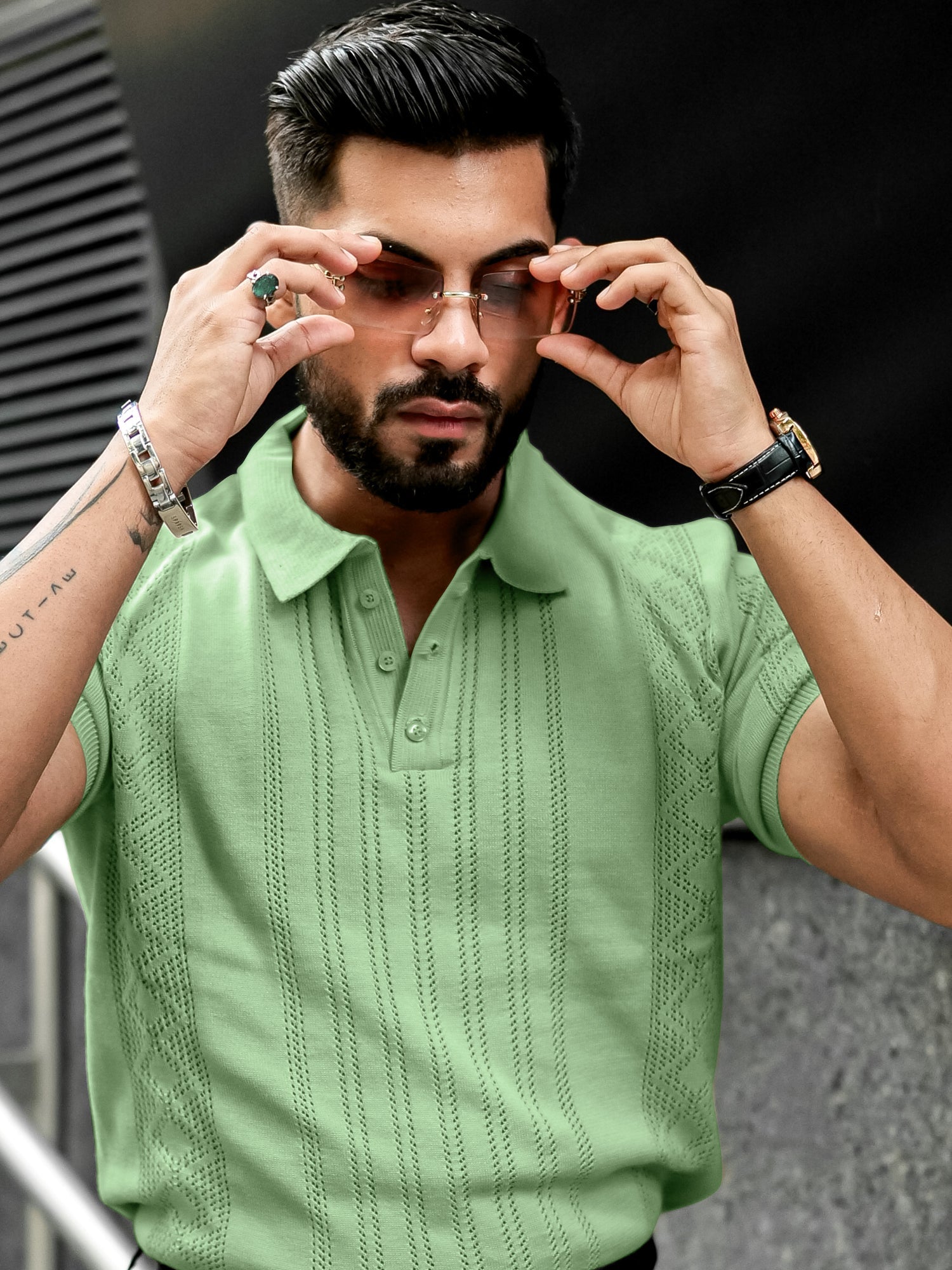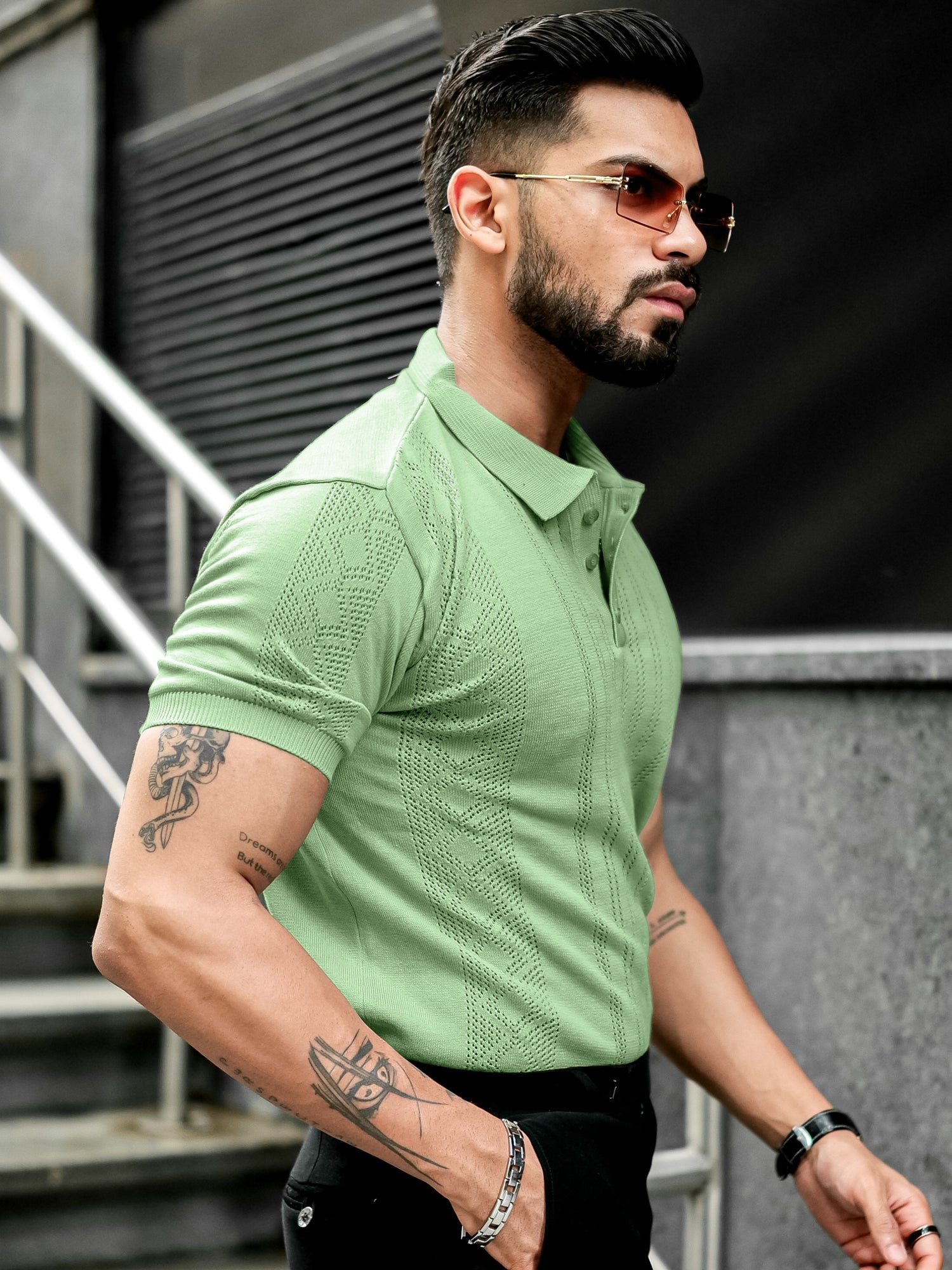 Flat Knit Green Slim Polo Half Sleeve T-Shirt