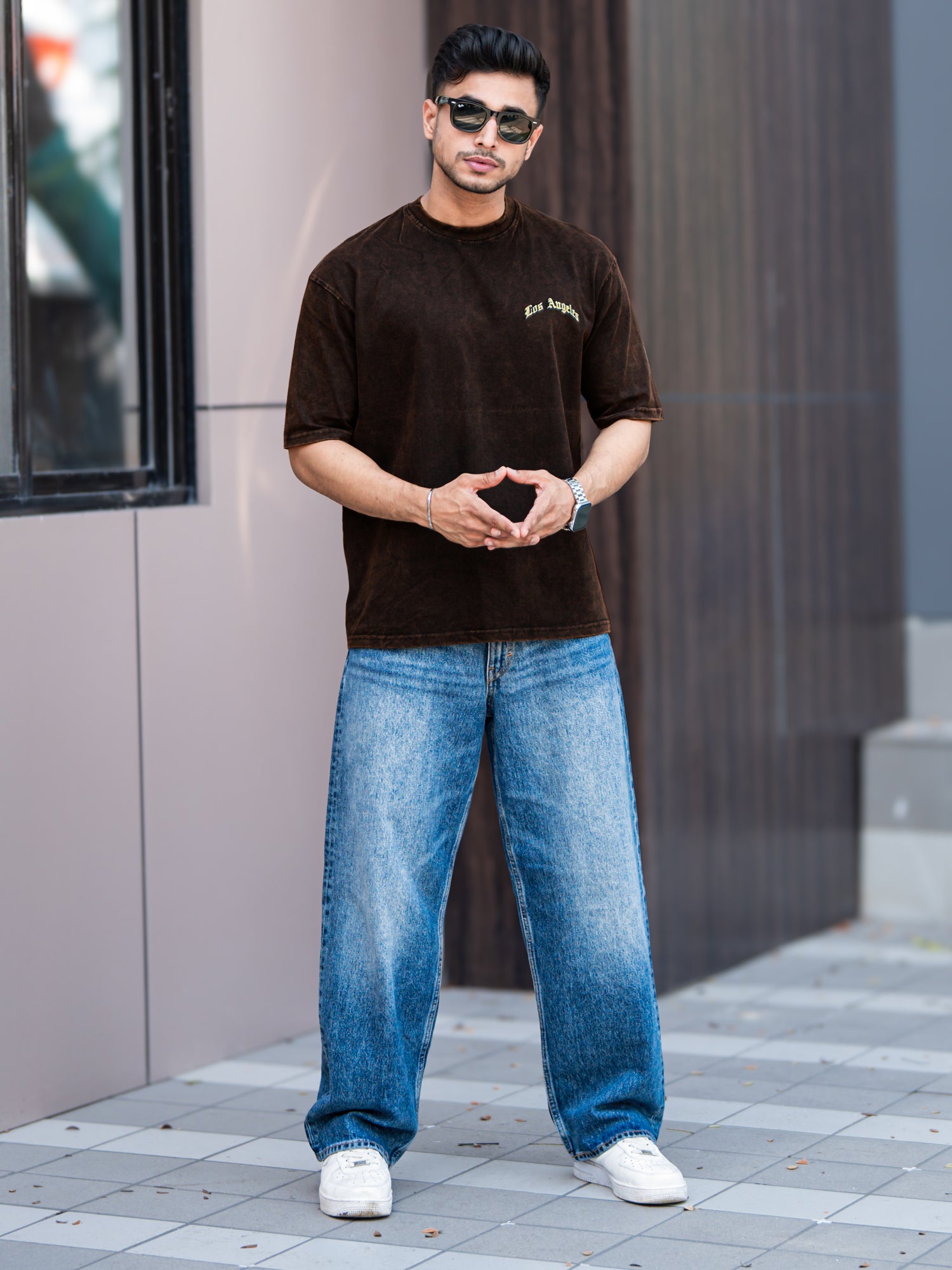 Losangles Acid Wash Black Half Sleeve T-Shirt