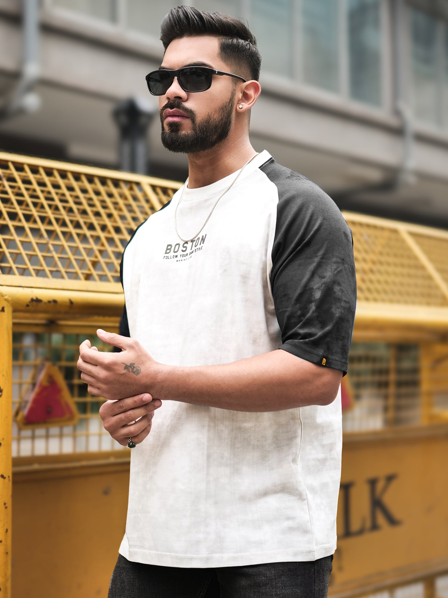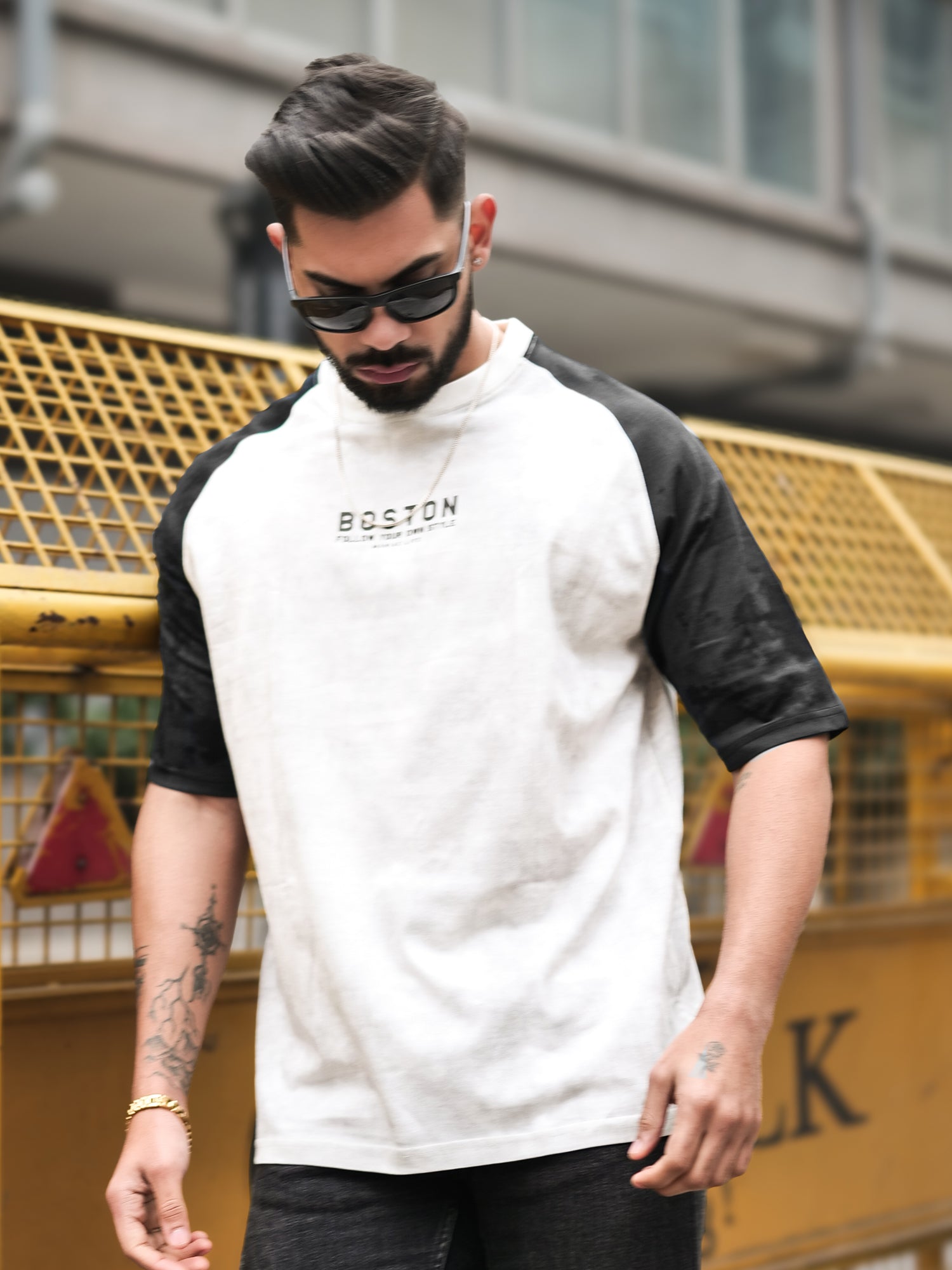 Boston Acid Wash Black Half Sleeve T-Shirt