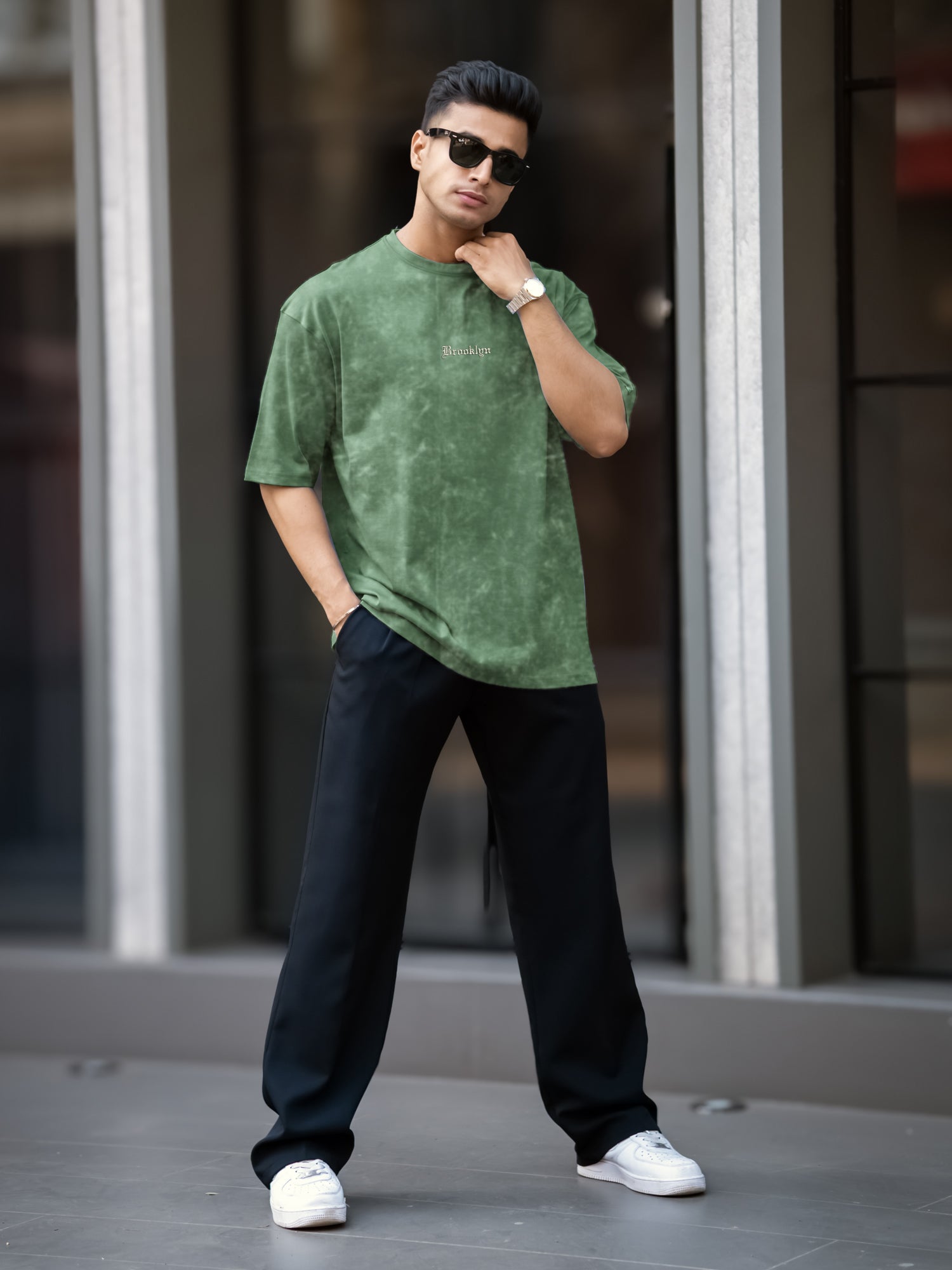 Brooklyn Acid Wash Hunter Green Half Sleeve T-Shirt