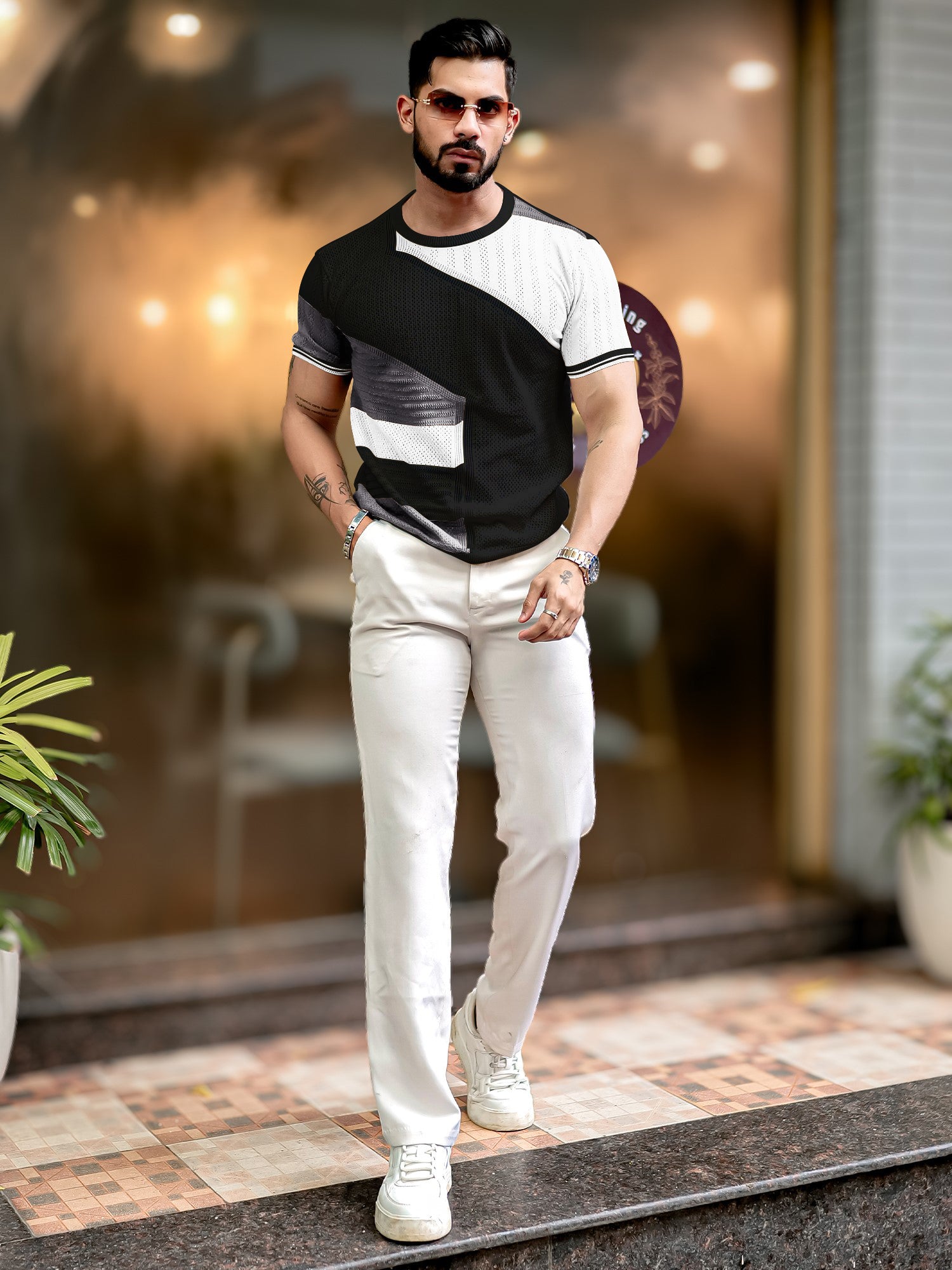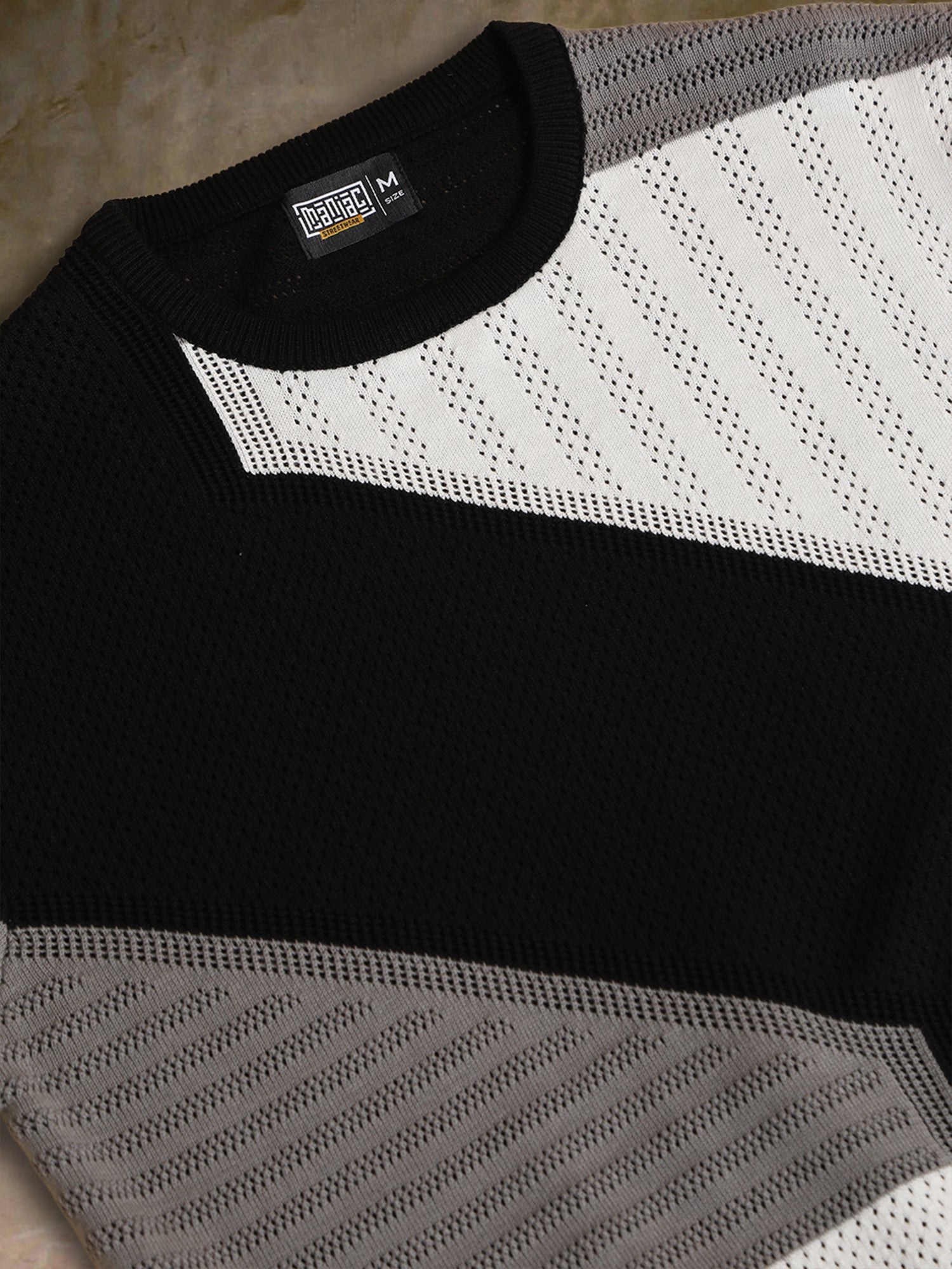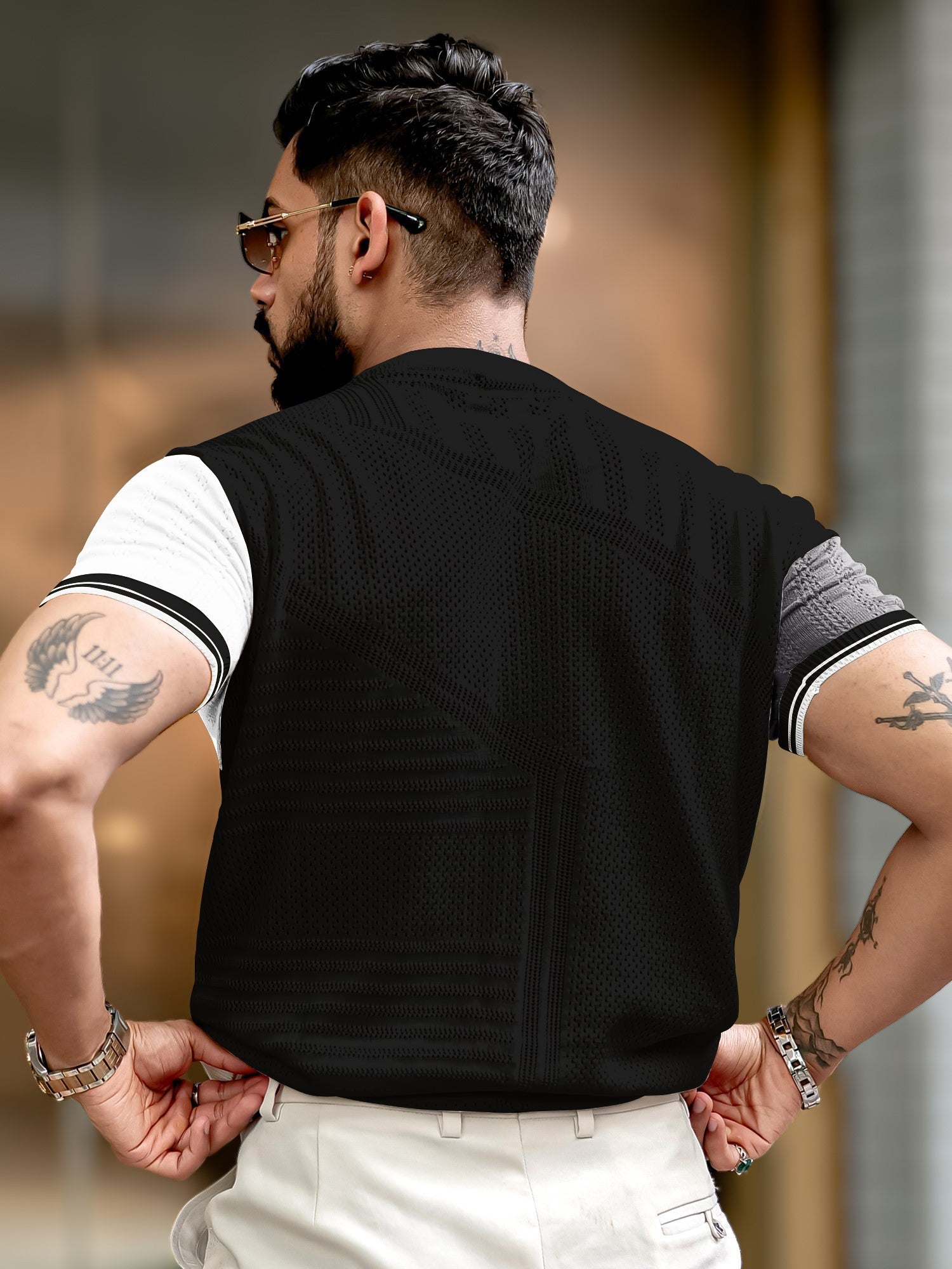 Sheernet FlatKnit Cotton Black Half Sleeve T-Shirt