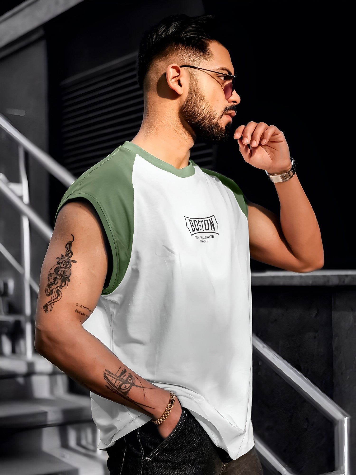 Boston White, Hunter Green Half Sleeve T-Shirt