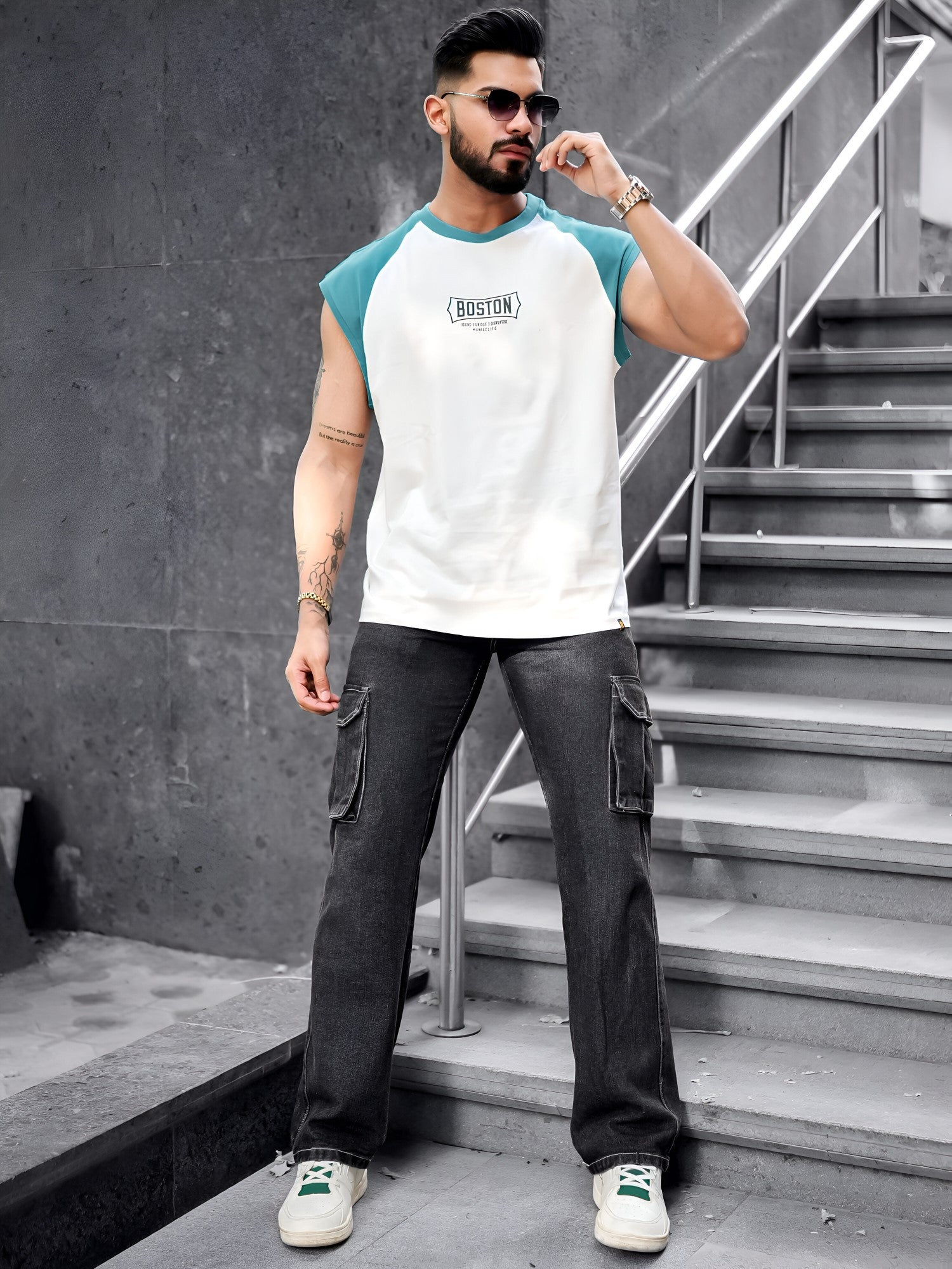 Boston White, Teal Blue Half Sleeve T-Shirt