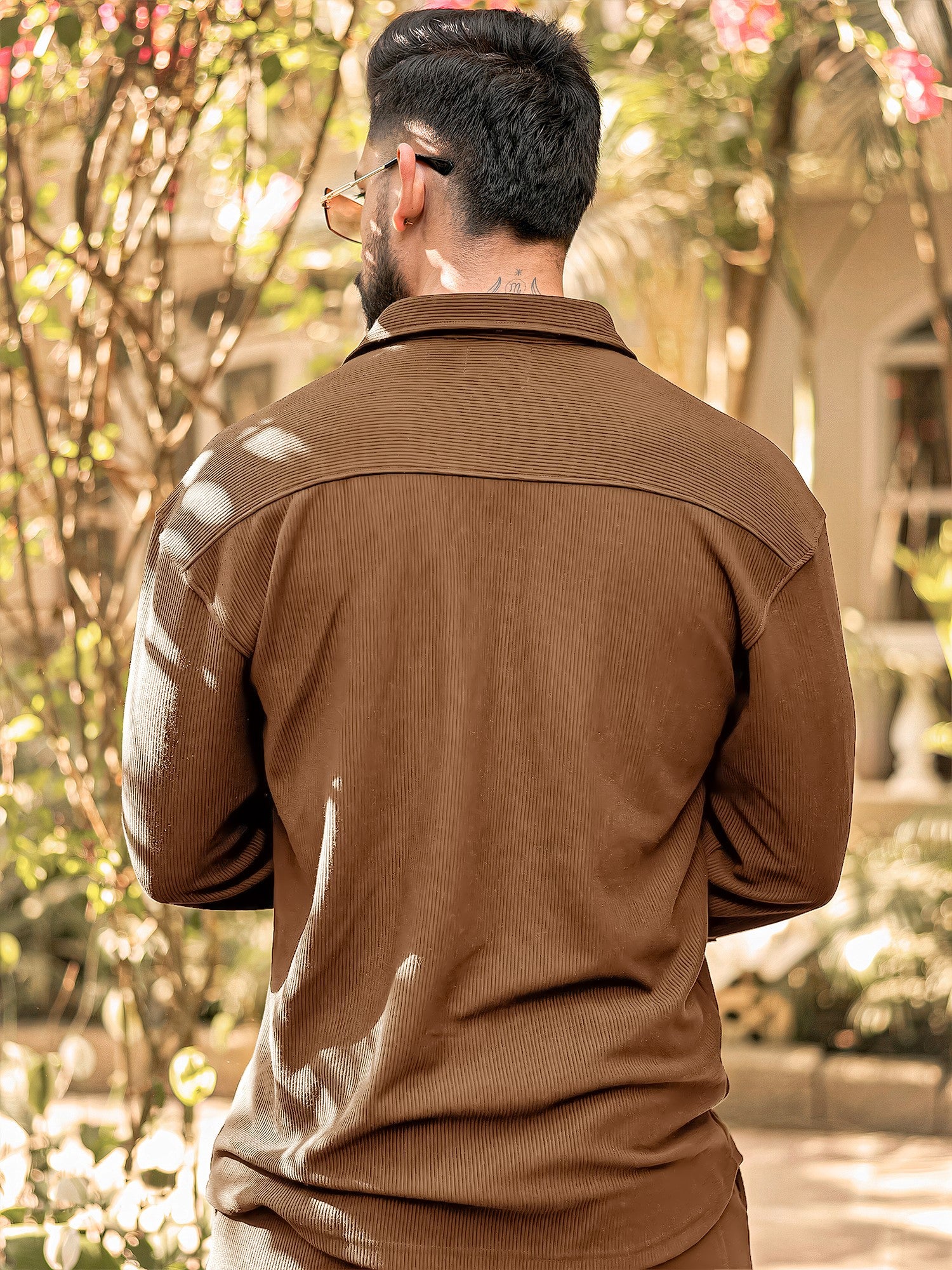 Cord Knit Textured Brown Double Pocket Co-Ords