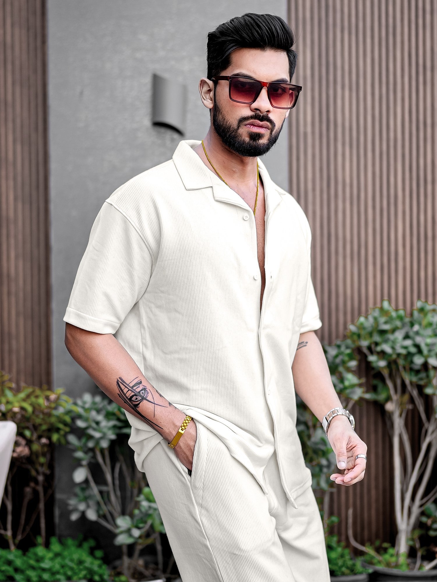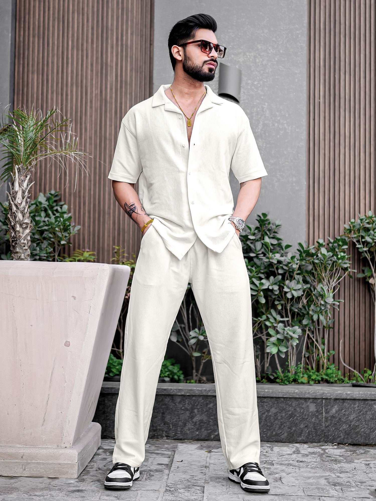 Faded Line Cord Knit Textured Cream White Co-Ords