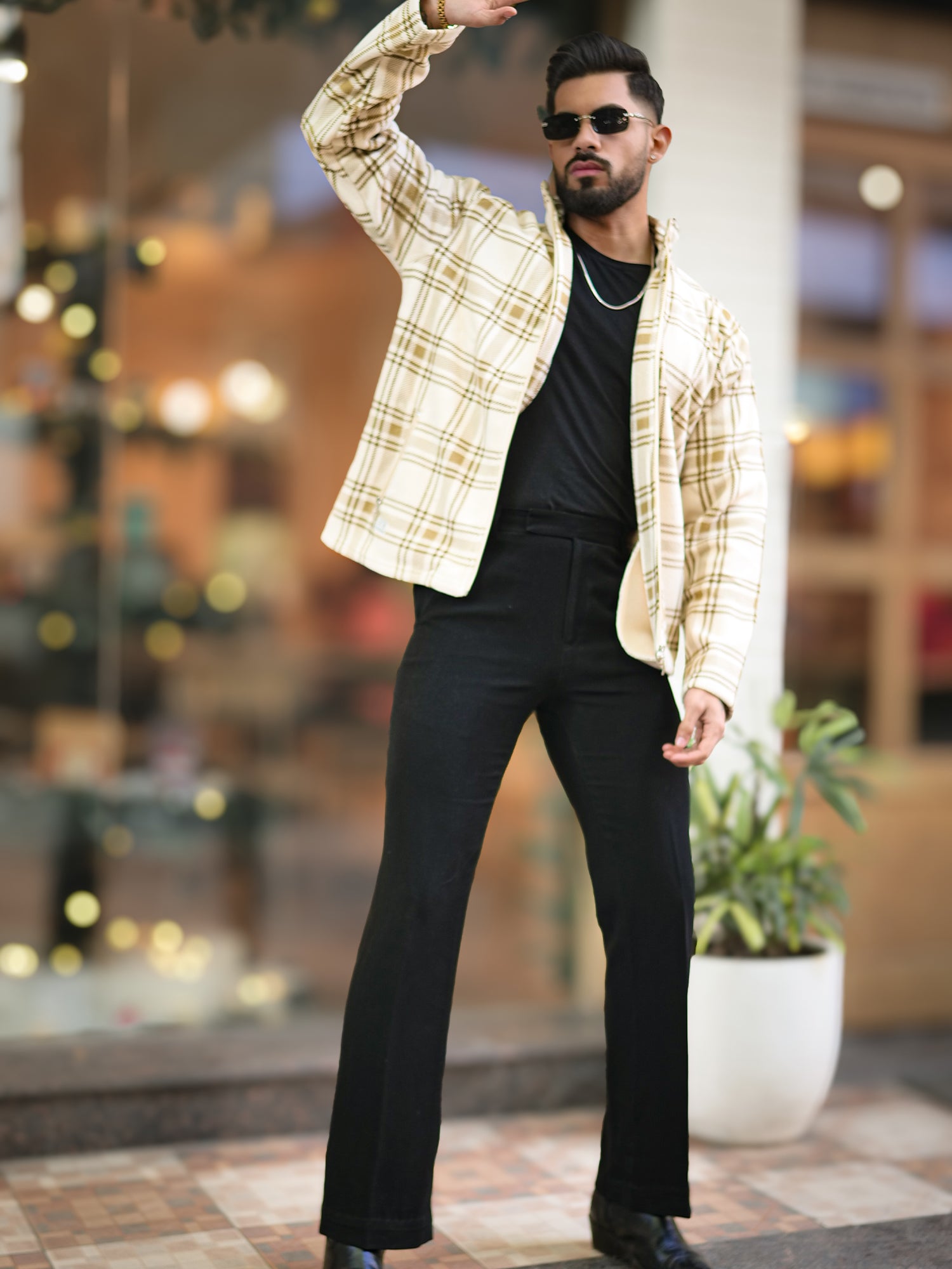 Checkered Biscuit Zipper Full Sleeve Shacket