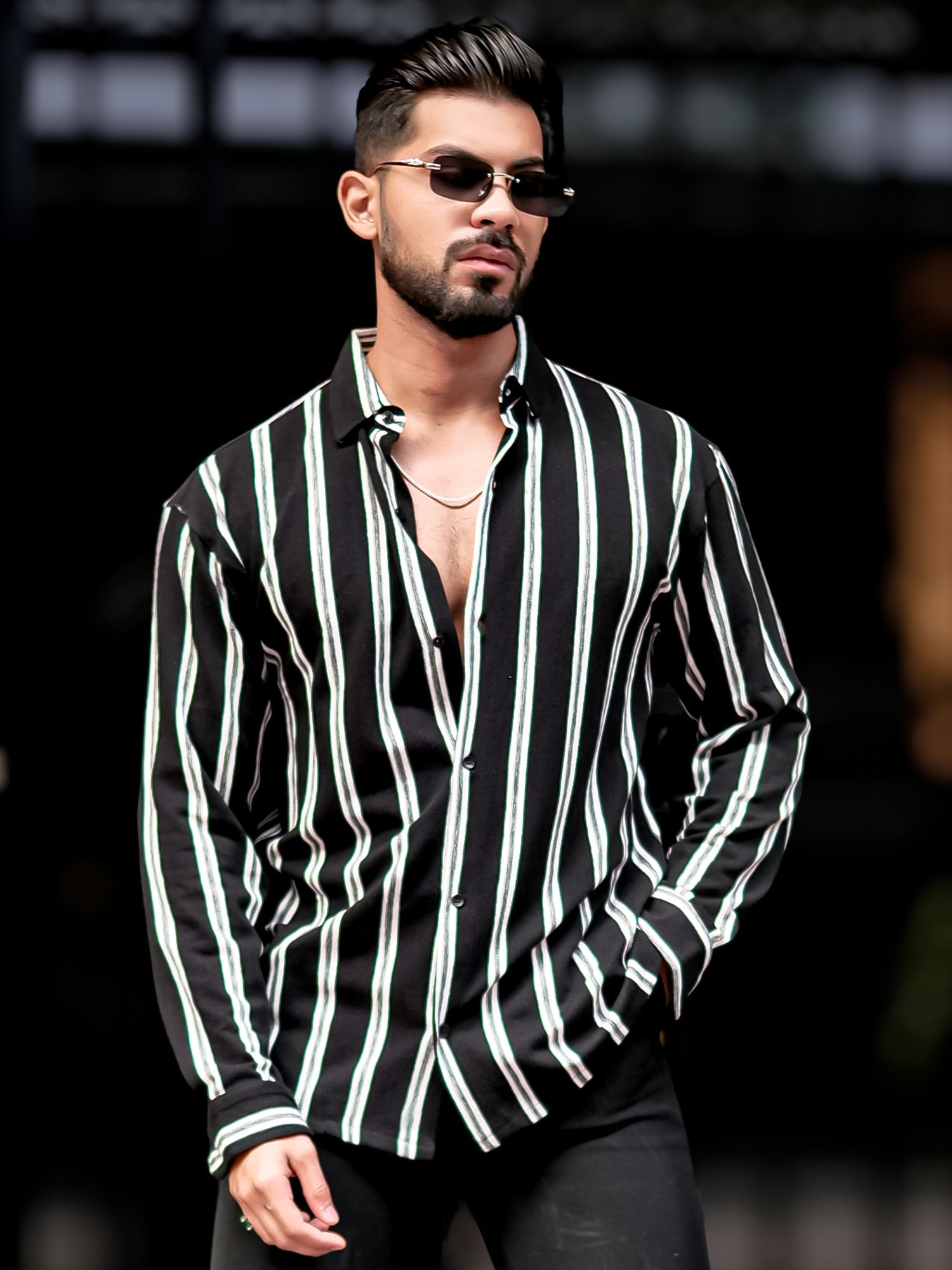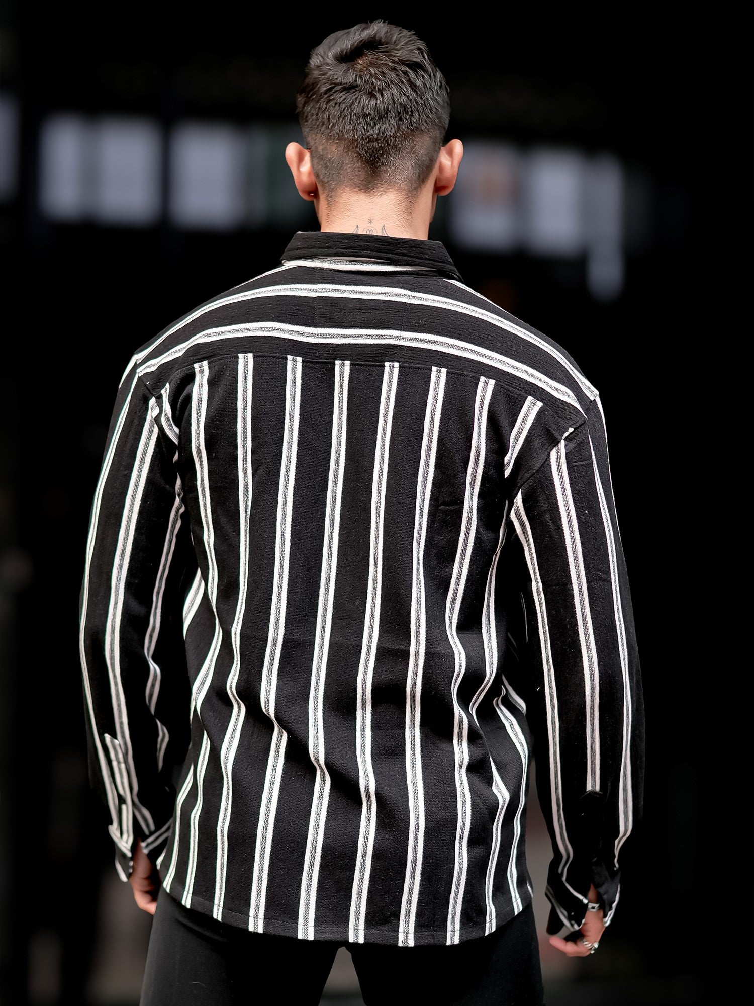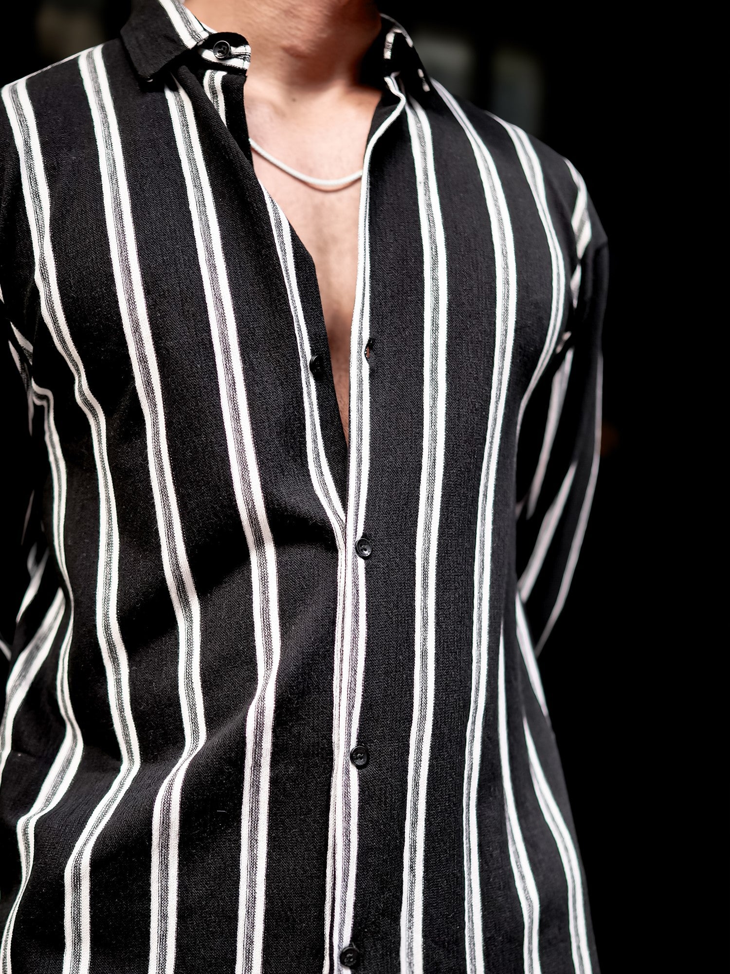 Terry Vertical Stripes Black Full Sleeve Shirt