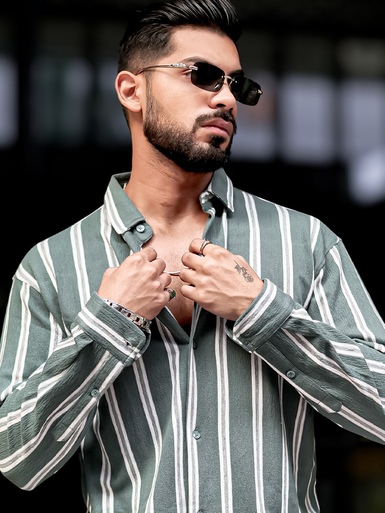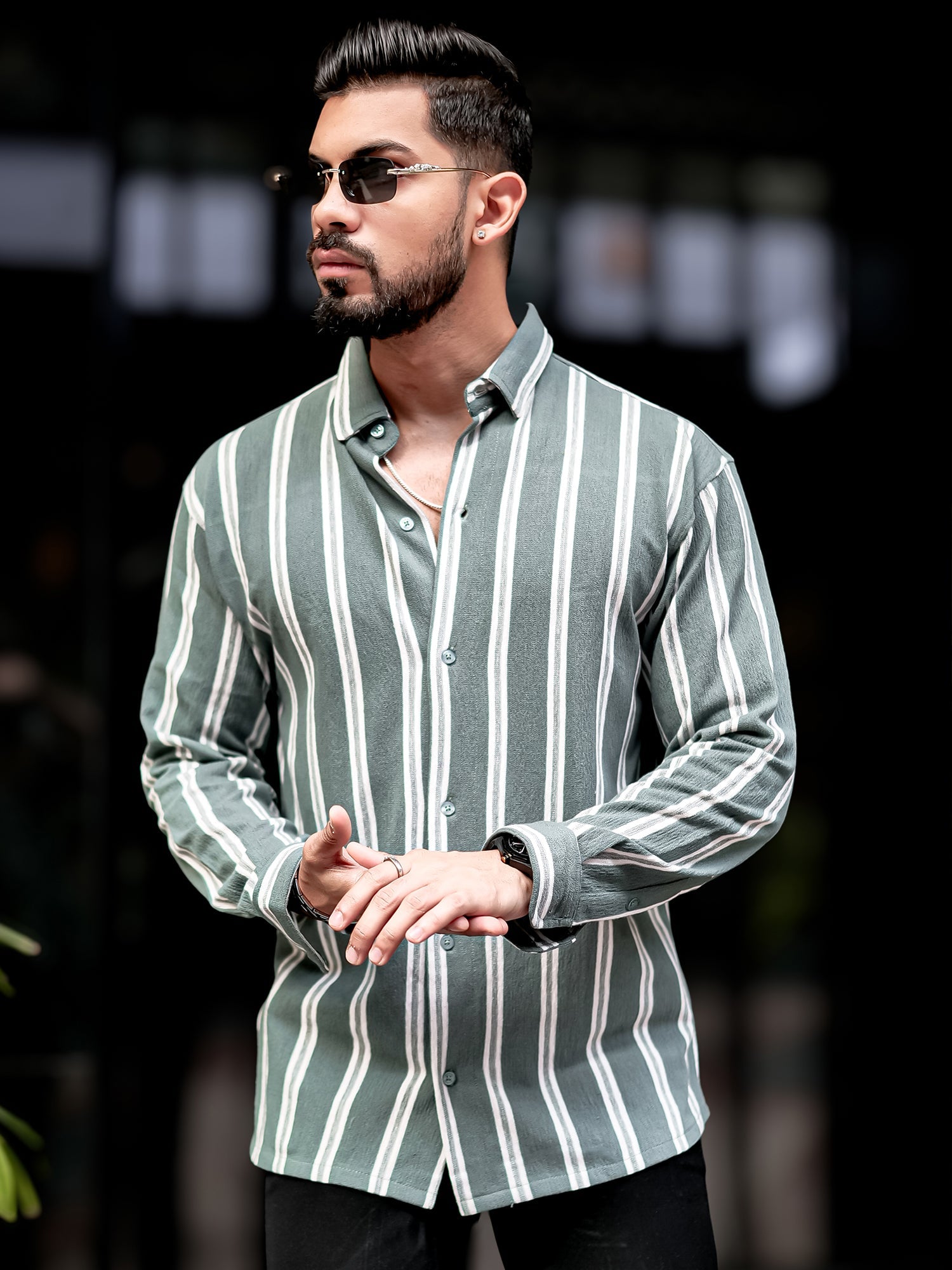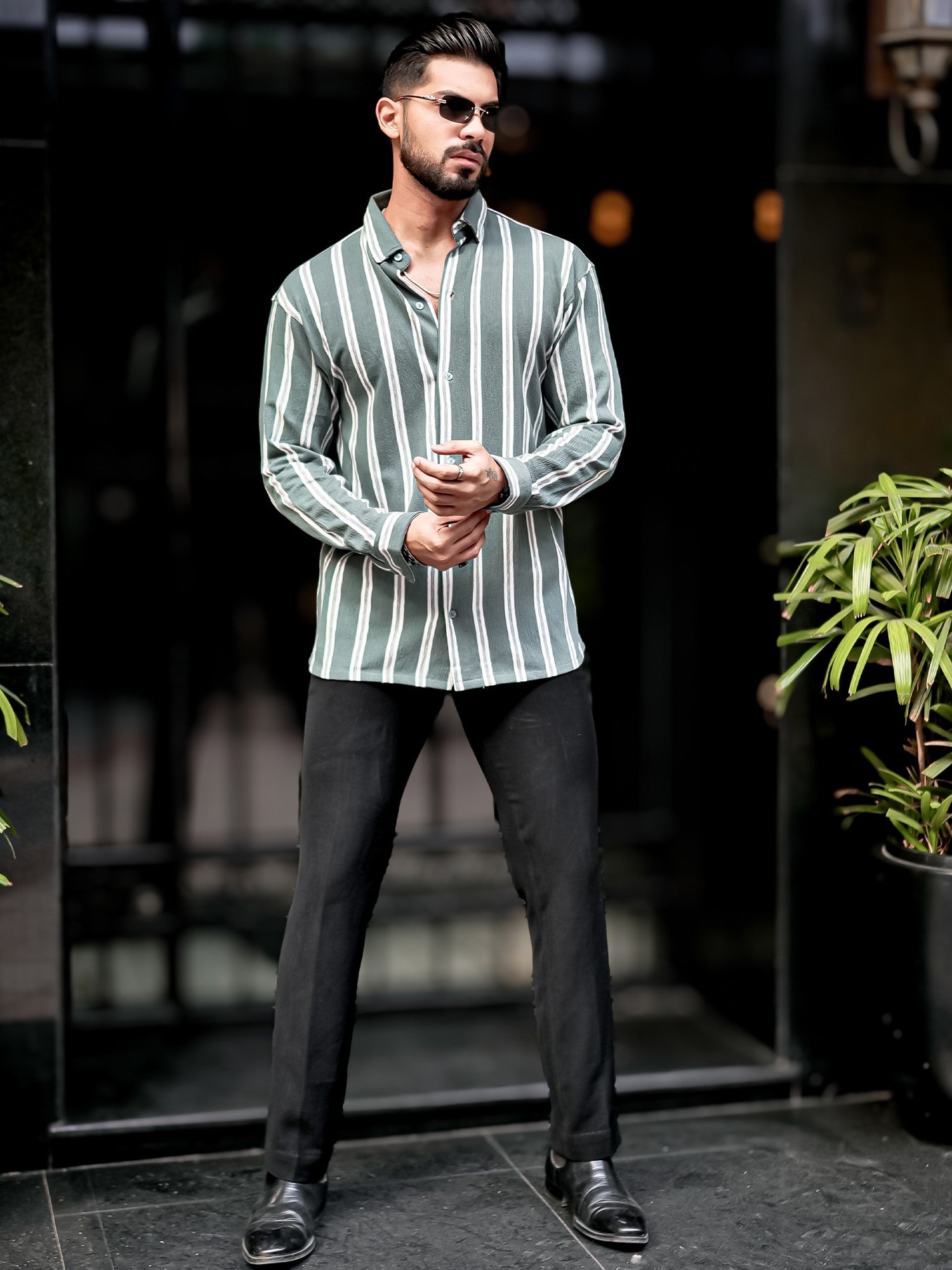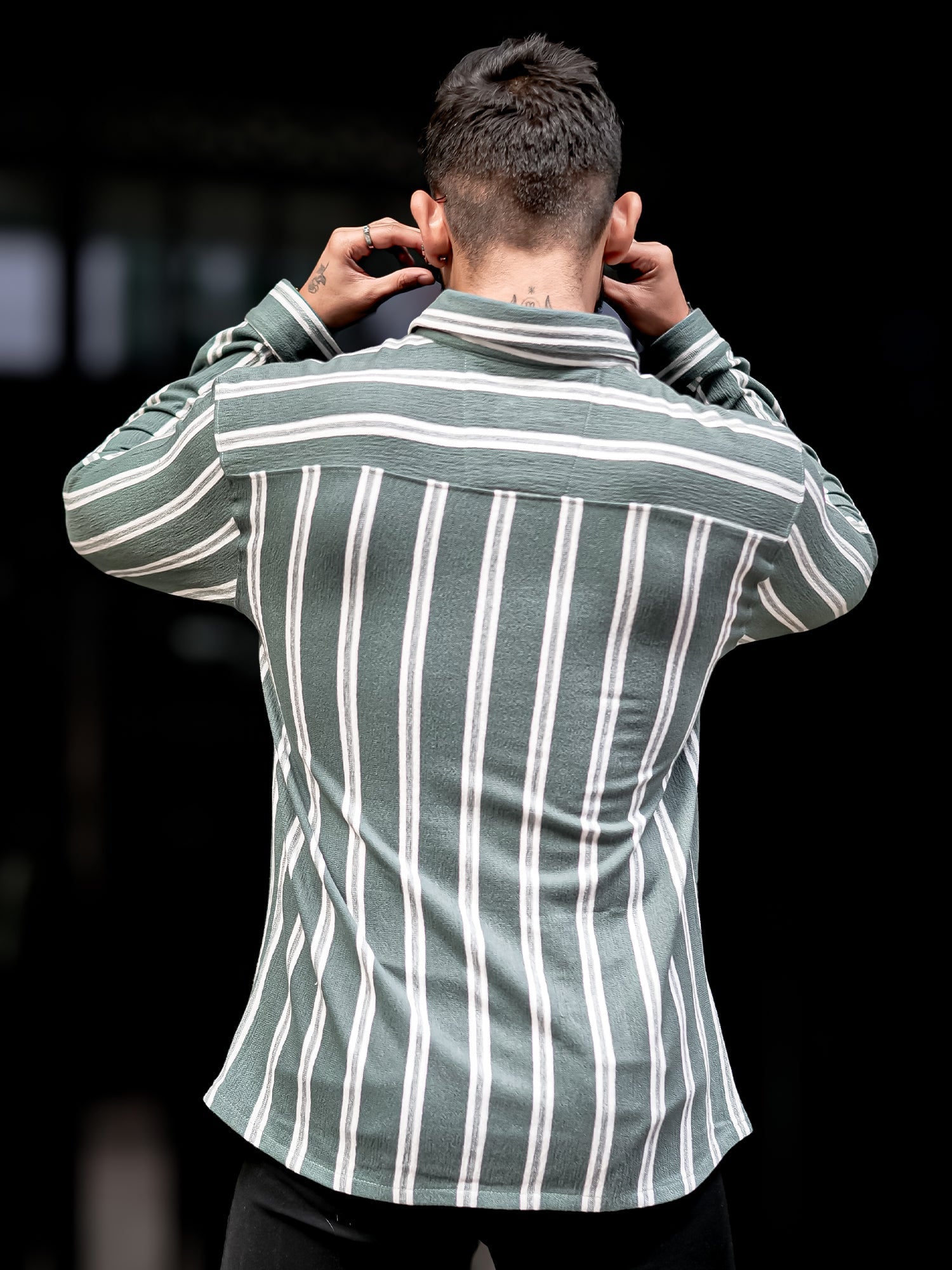 Terry Vertical Stripes Green Full Sleeve Shirt