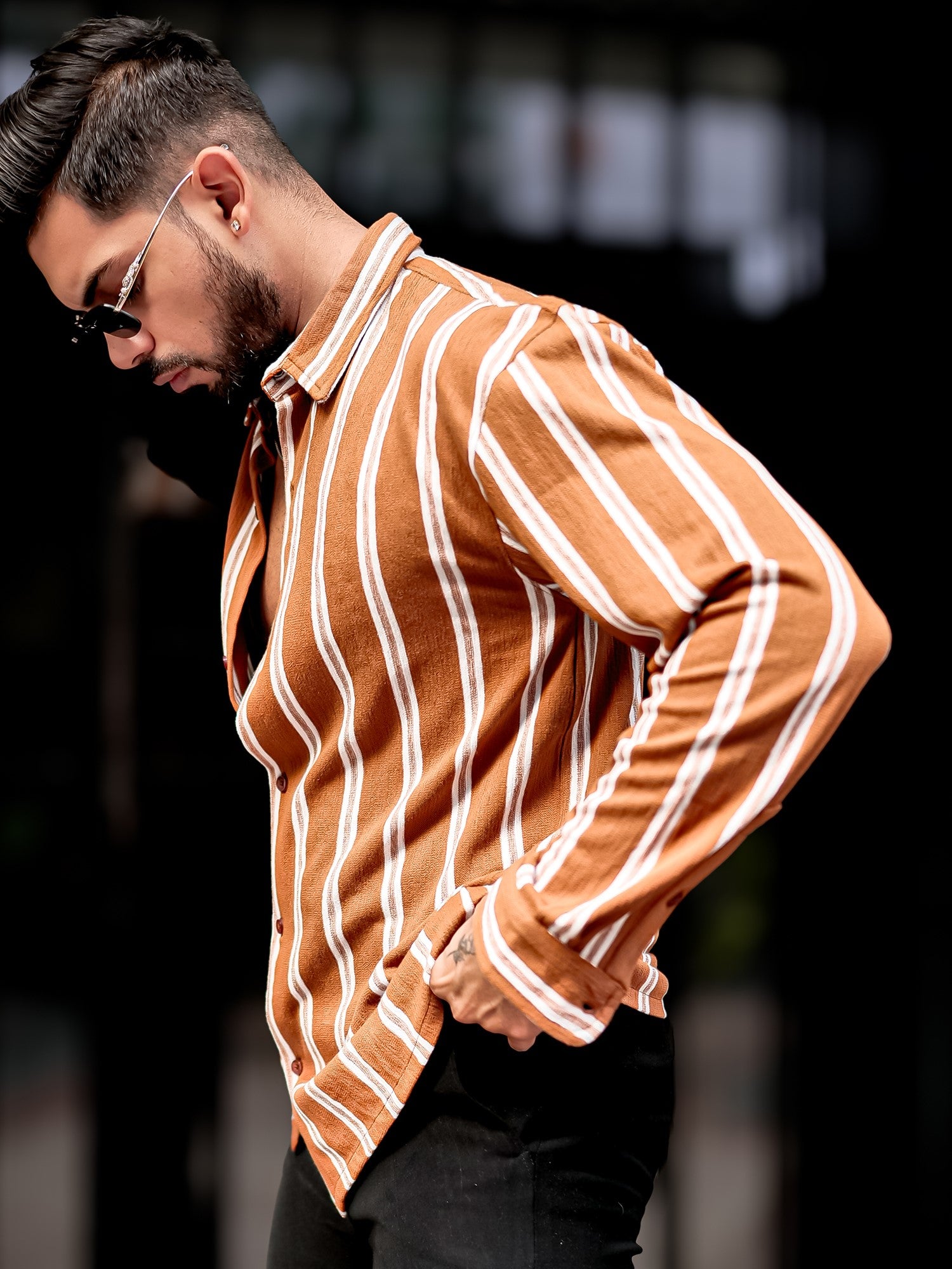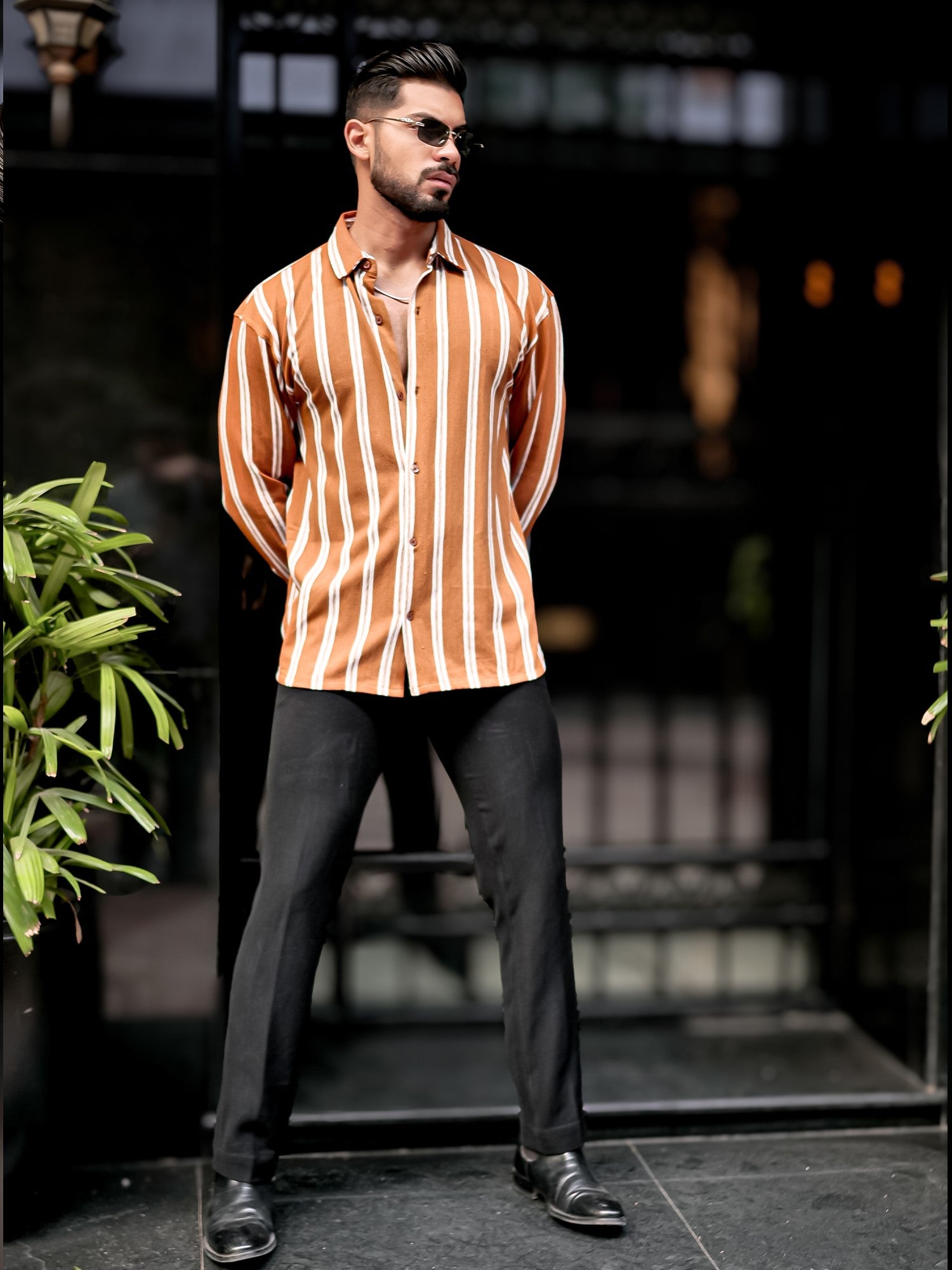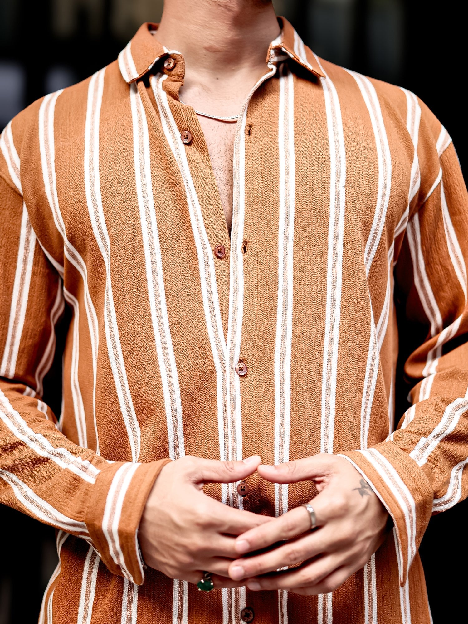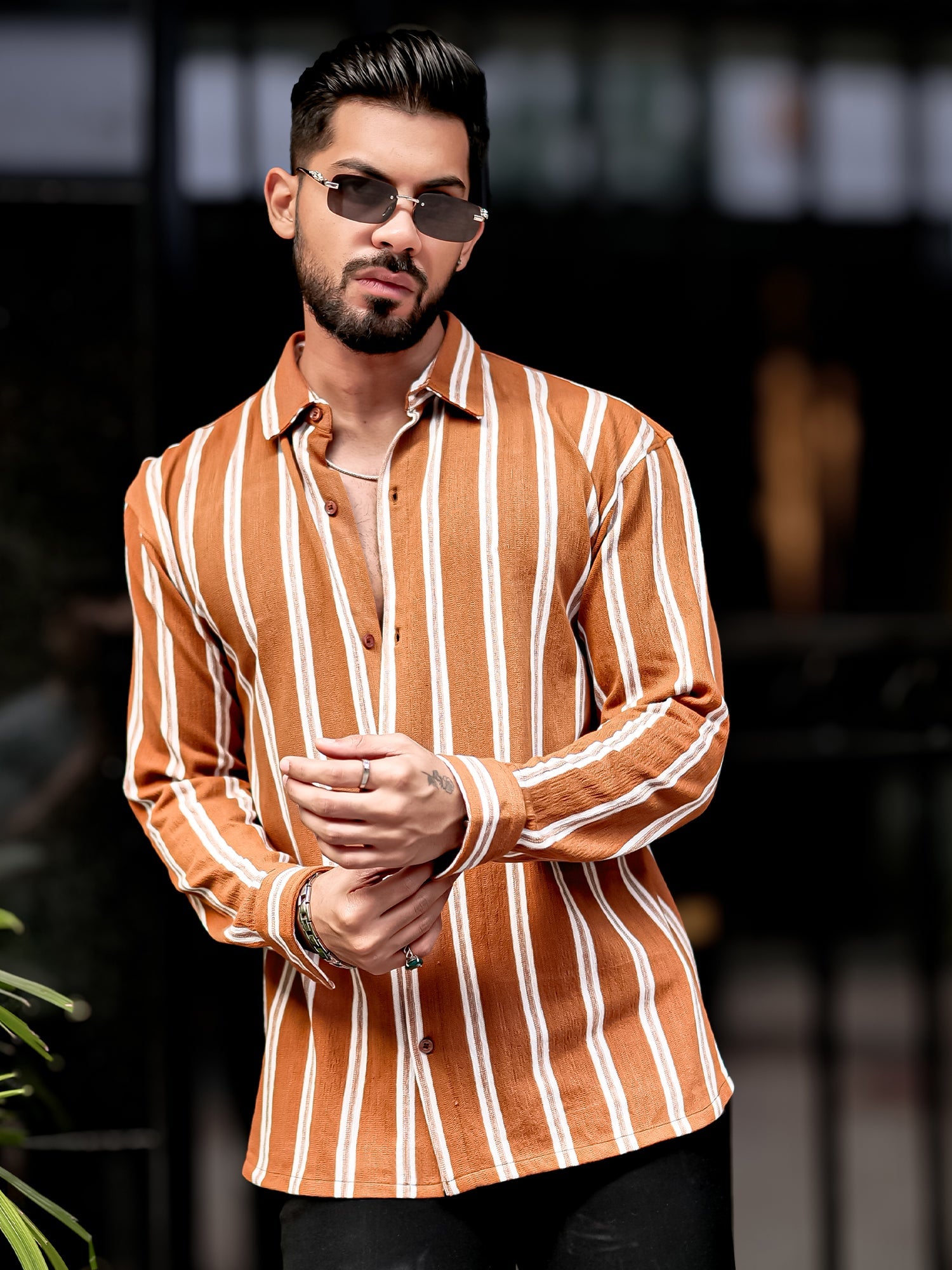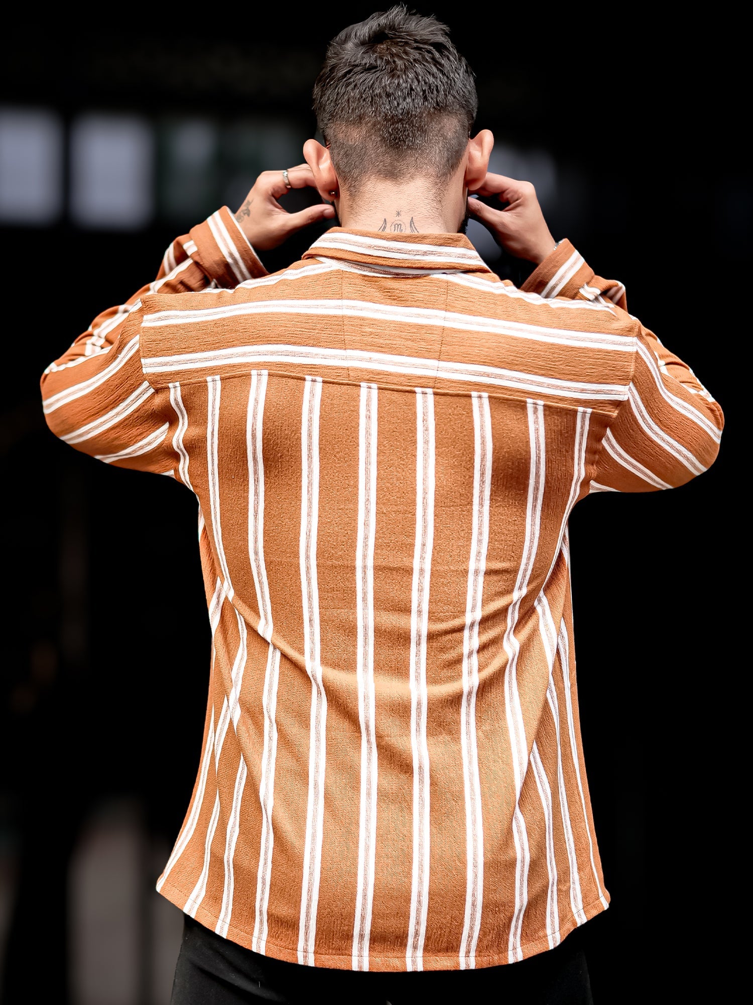 Terry Vertical Stripes Rust Full Sleeve Shirt
