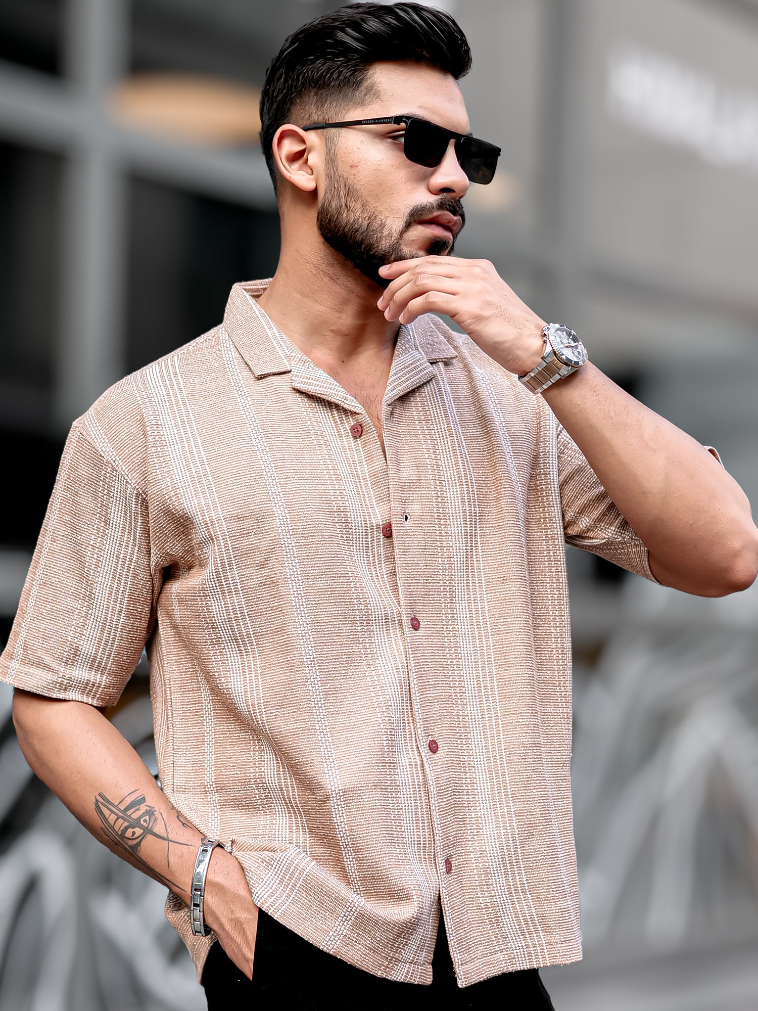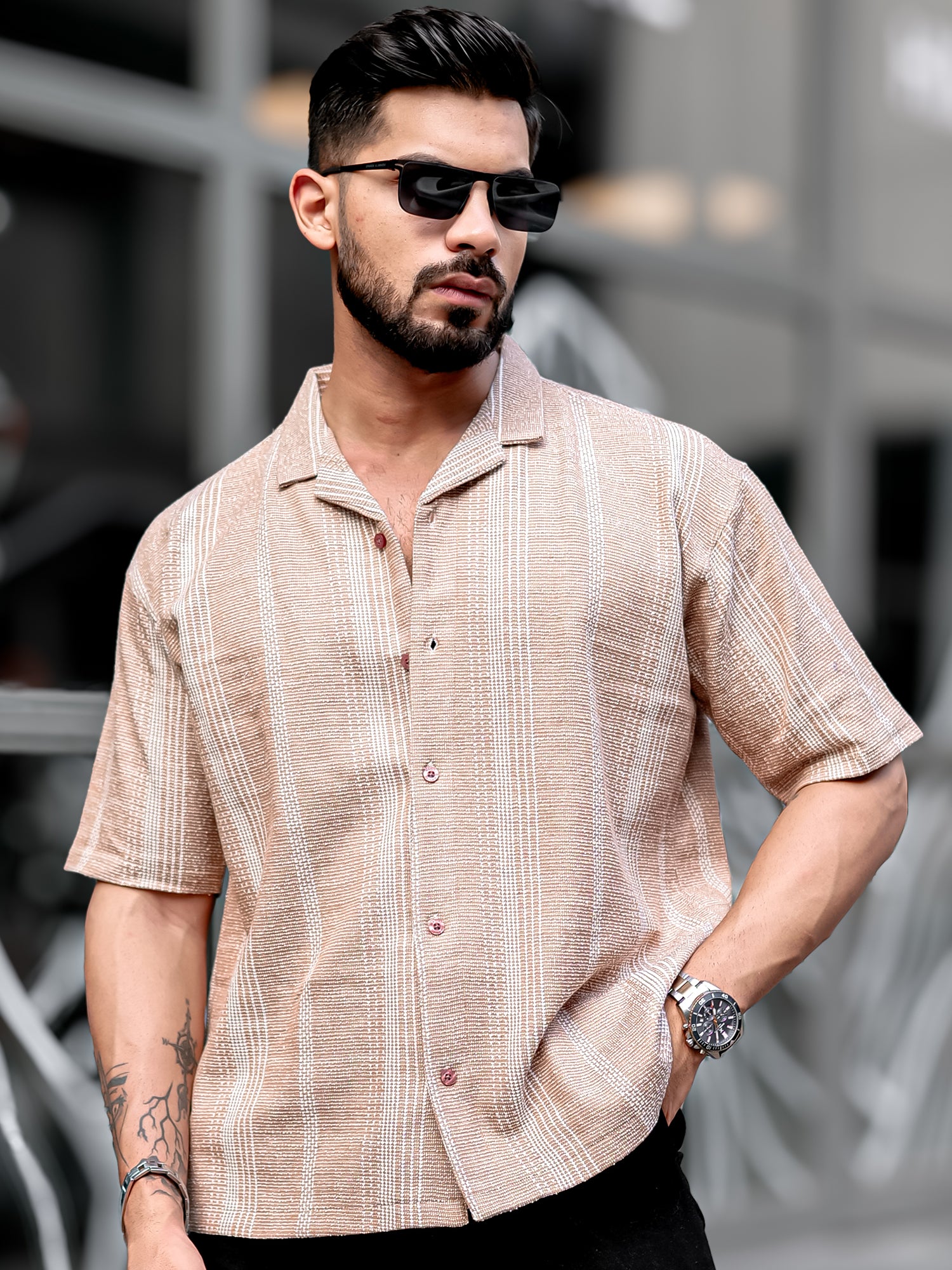 Ternary Line Stripe Beige Shirt