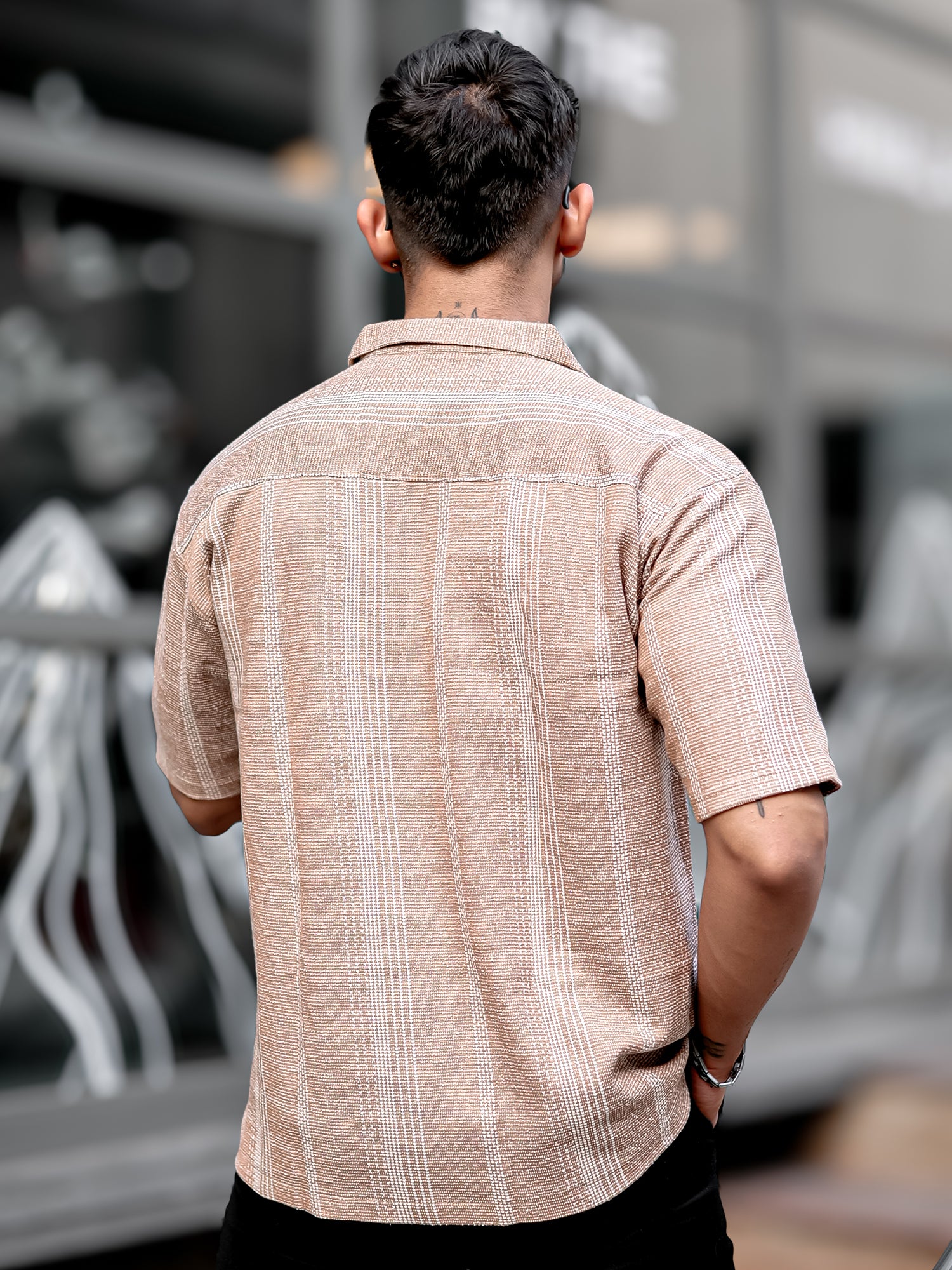 Ternary Line Stripe Beige Half Sleeve Shirt