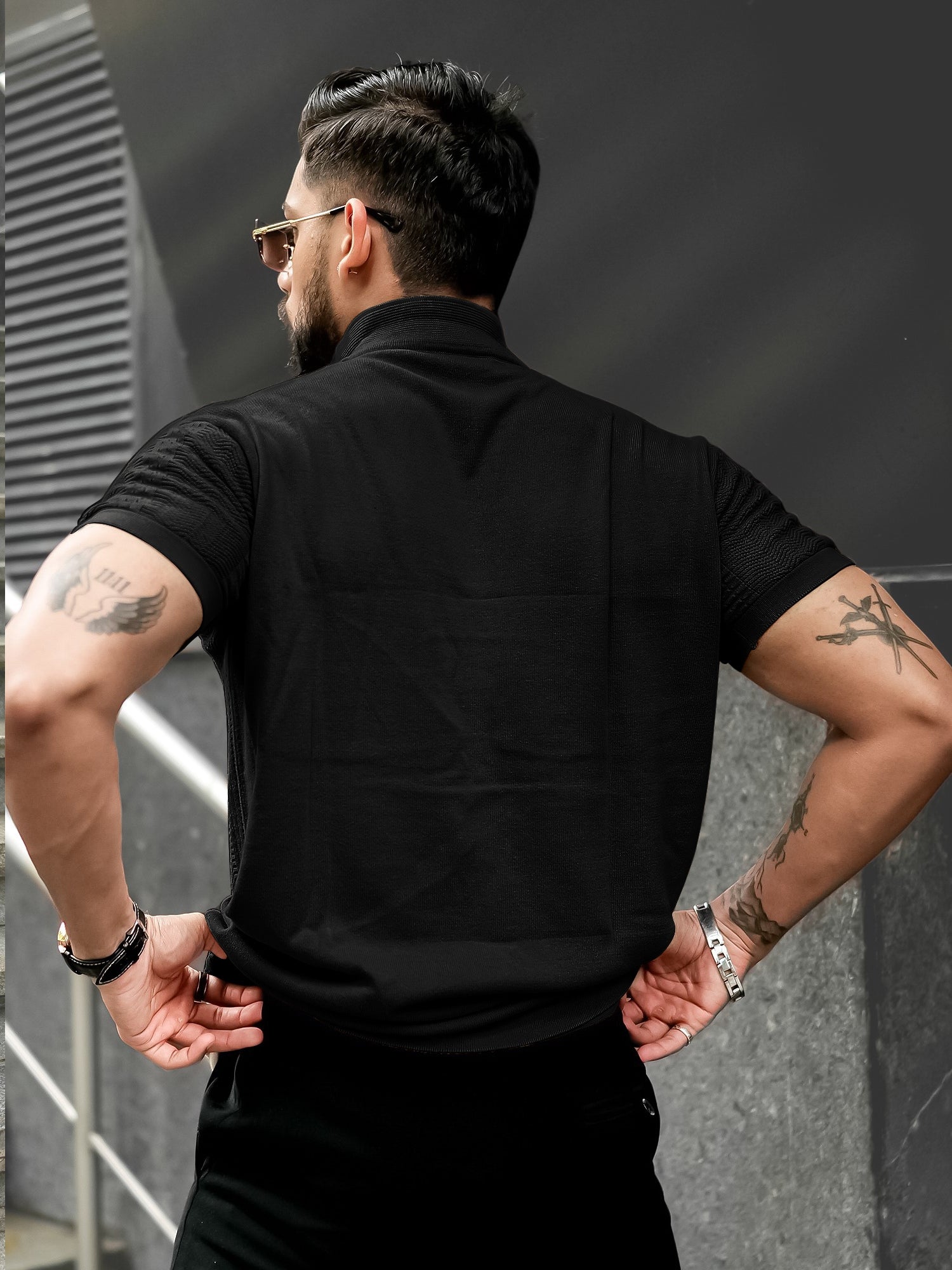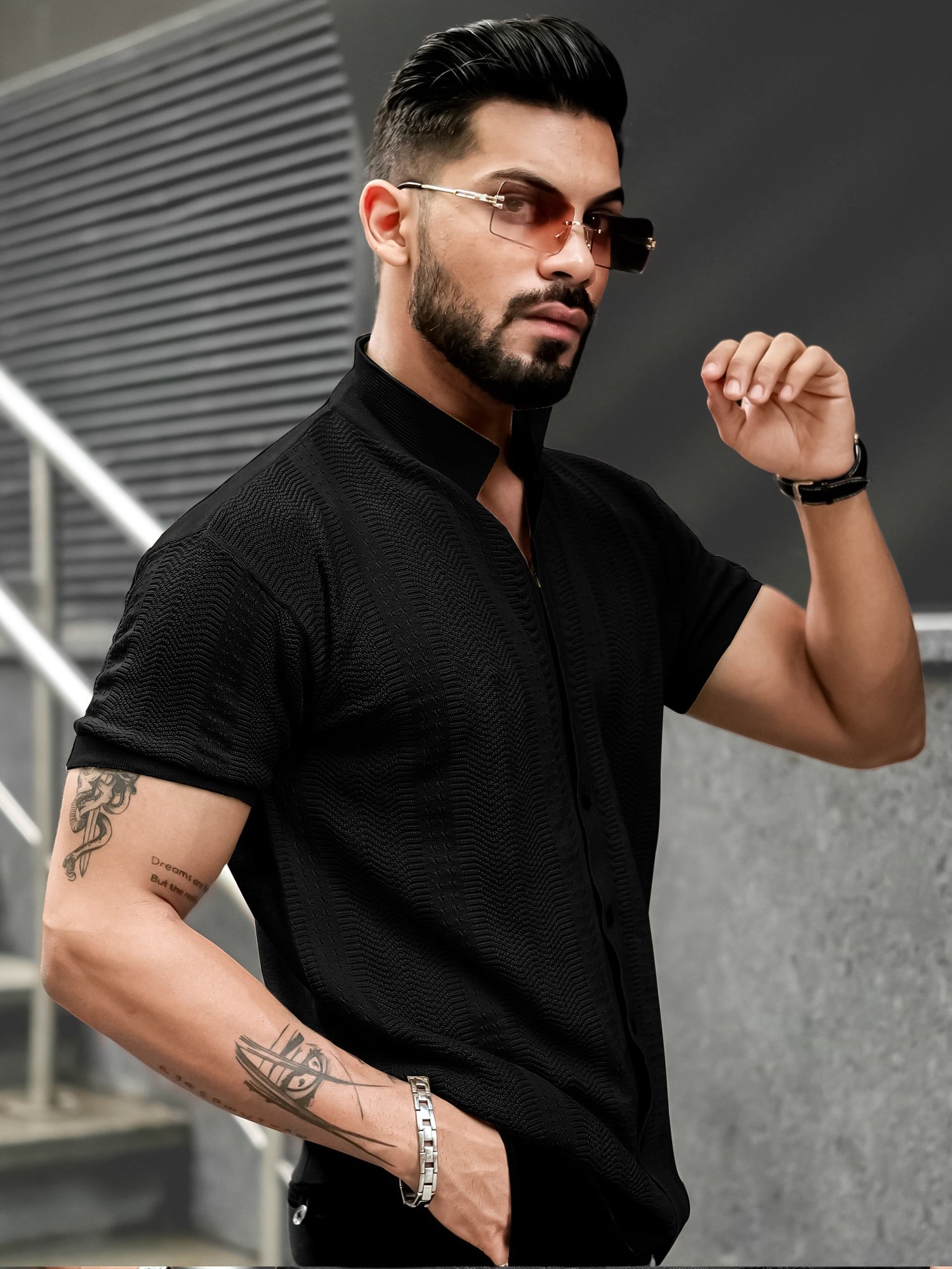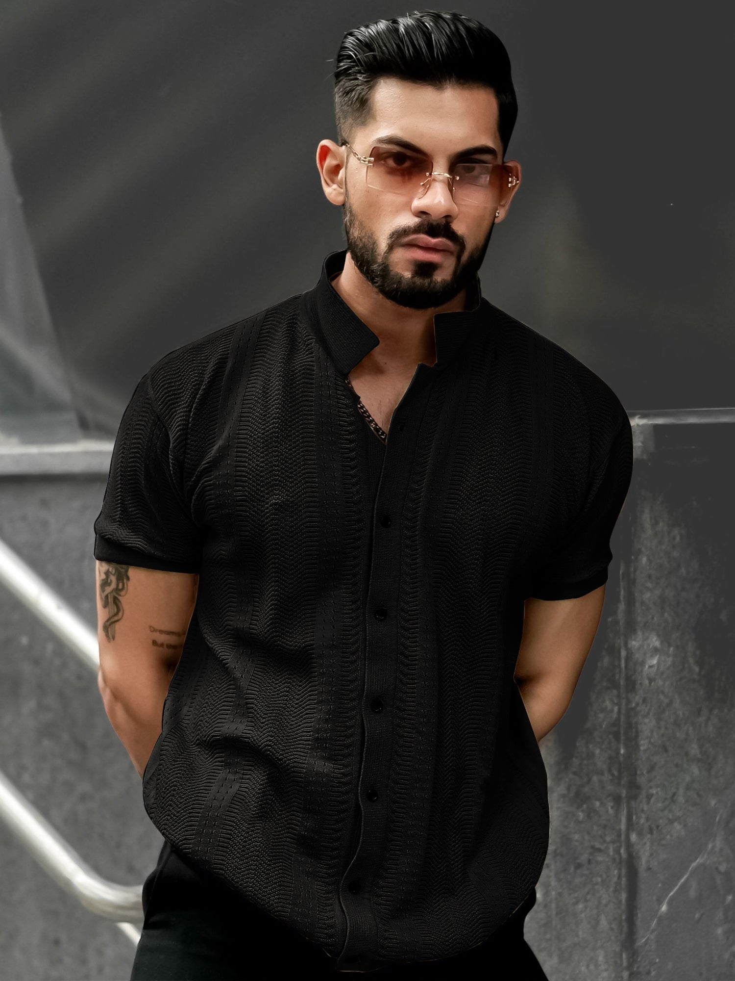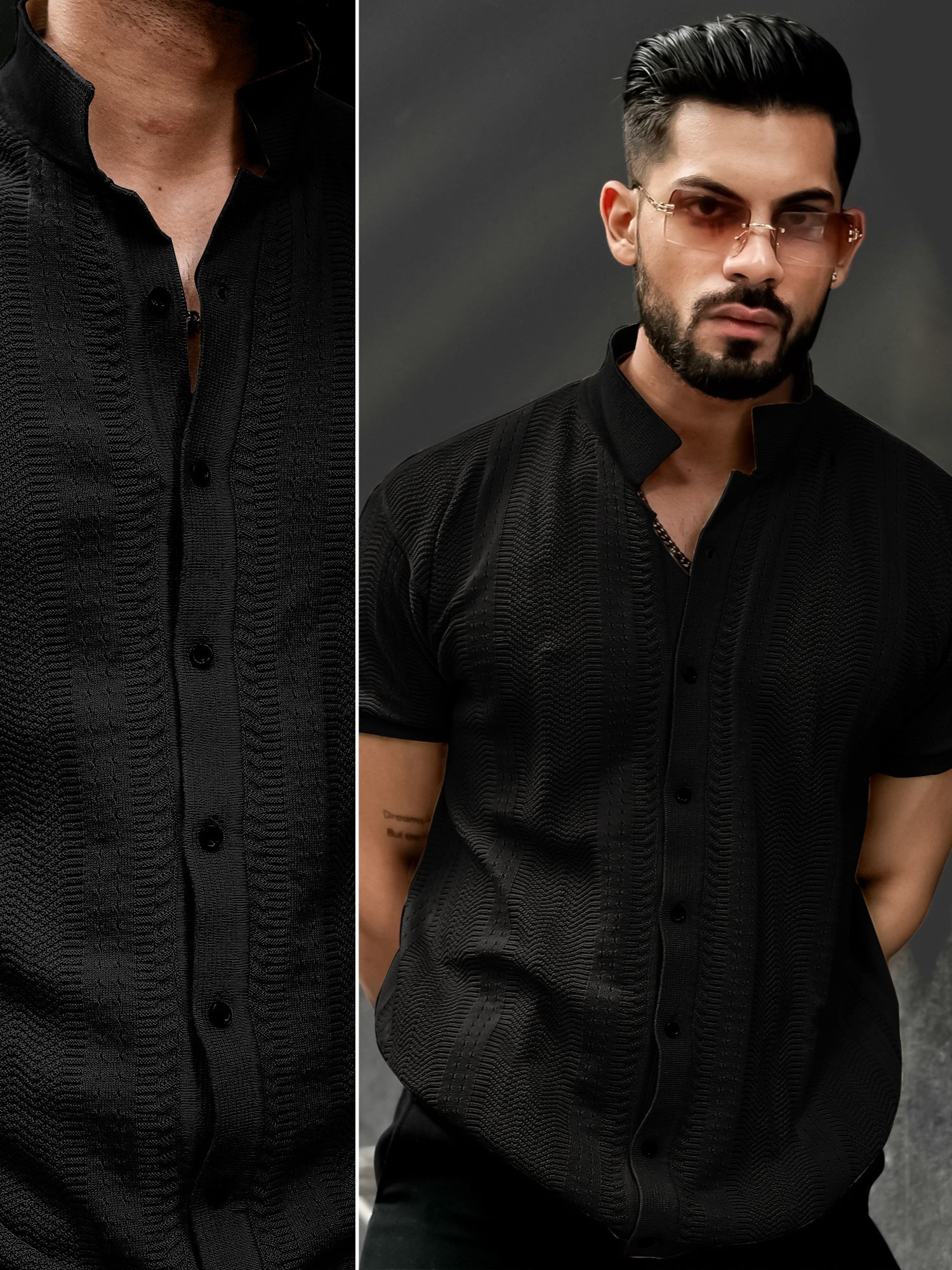 Ribbed FlatKnit Black Half Sleeve Shirt