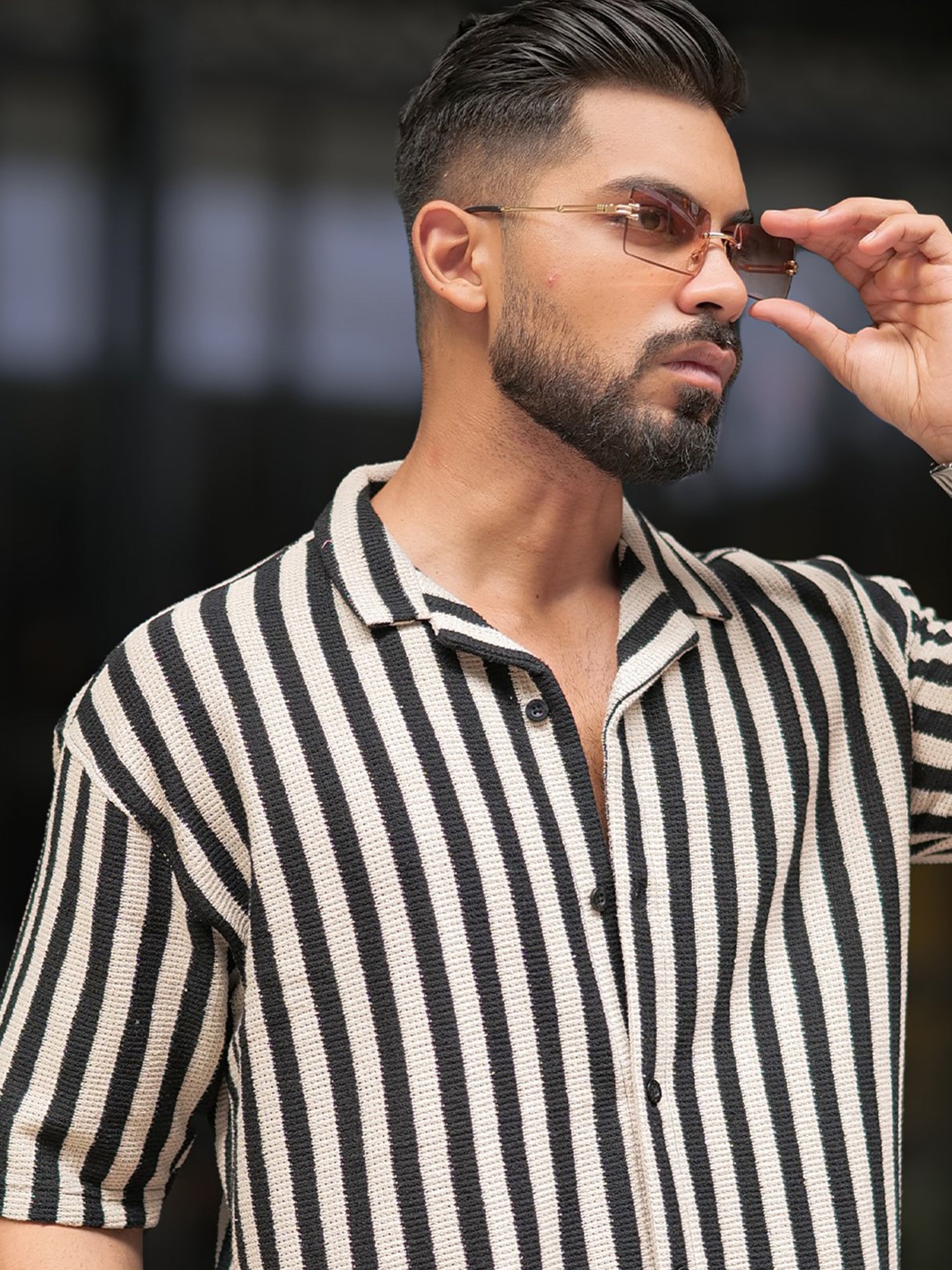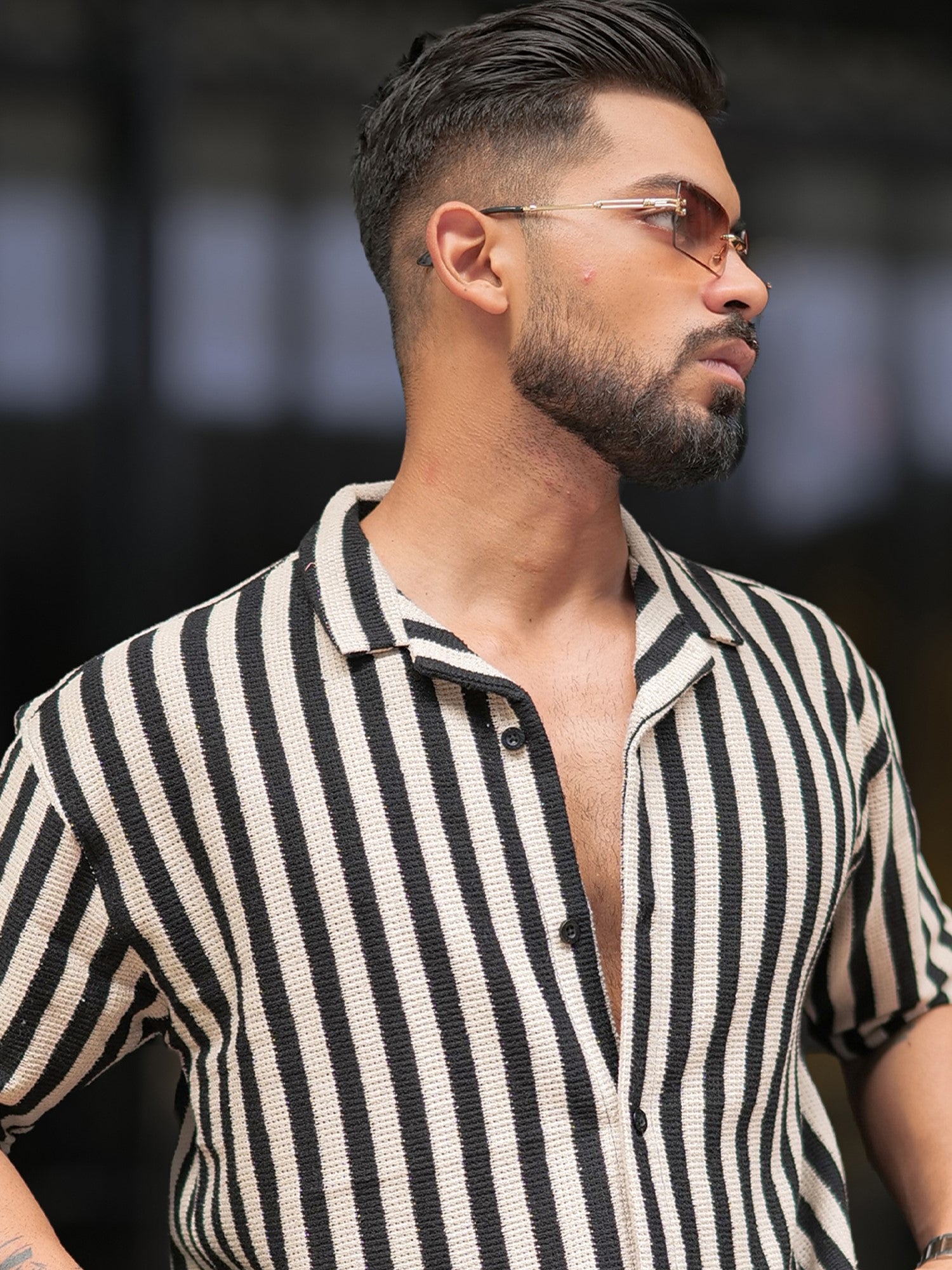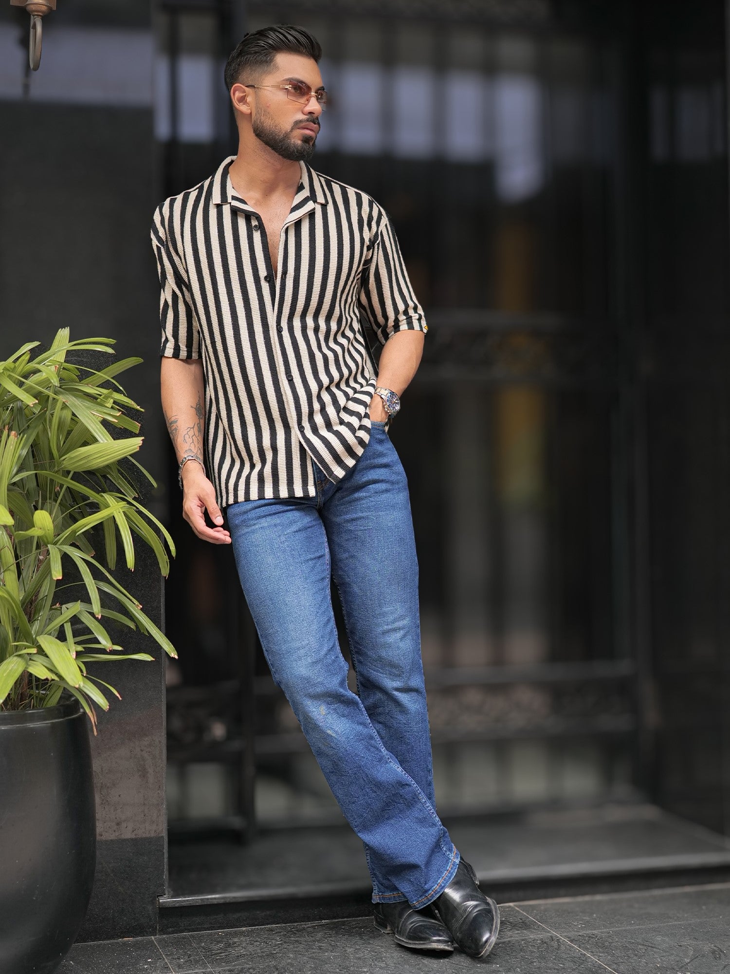 Waffle Flatknit Cotton Silver Grey Half Sleeve Shirt