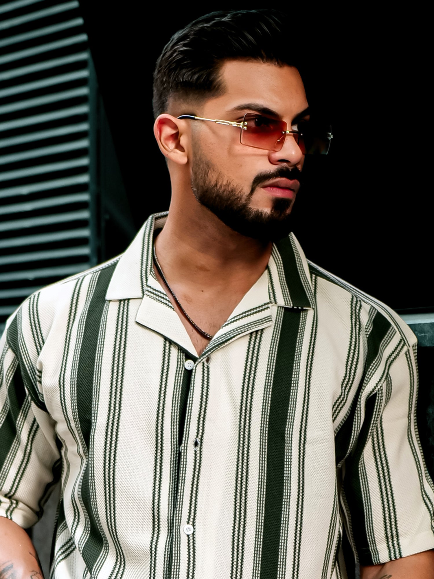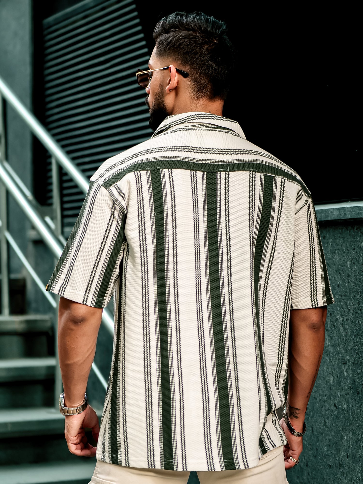 Barcode Stripe Bottle Green Half Sleeve Shirt
