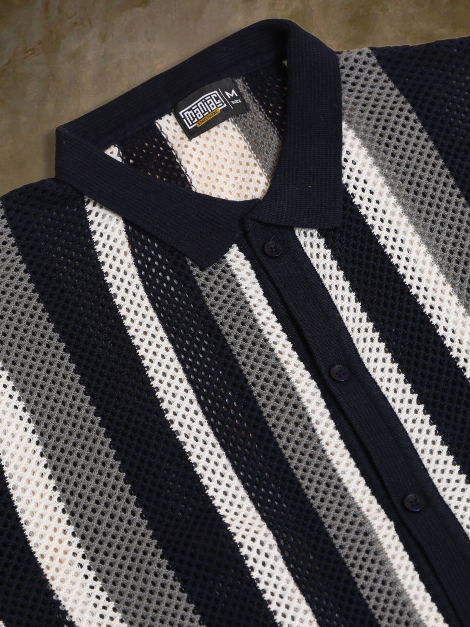 Aero Vertical Stripe Navy Half Sleeve Shirt
