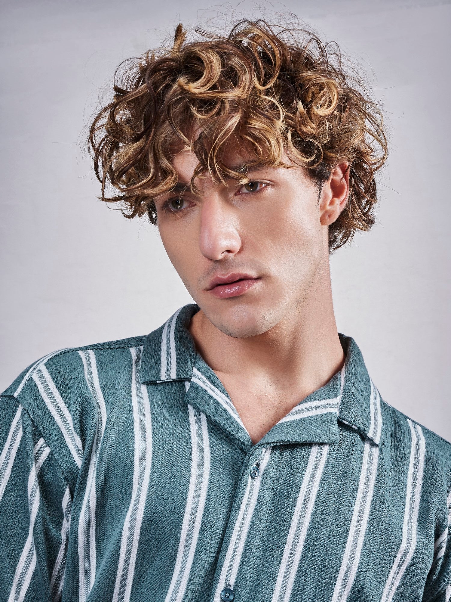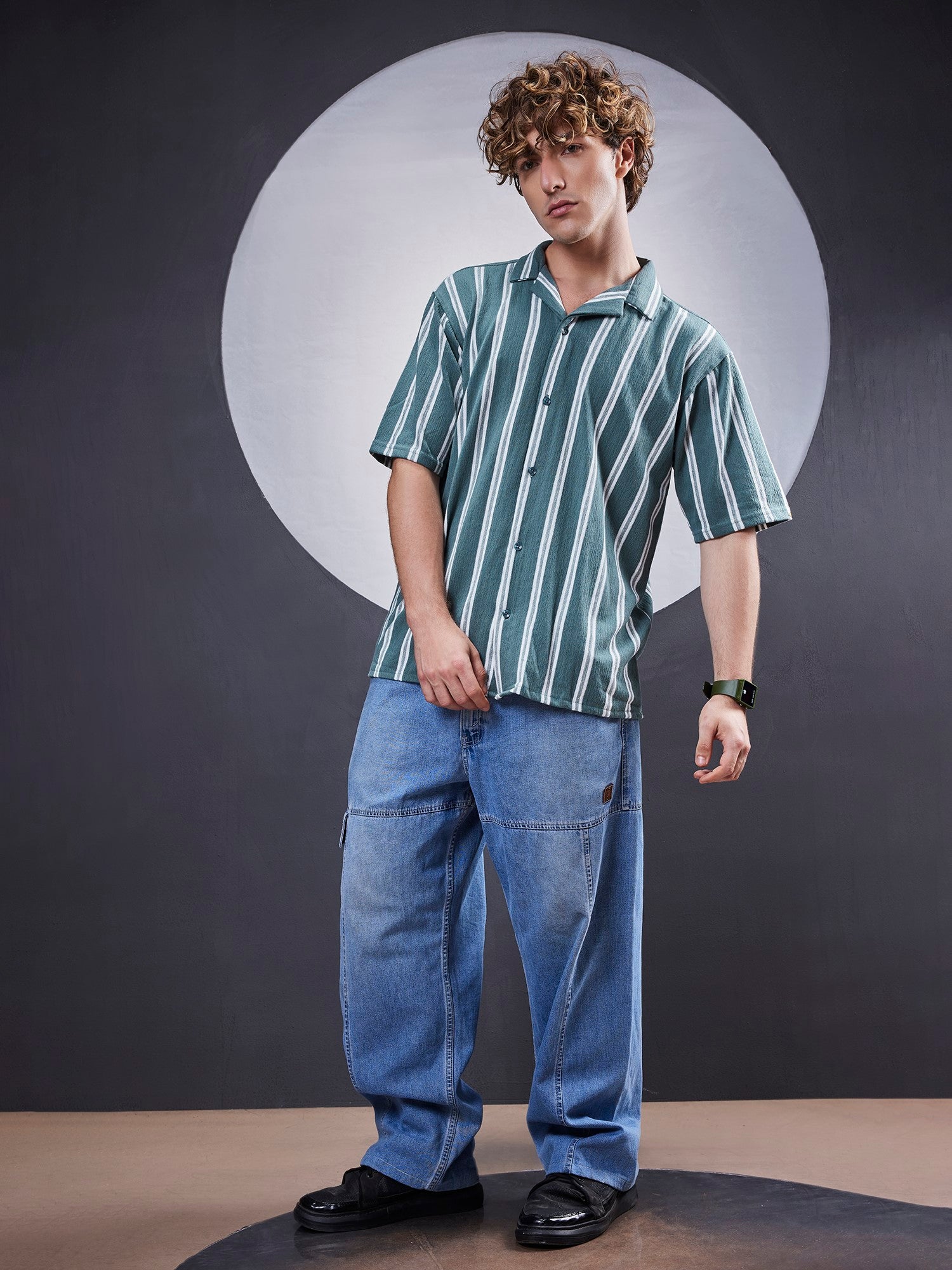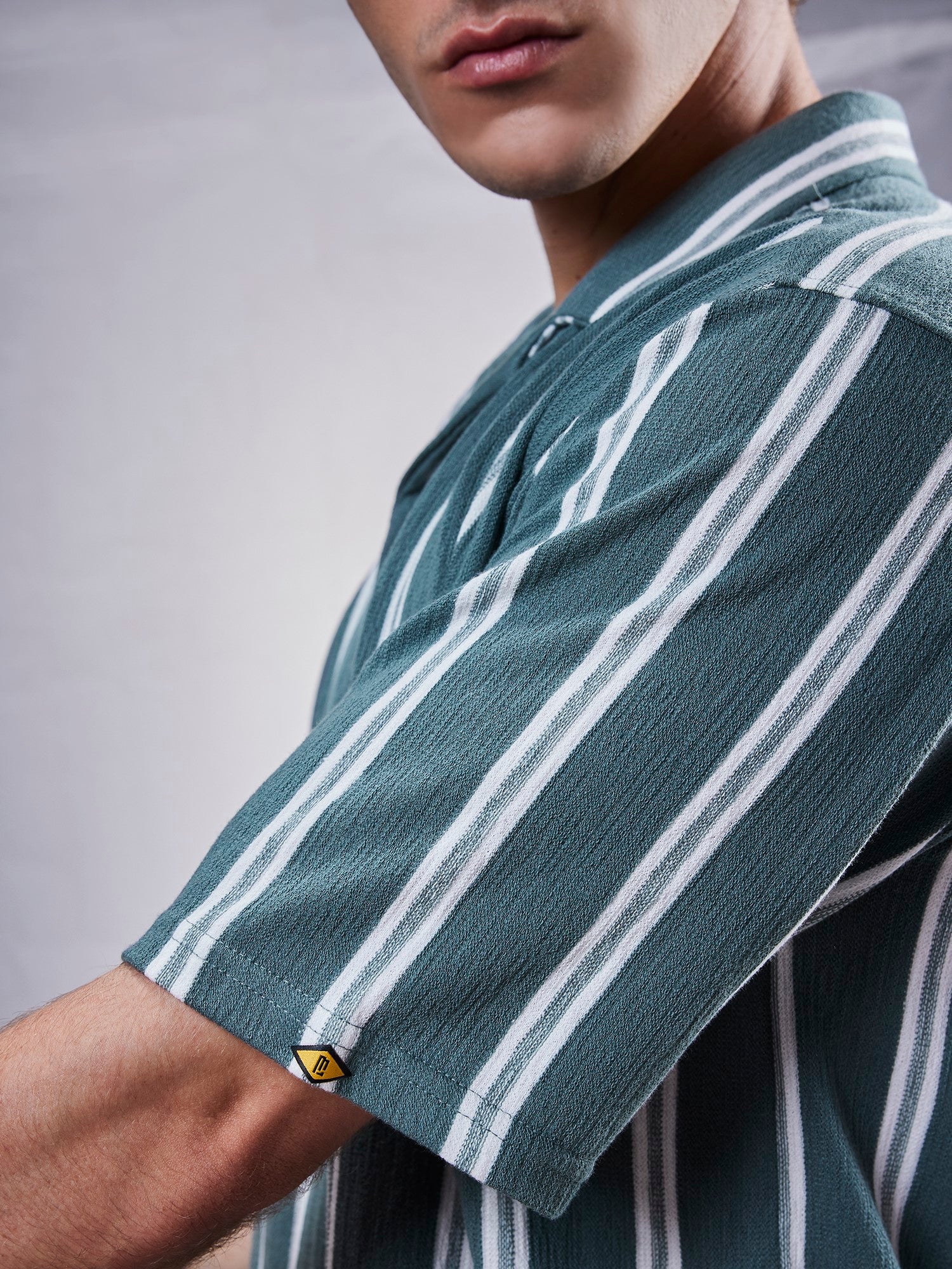 Terry Vertical Stripes Green Half Sleeve Shirt