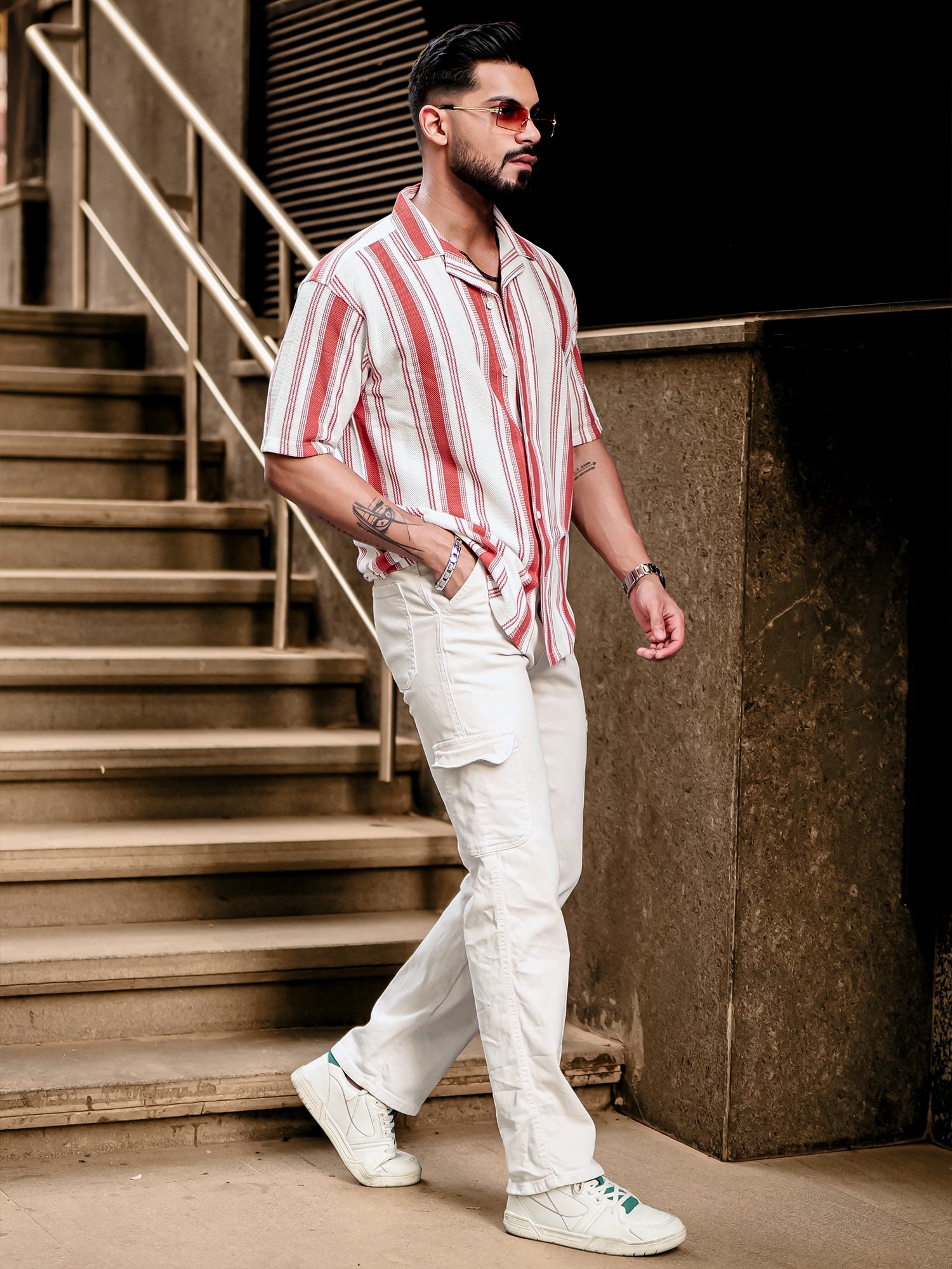 BARCODE STRIPE RUST Half Sleeve Shirt