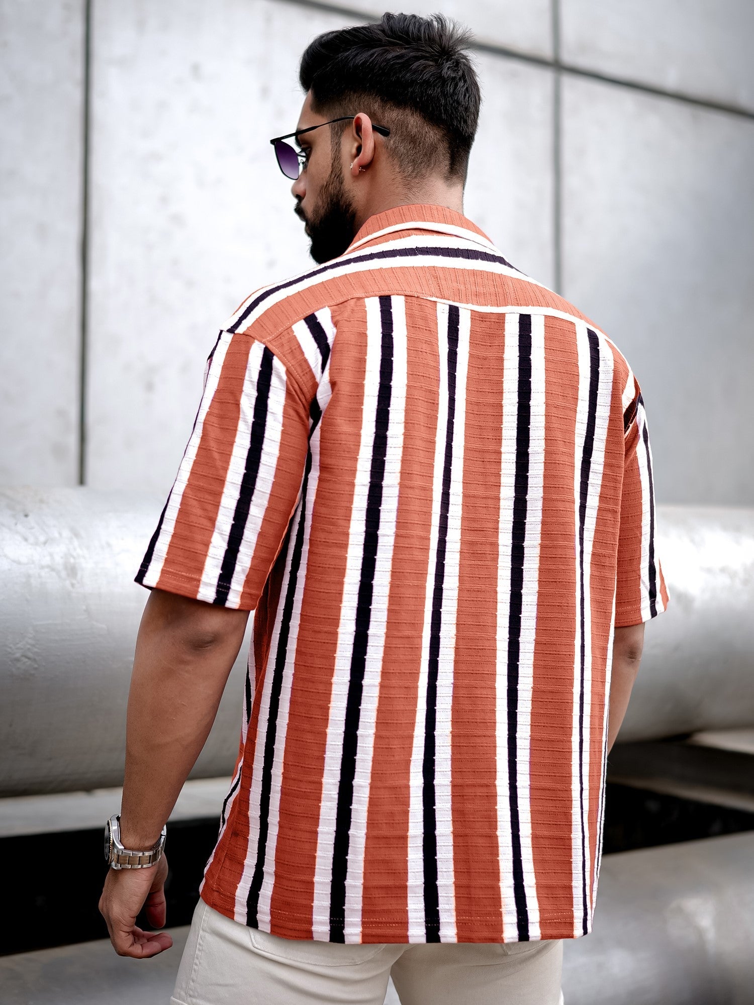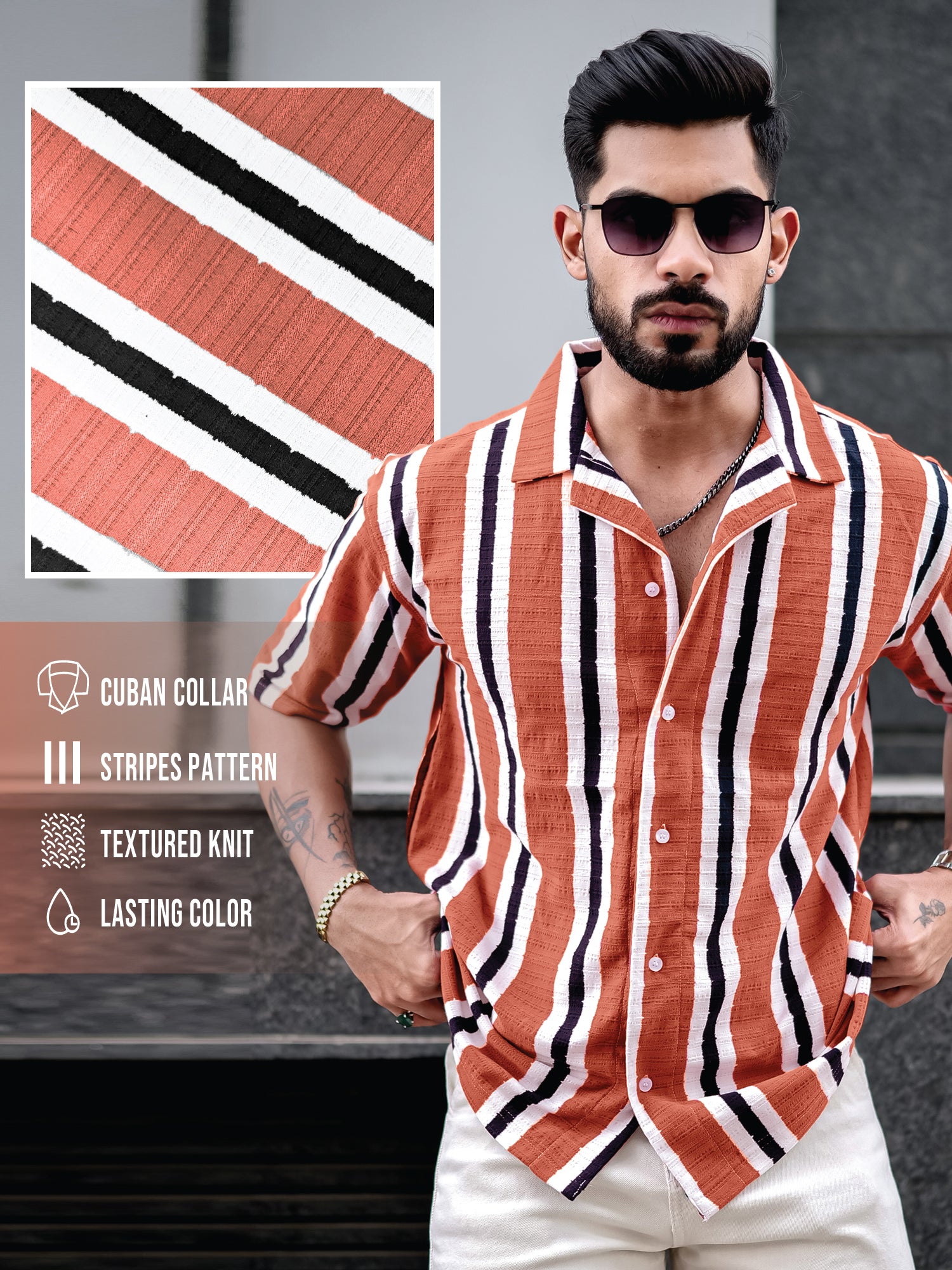Vertical Jacquard Knit Rust Half Sleeve Shirt