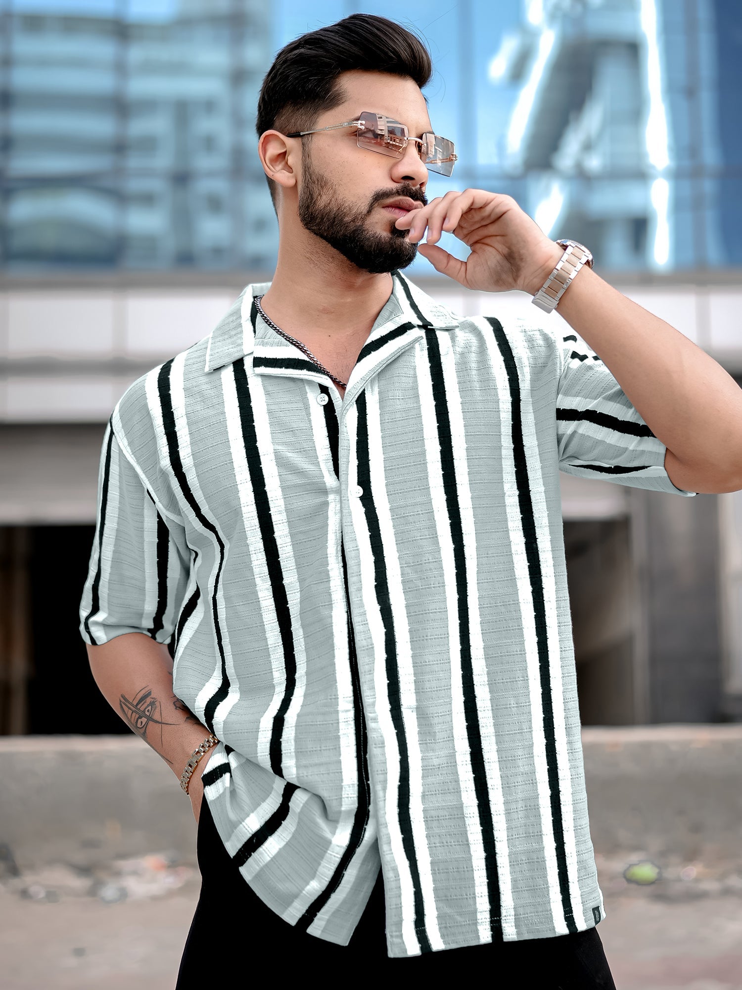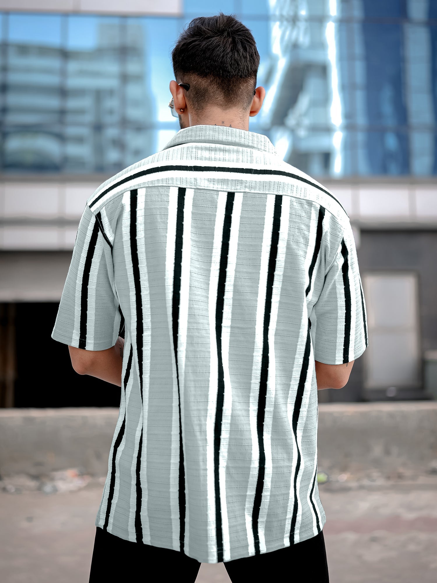 Vertical Jacquard Knit Sliver Grey Half Sleeve Shirt