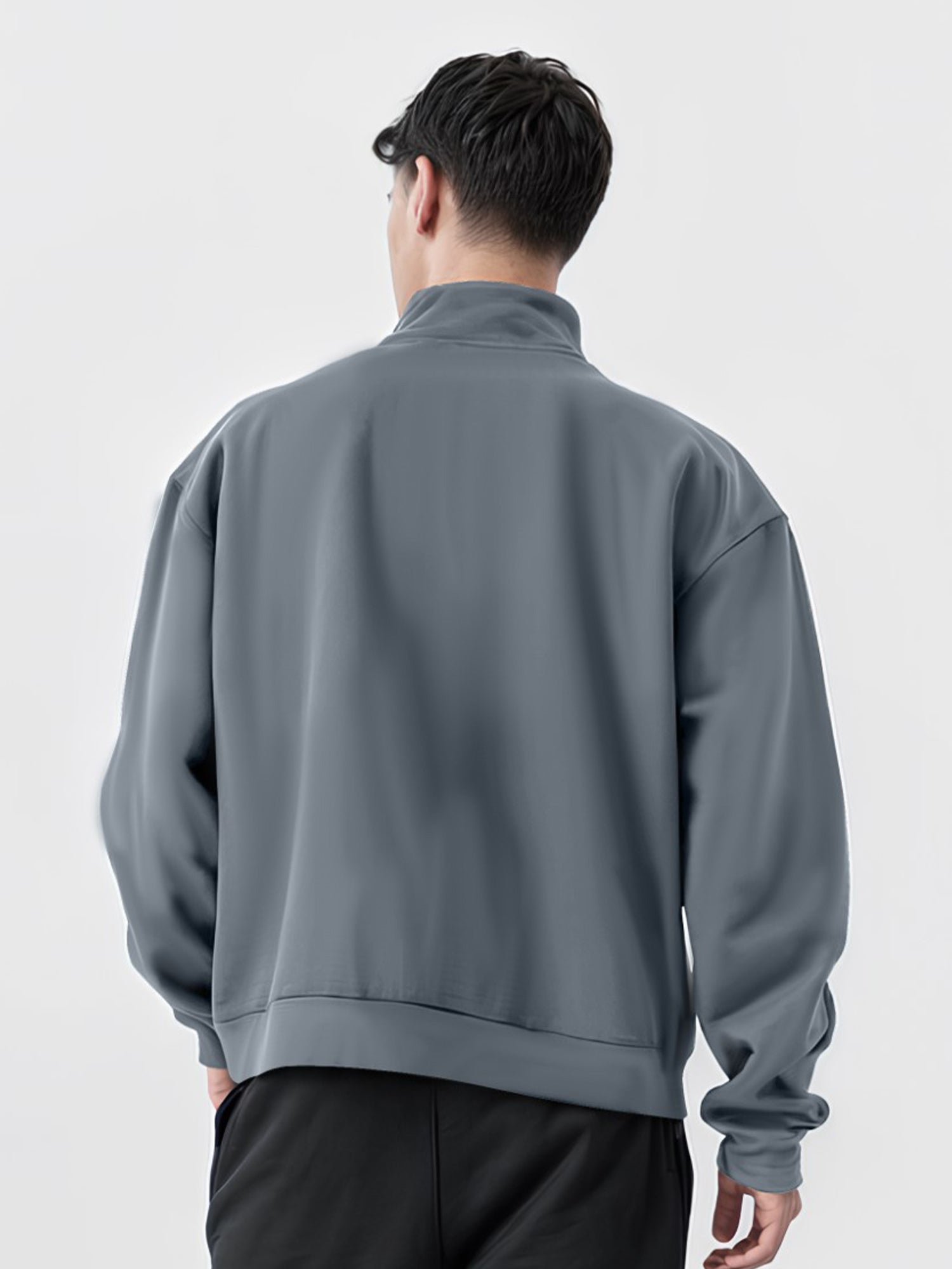 Half Zipper Light Grey Full Sleeve Sweatshirt